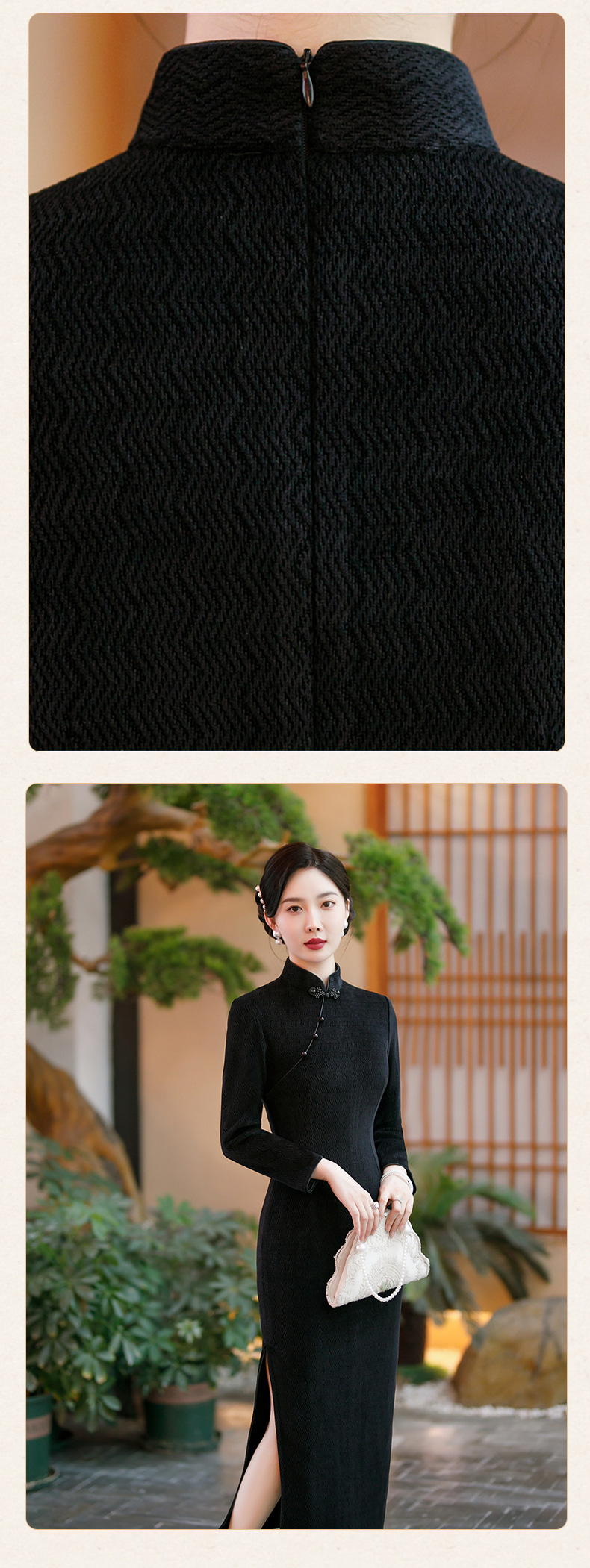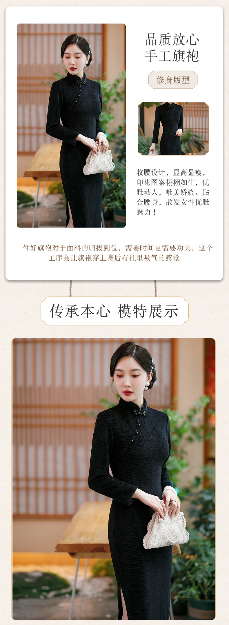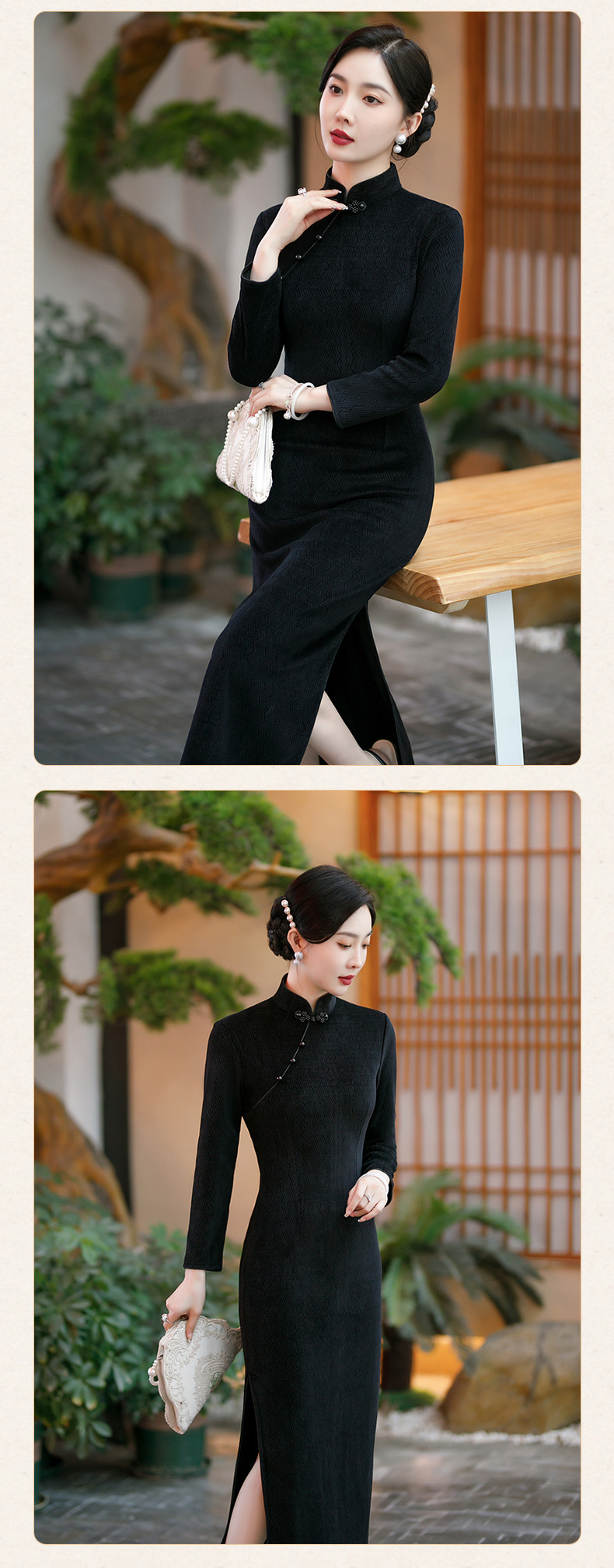 SYG-686长袖旗袍复古民国风改良年轻款少女日常针织连衣裙优雅中长款