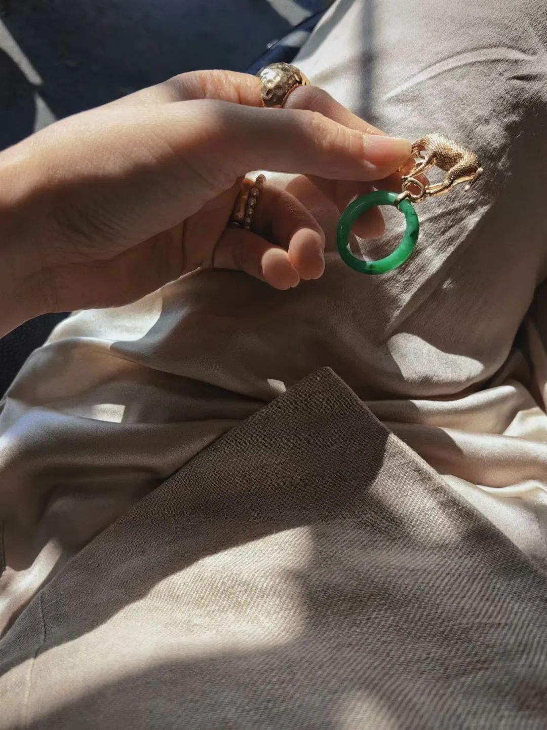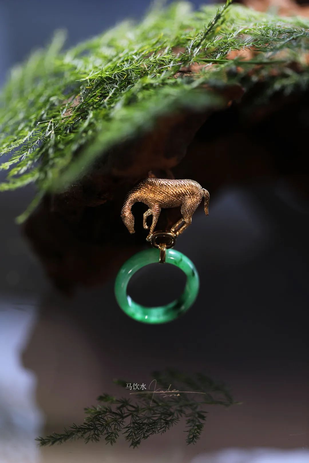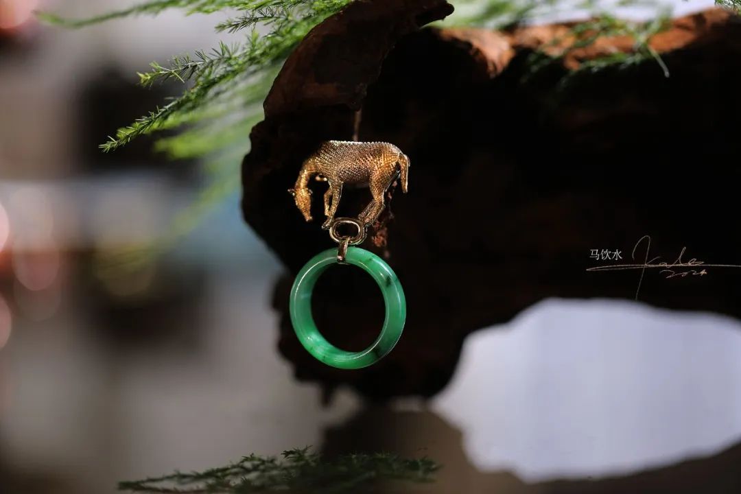 此番,用辣色正阳绿飘花的高品翡翠平安扣,也如一泓碧潭水草氤氲,