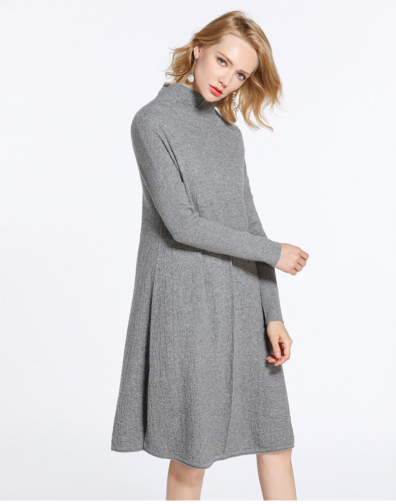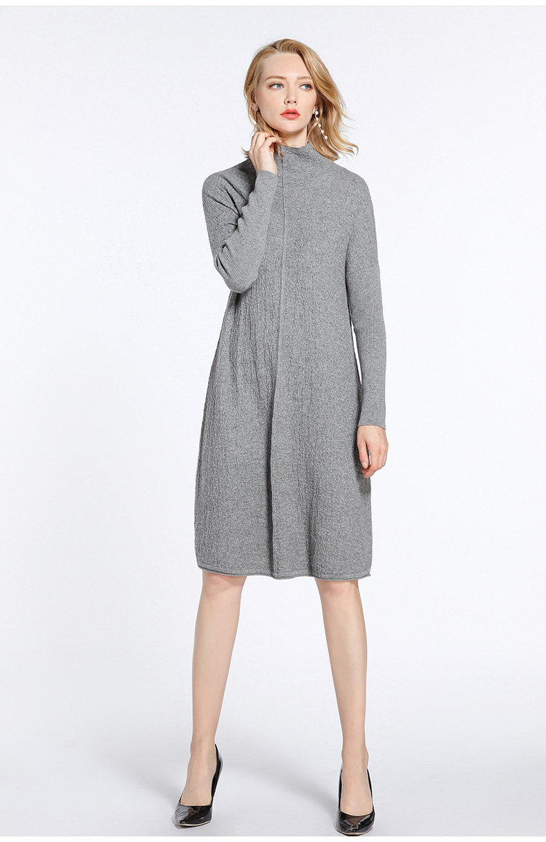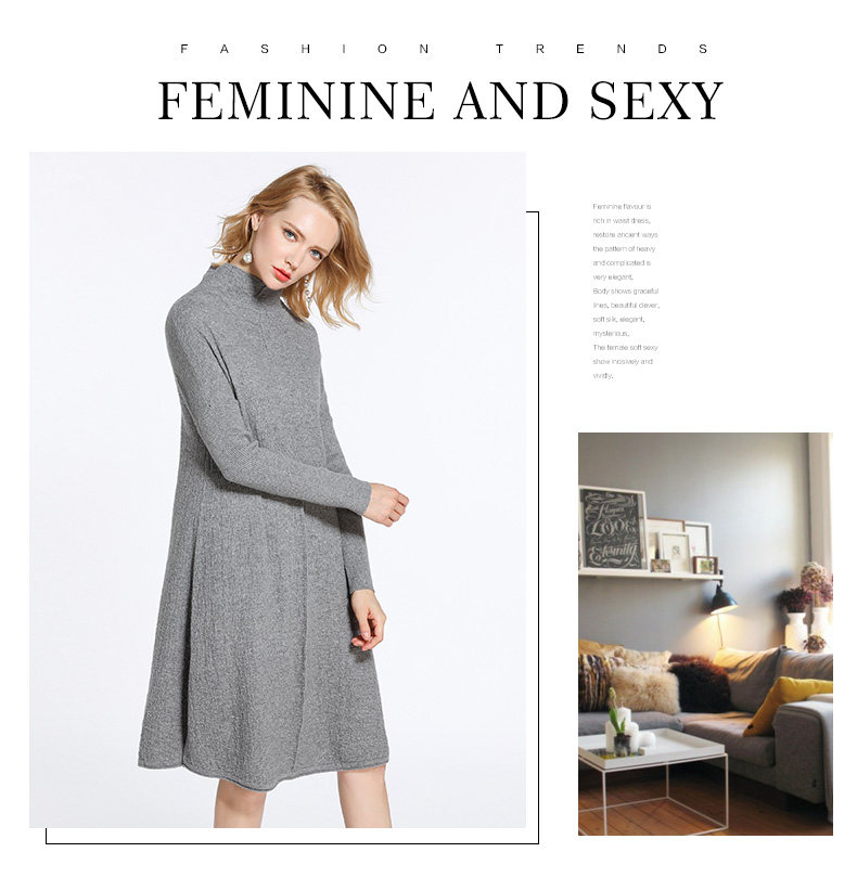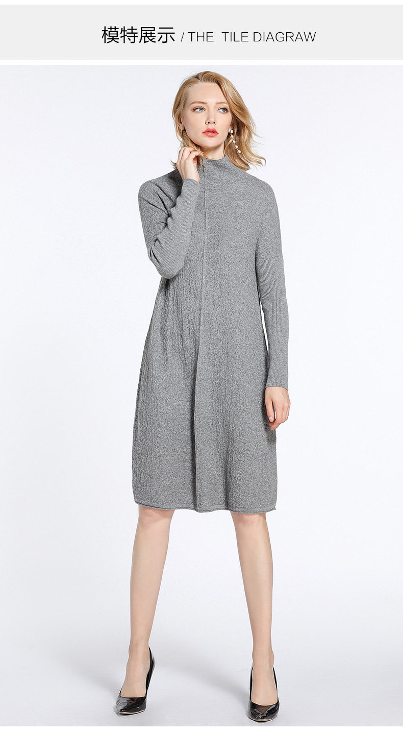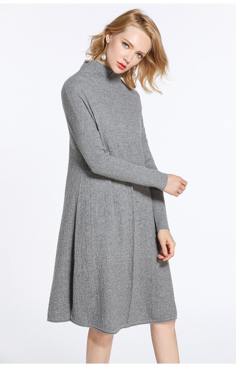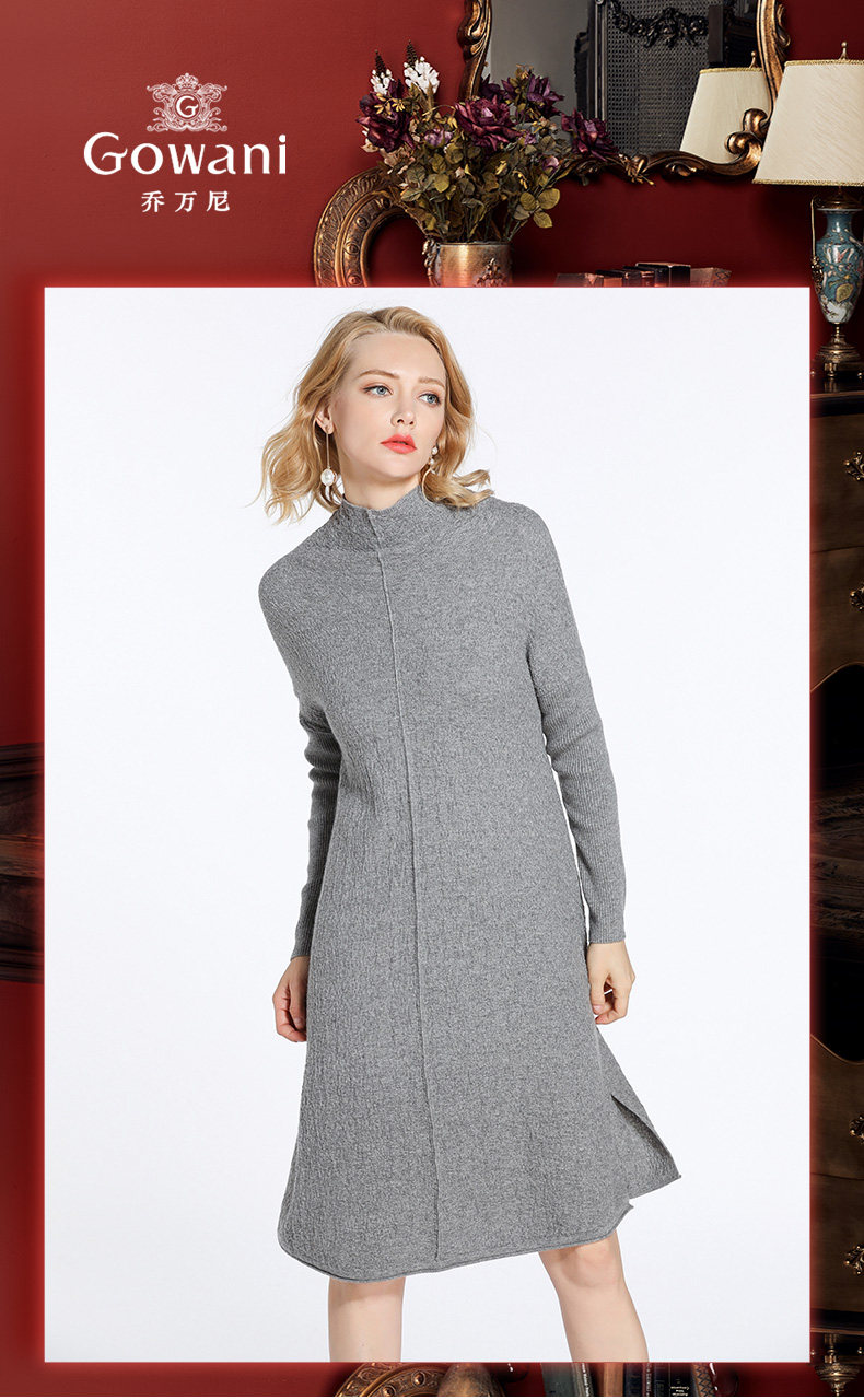 乔万尼冬季宽松大码欧货高领针织羊毛打底连衣裙女中长款EB4M003
