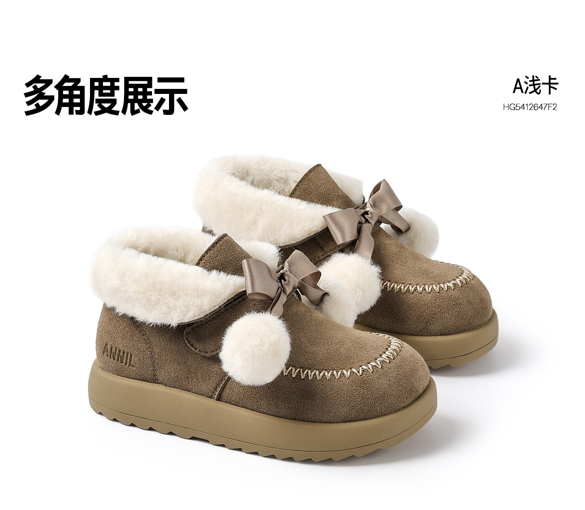ANNIL/安奈儿童鞋女童可爱公主冬季棉鞋中大童6-16岁童鞋毛茸茸棉鞋加绒加厚休闲鞋HG5412647