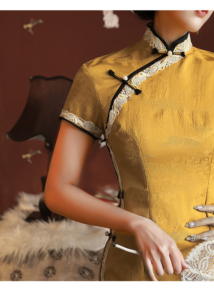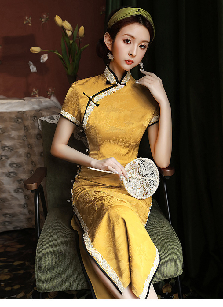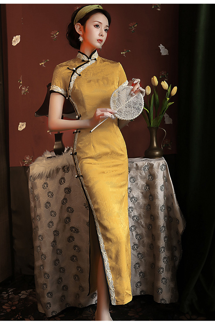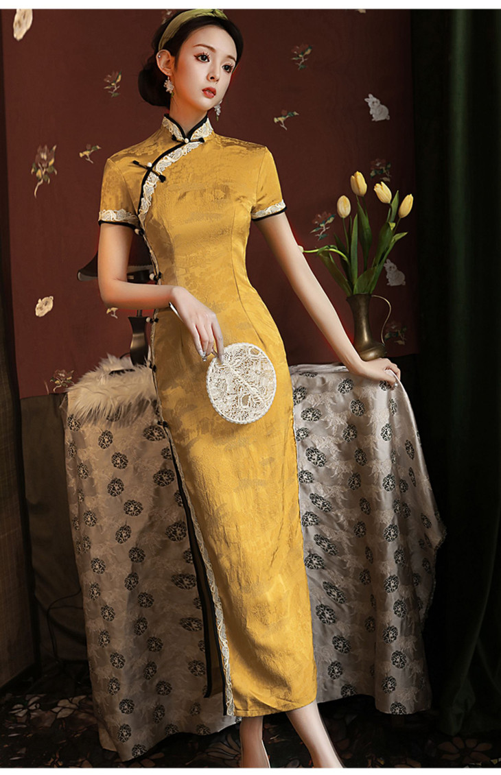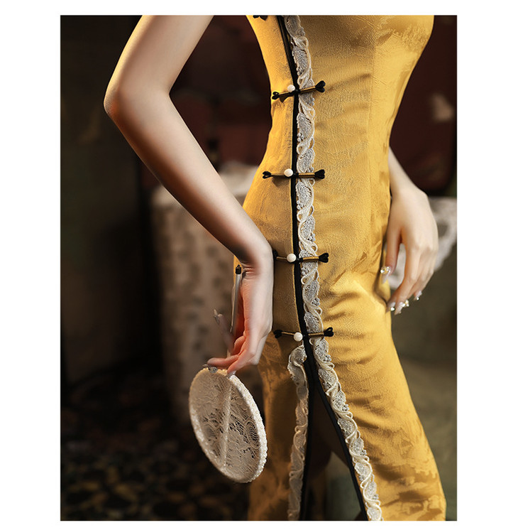 黄色改良复古中国风高级感民国老上海旗袍连衣裙267