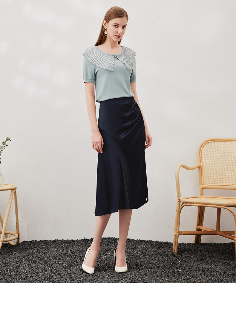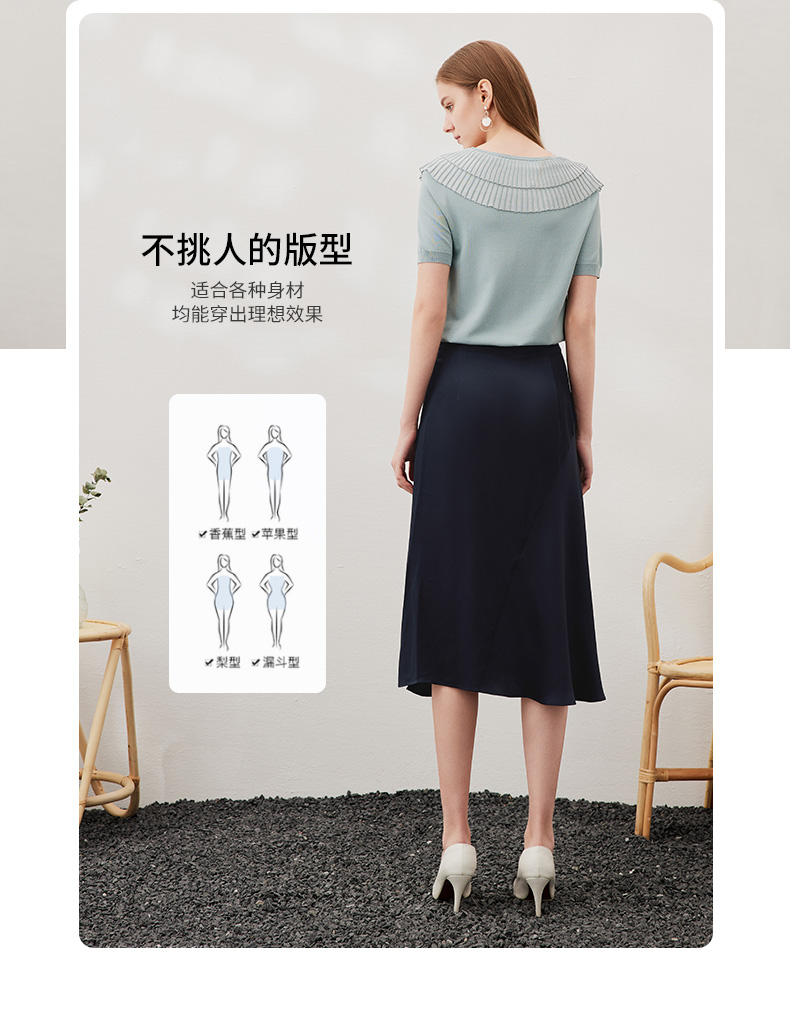 EITIE爱特爱春季新款时尚百搭通勤显瘦垂感伞裙A字半身裙女裙A2206905