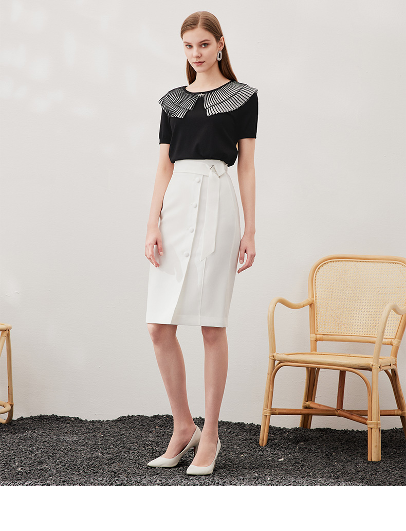 EITIE爱特爱女装简约大方时尚黑白拼色显瘦修身连衣裙D1907307