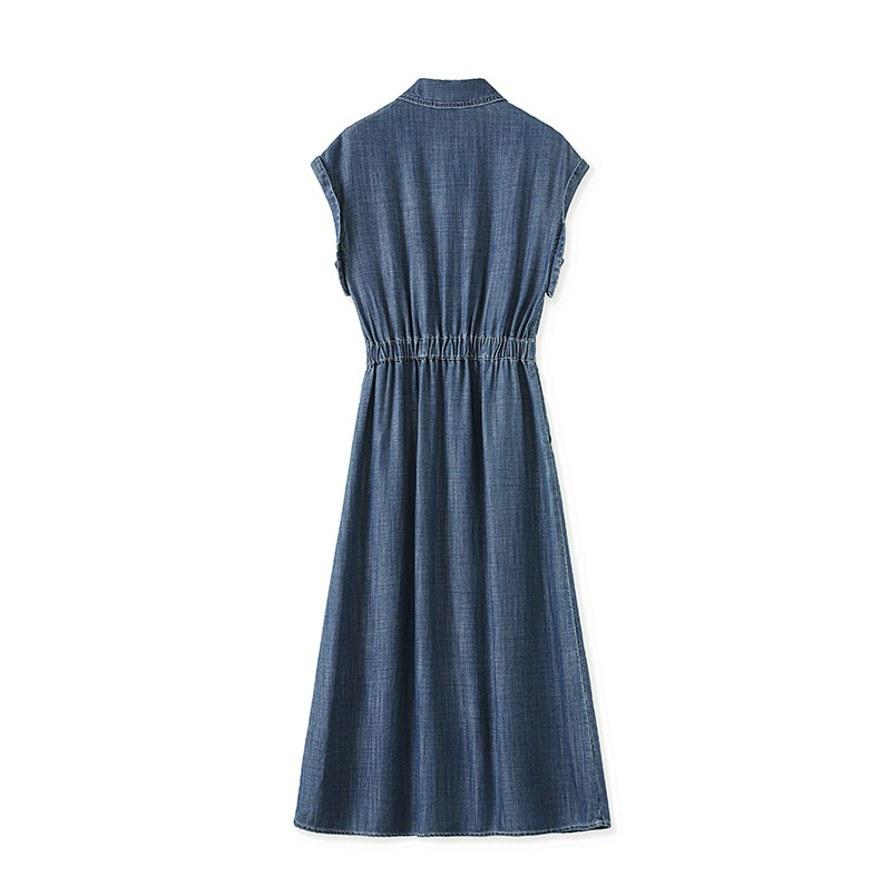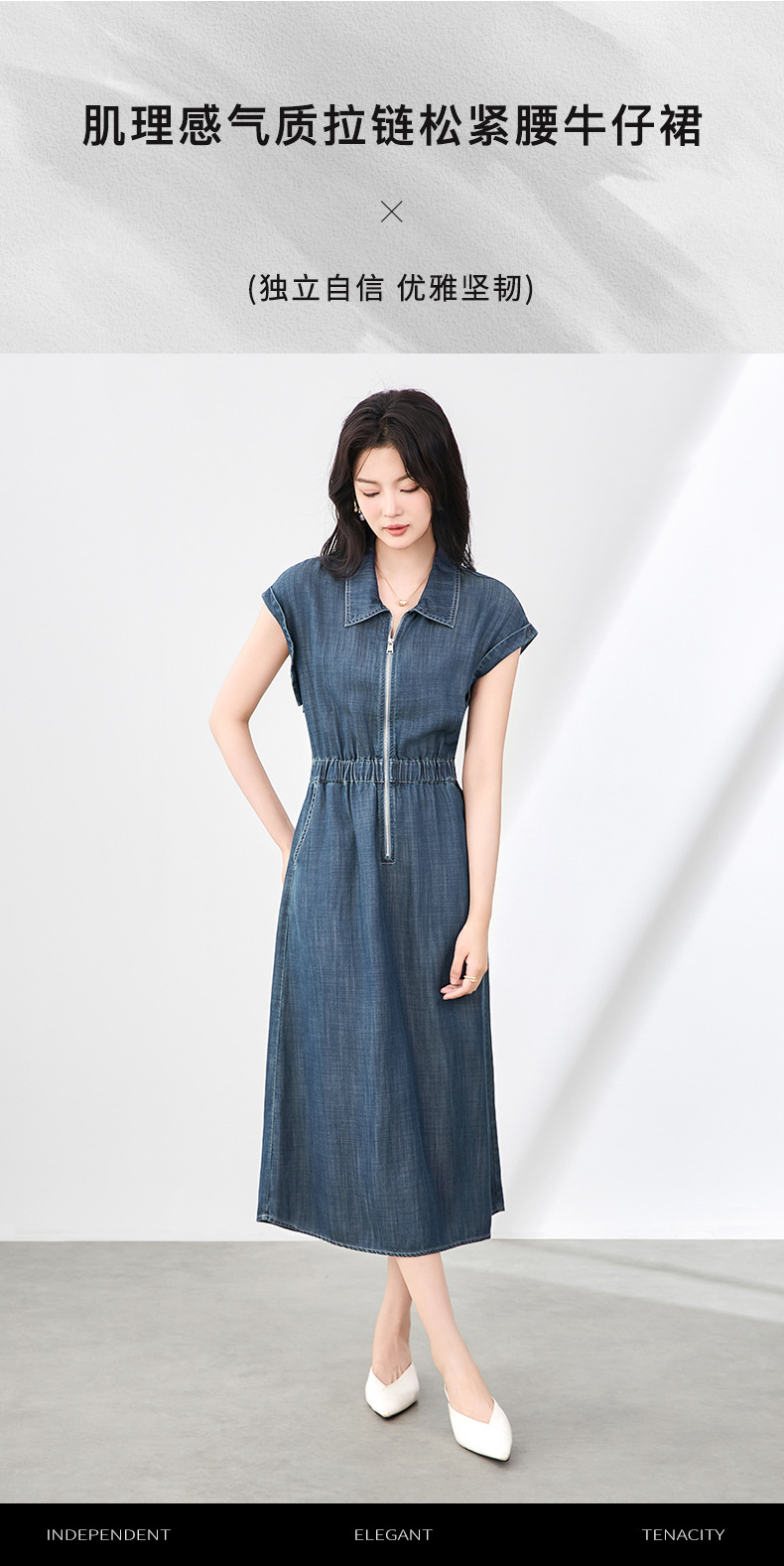 TZW-南油高品质莱赛尔牛仔连衣裙通勤休闲收腰显瘦翻领长裙女