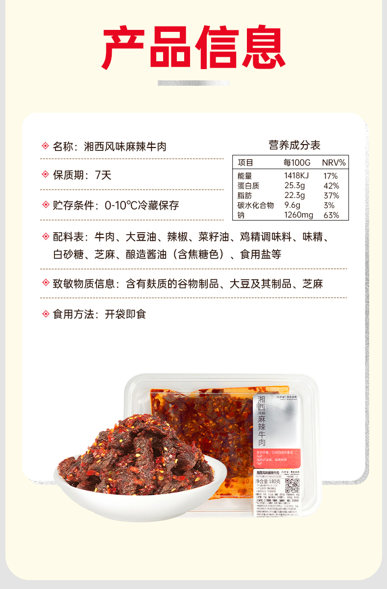 【鲜食顺丰配送】黑色经典湘西风味麻辣牛肉180g/盒 保质期7天,到手约4-5天,到货当天取件食用,介意慎拍