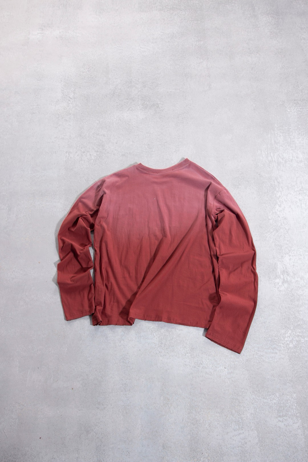 让衣服有自然微透的复古做旧风格,领口、下摆与袖口少许磨破更加契合整体调性,