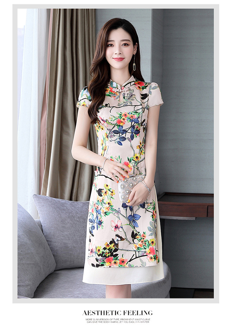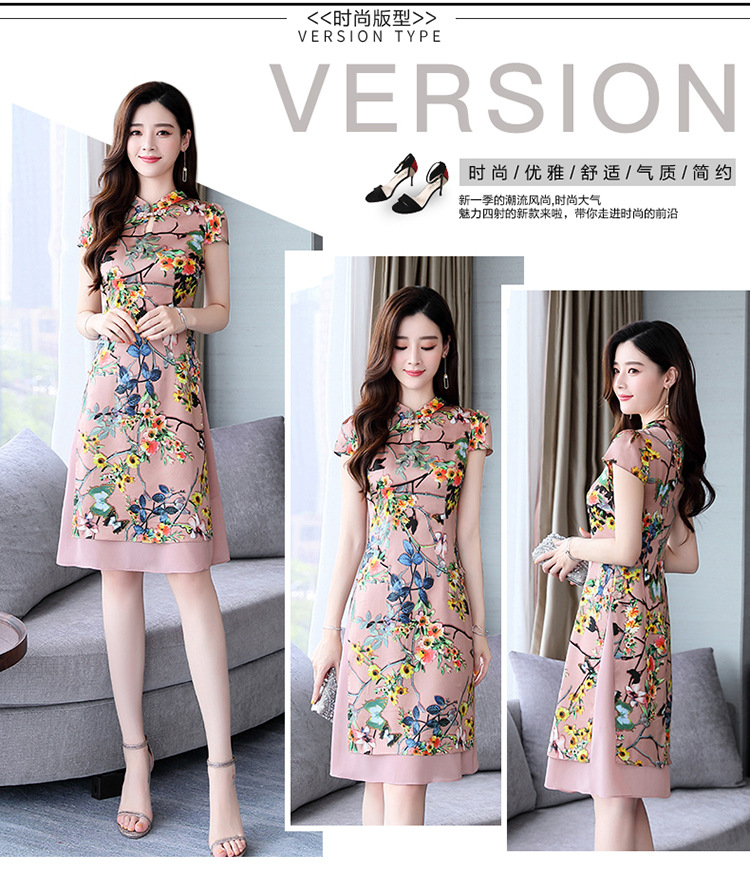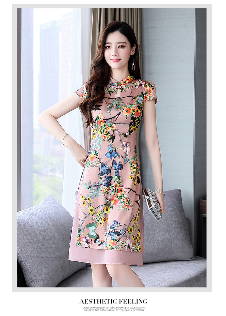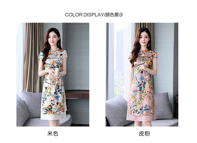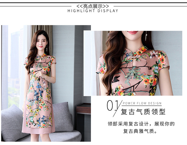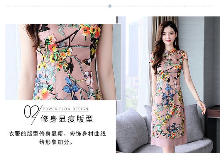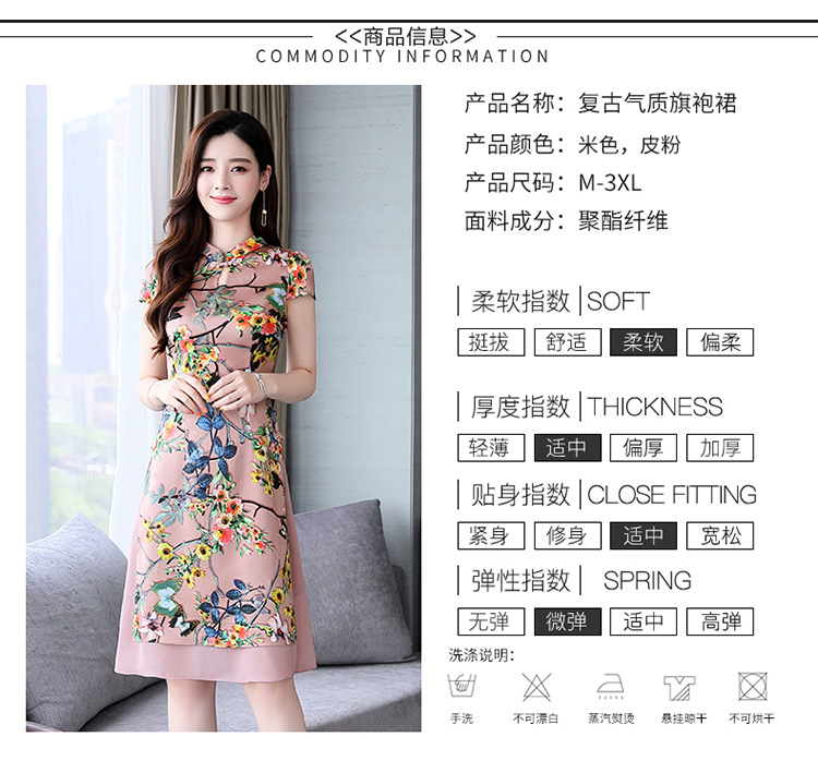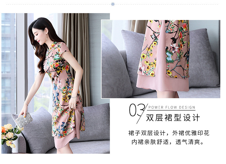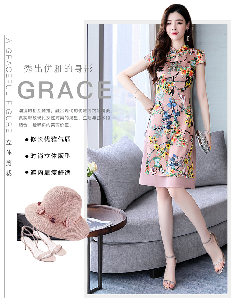 WZNH-MLJL9989夏季时尚潮流舒适中腰短袖优雅气质连衣裙