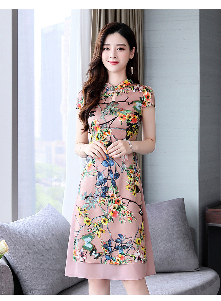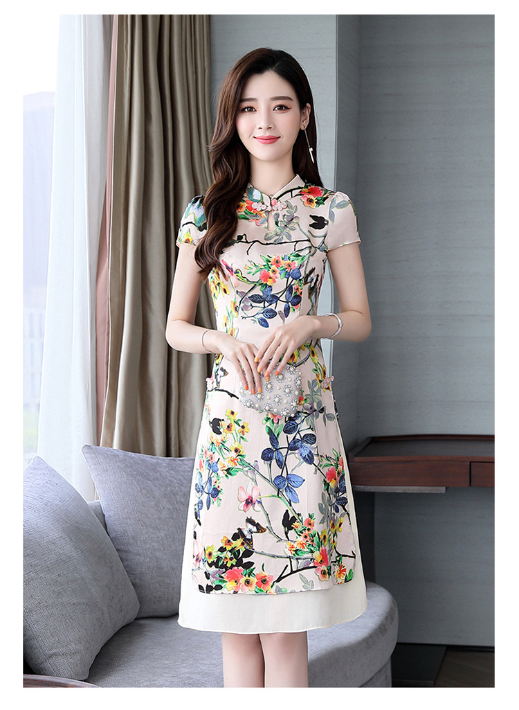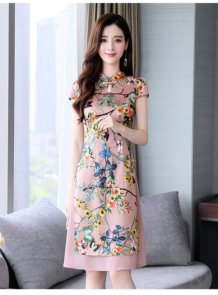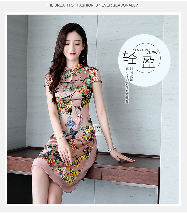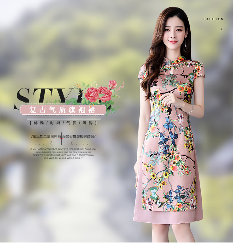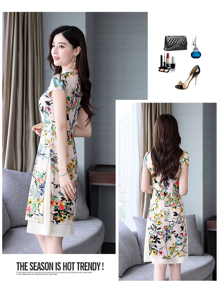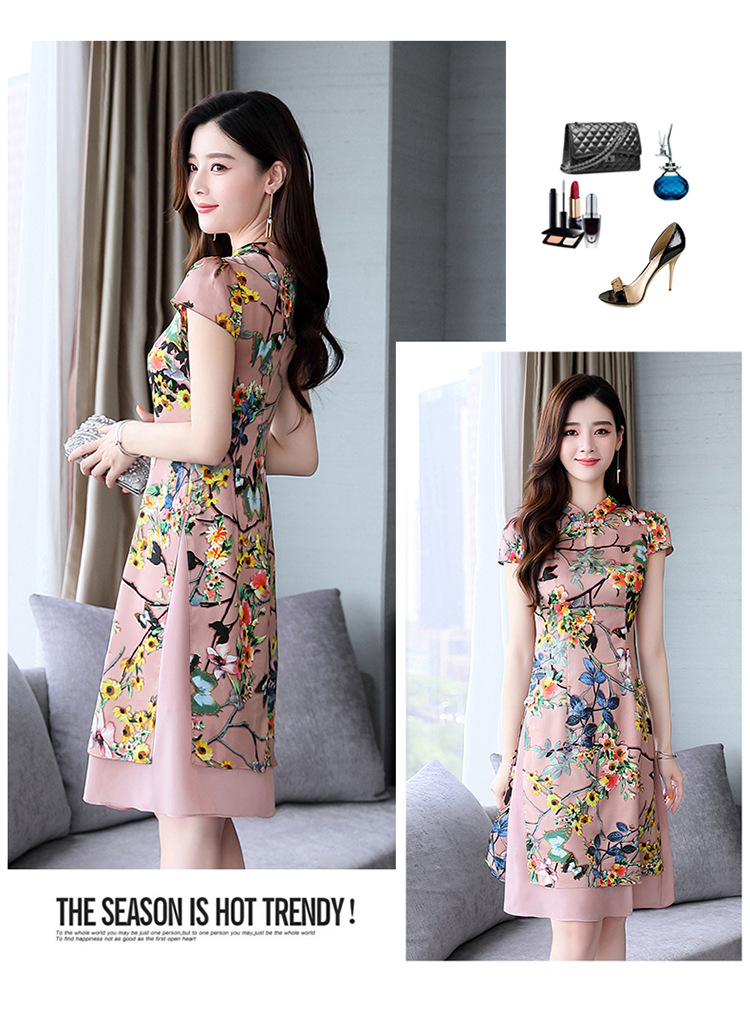 WZNH-MLJL9989夏季时尚潮流舒适中腰短袖优雅气质连衣裙