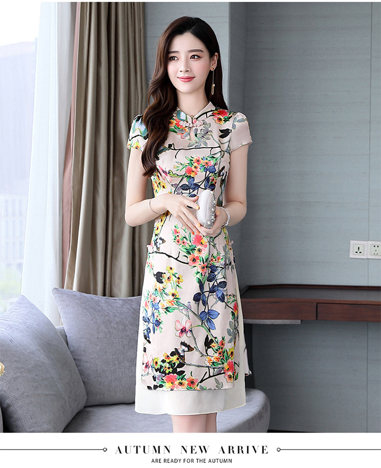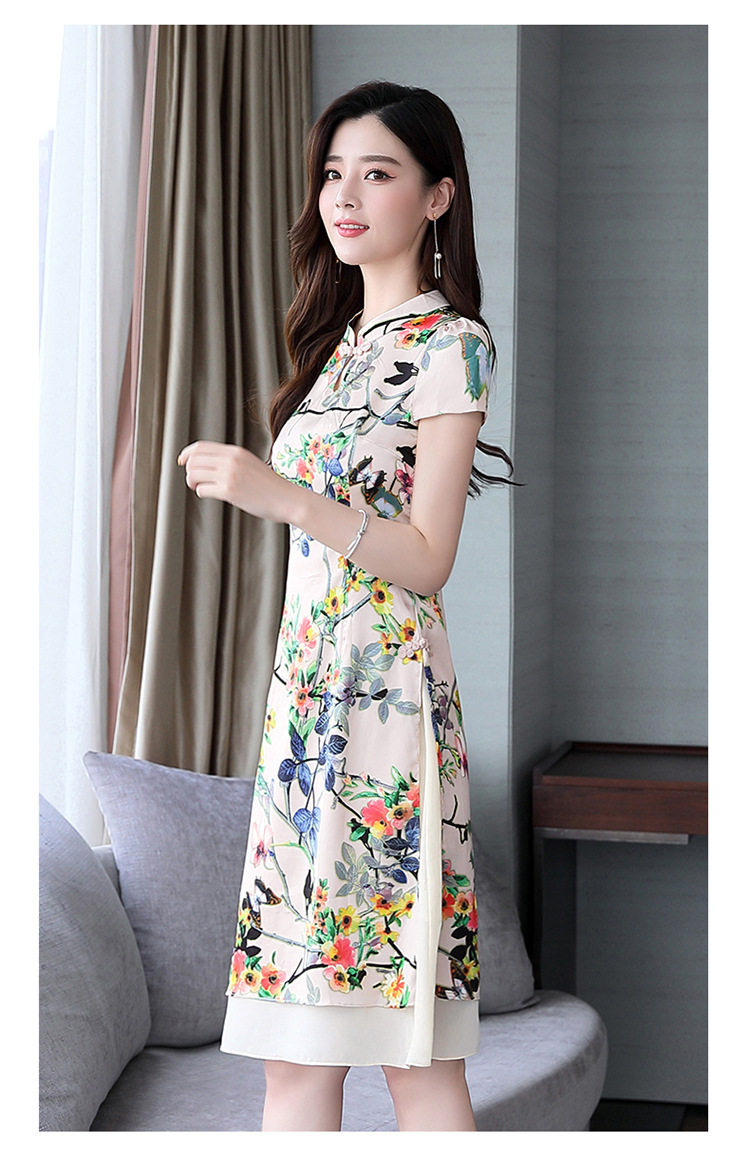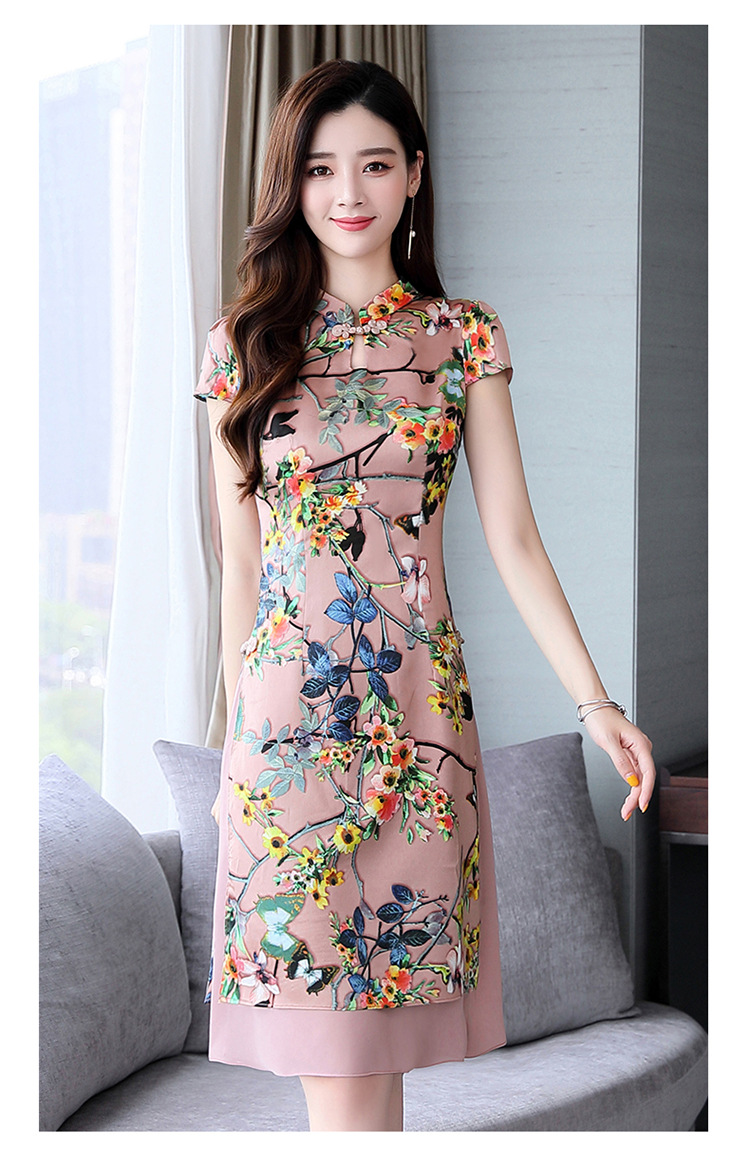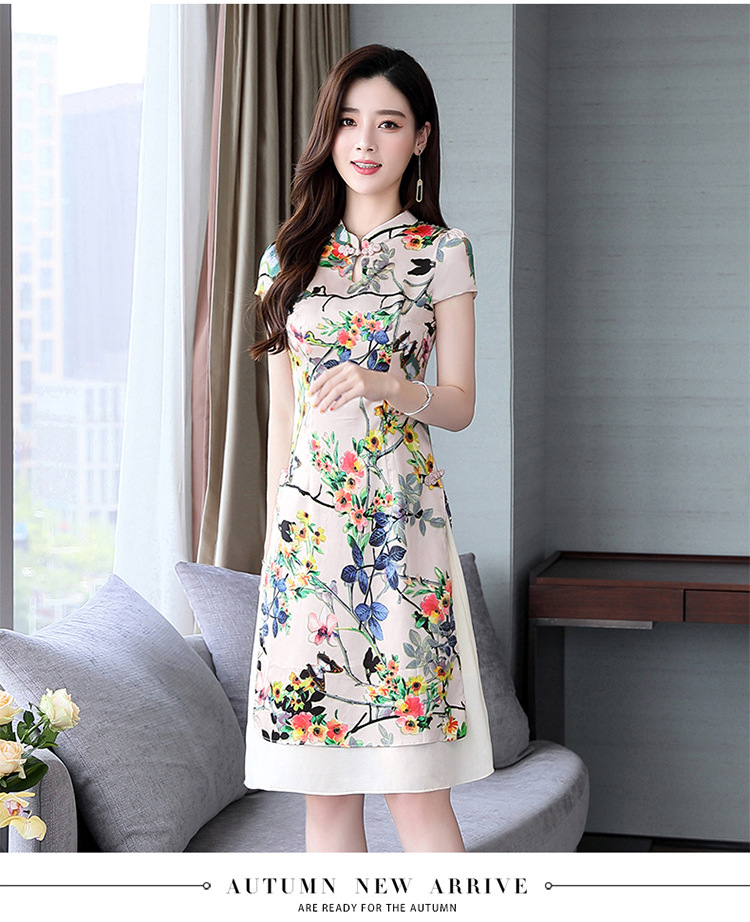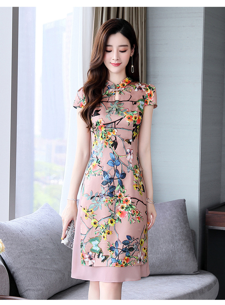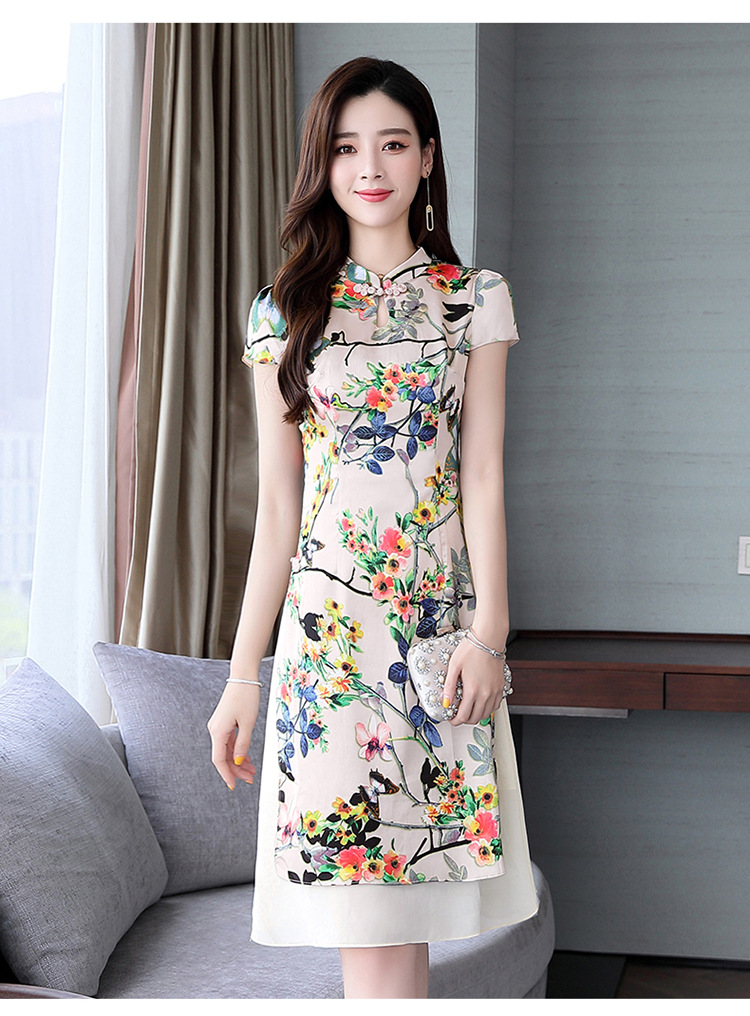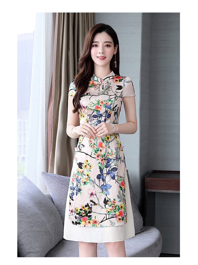 WZNH-MLJL9989夏季时尚潮流舒适中腰短袖优雅气质连衣裙