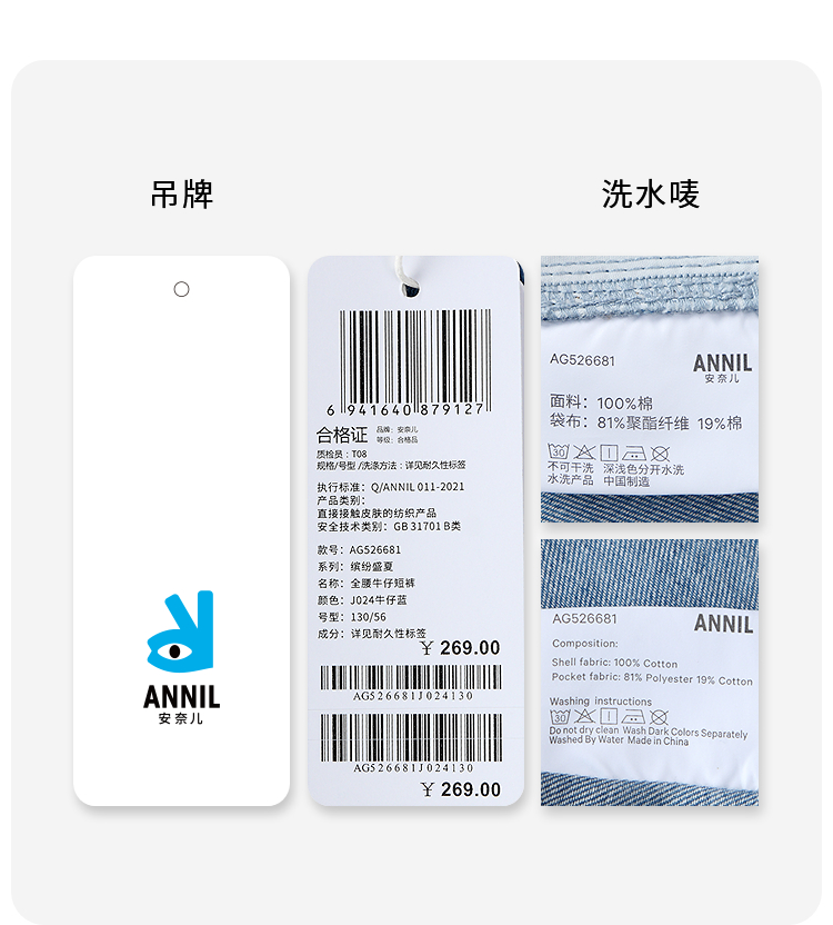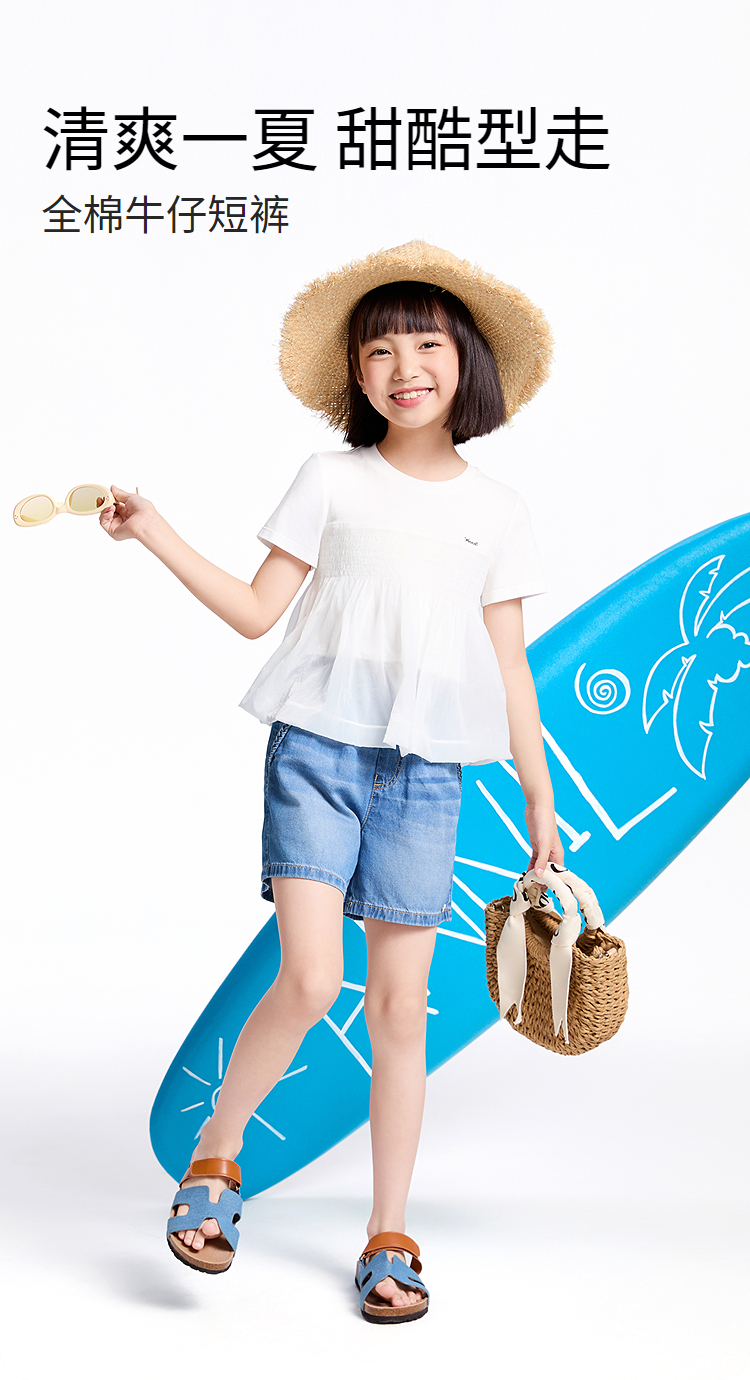 【实体店同款】女童全腰牛仔短裤夏季新款安奈儿童装AG526681