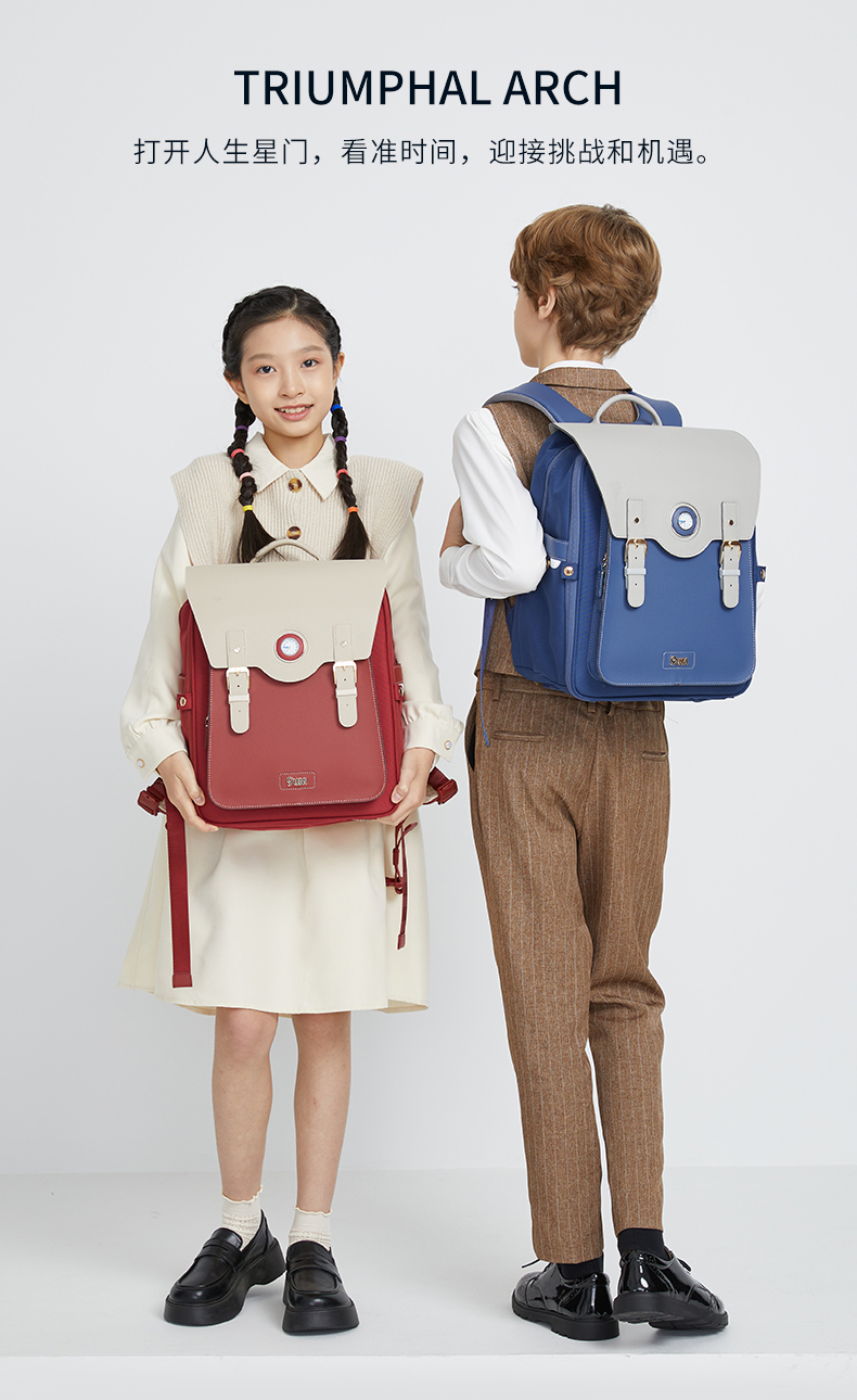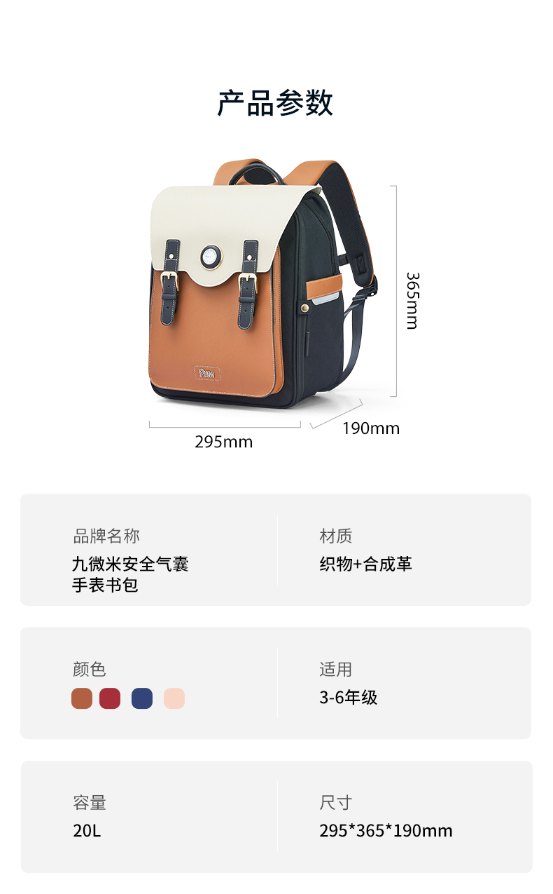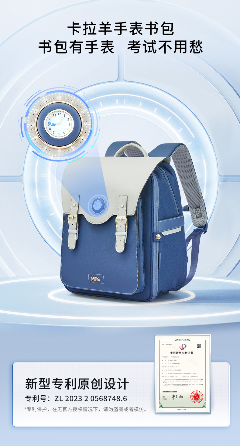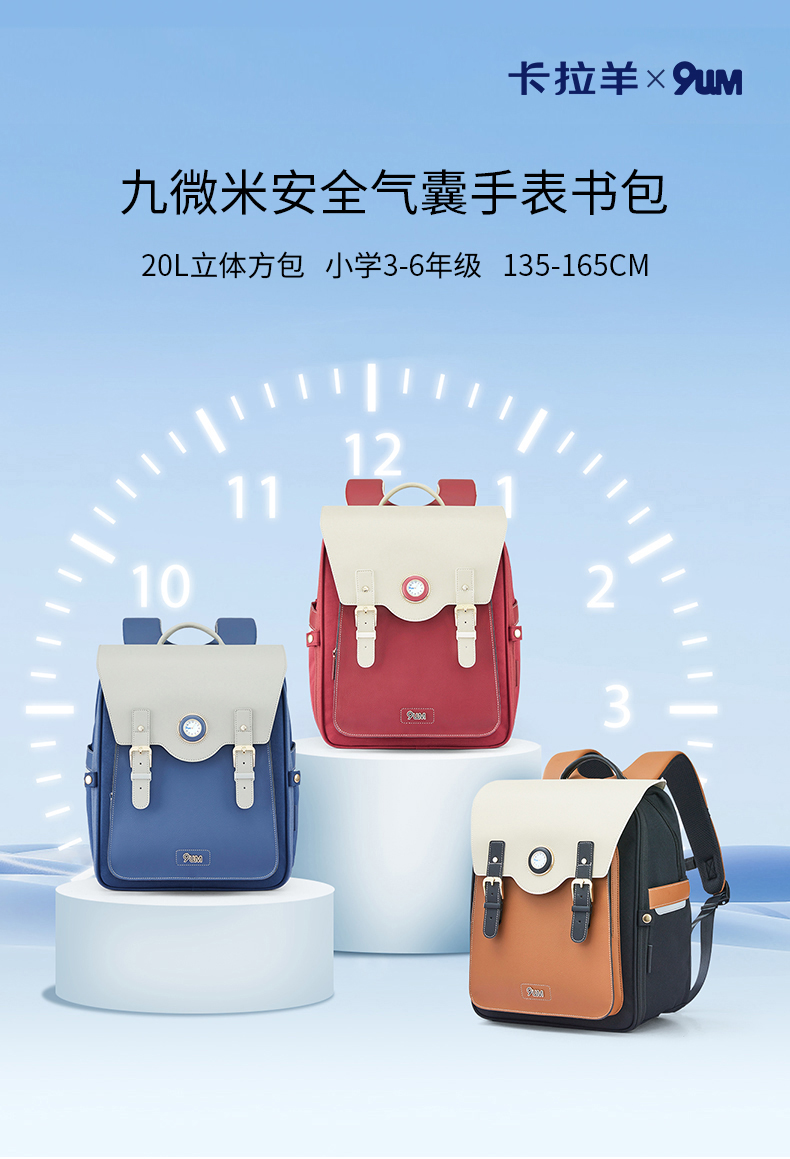 卡拉羊X九微米20L小学生3-6年级防下坠减负气囊缓震轻奢立体书包 凯旋门 U2607-1