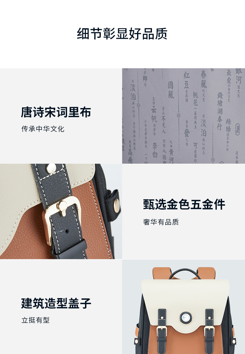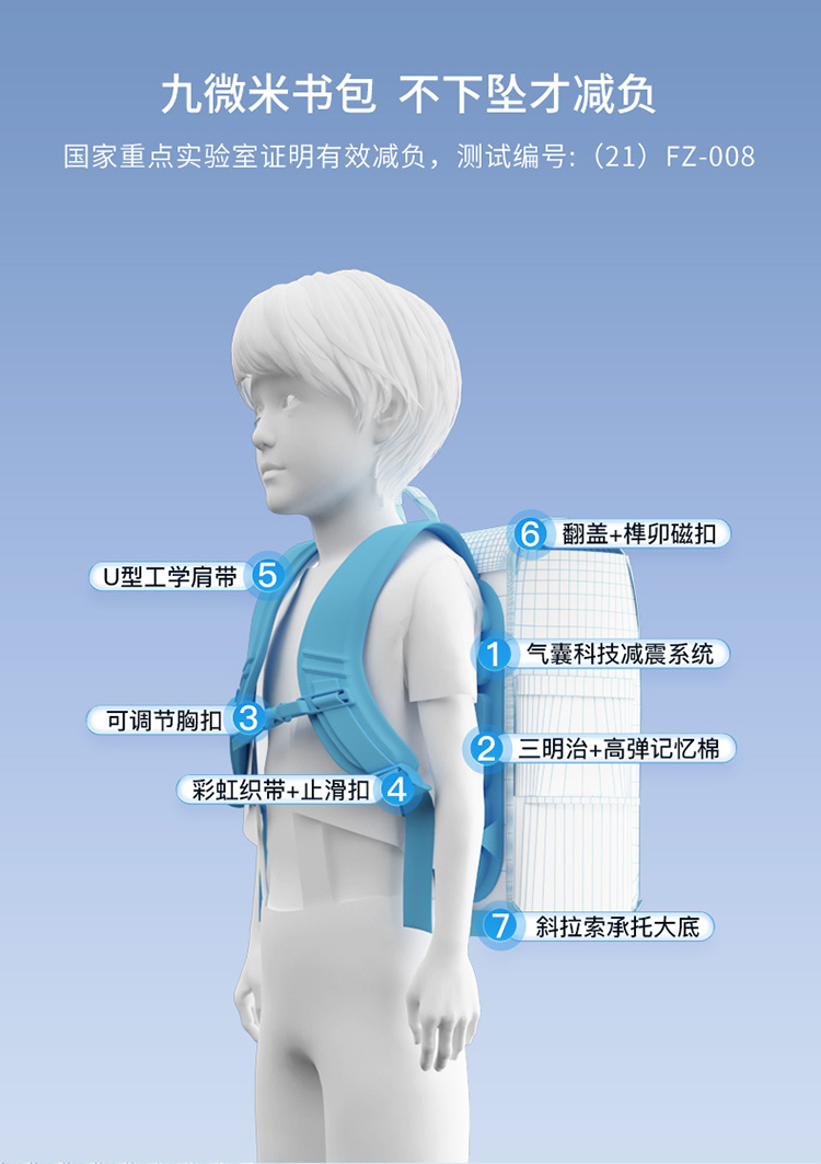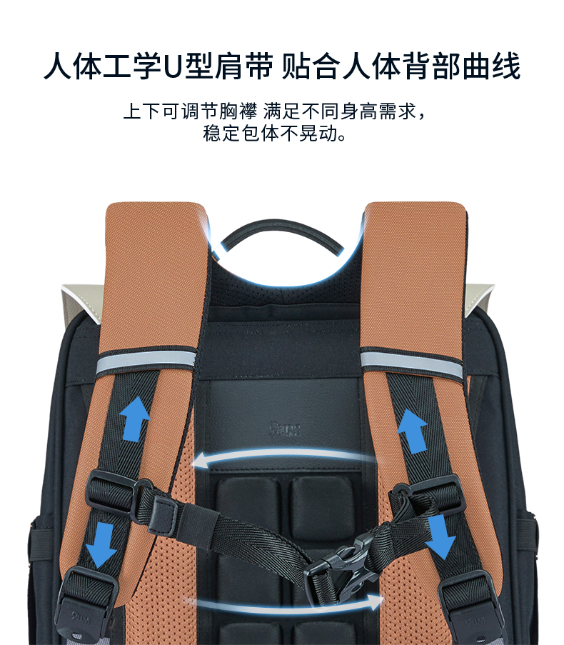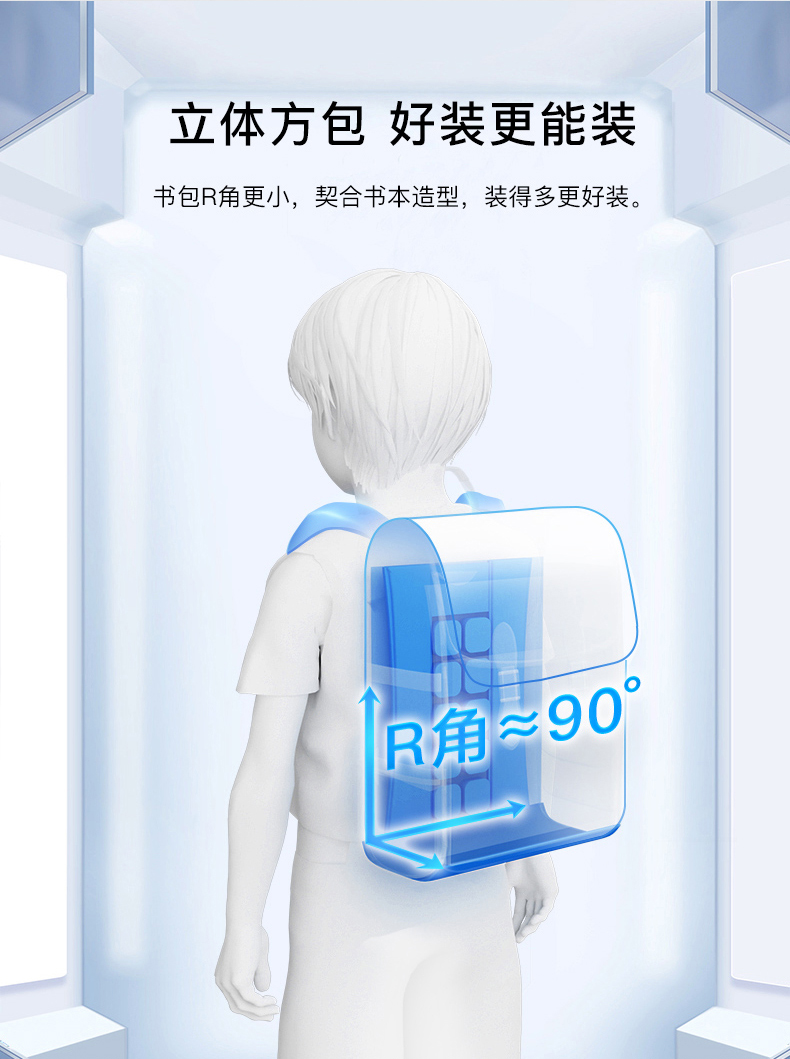 卡拉羊X九微米20L小学生3-6年级防下坠减负气囊缓震轻奢立体书包 凯旋门 U2607-1