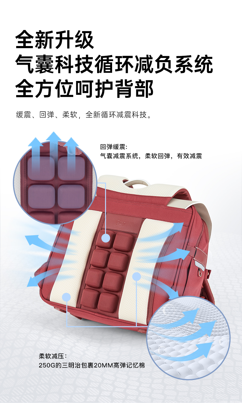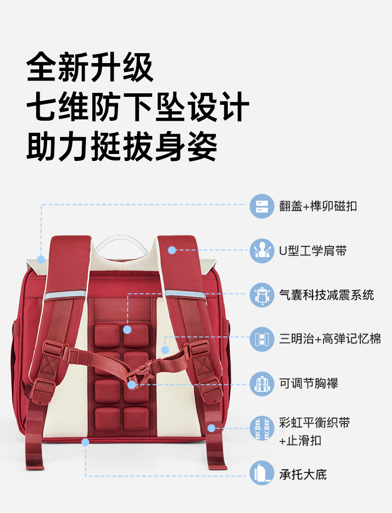 九微米X卡拉羊小学生1-6年级防下坠减负气囊缓震轻奢立体书包 凯旋门U2174+ U2607-1