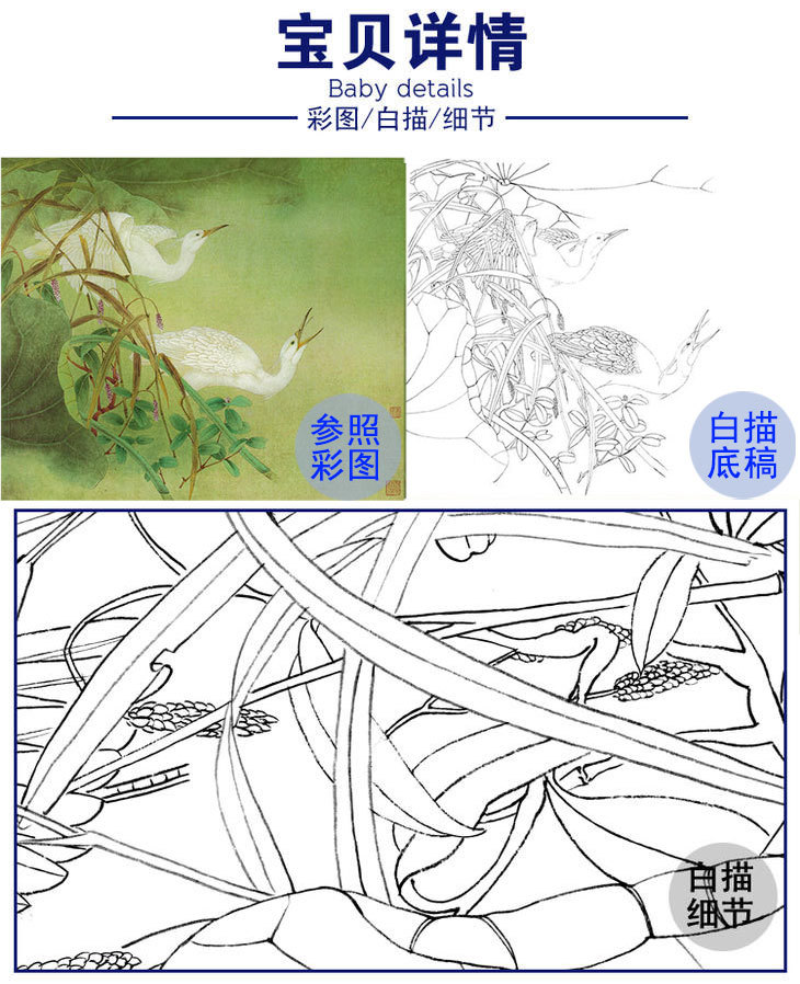 工笔花鸟白描底稿-曹小民-白鹭-斗方小品册页-A187