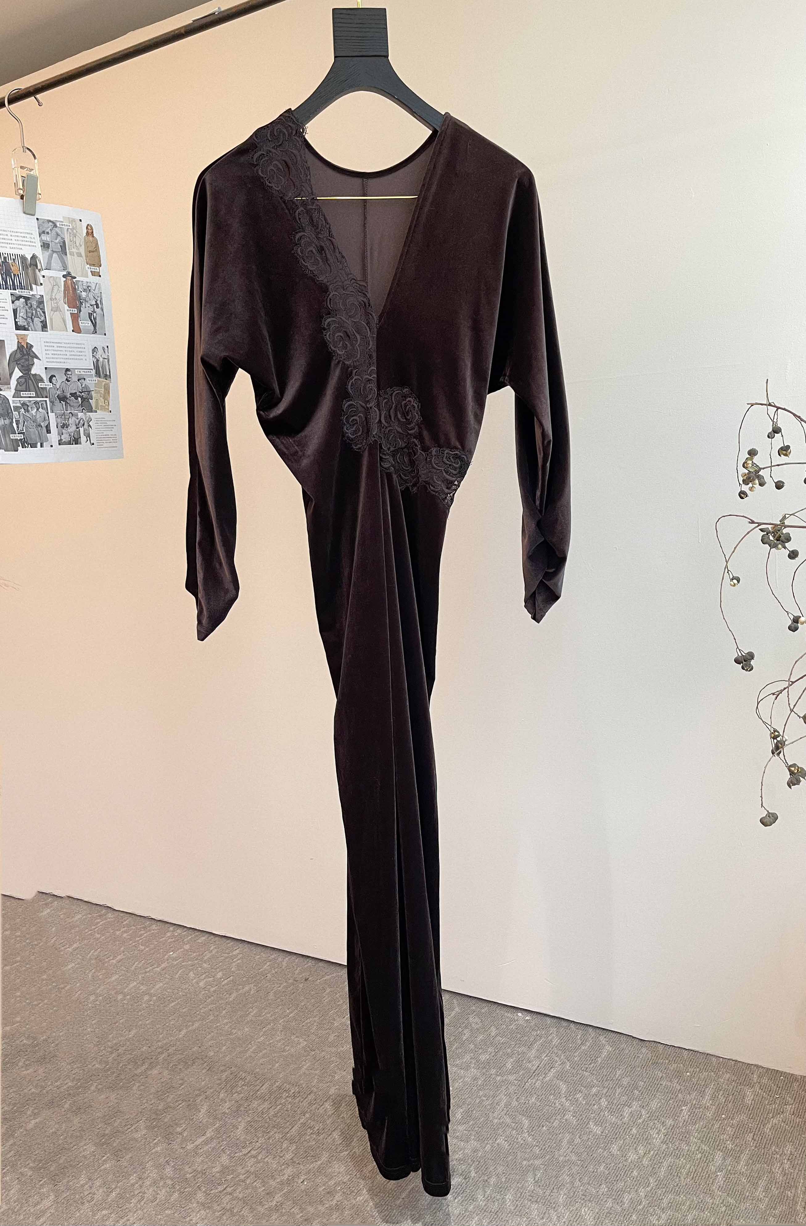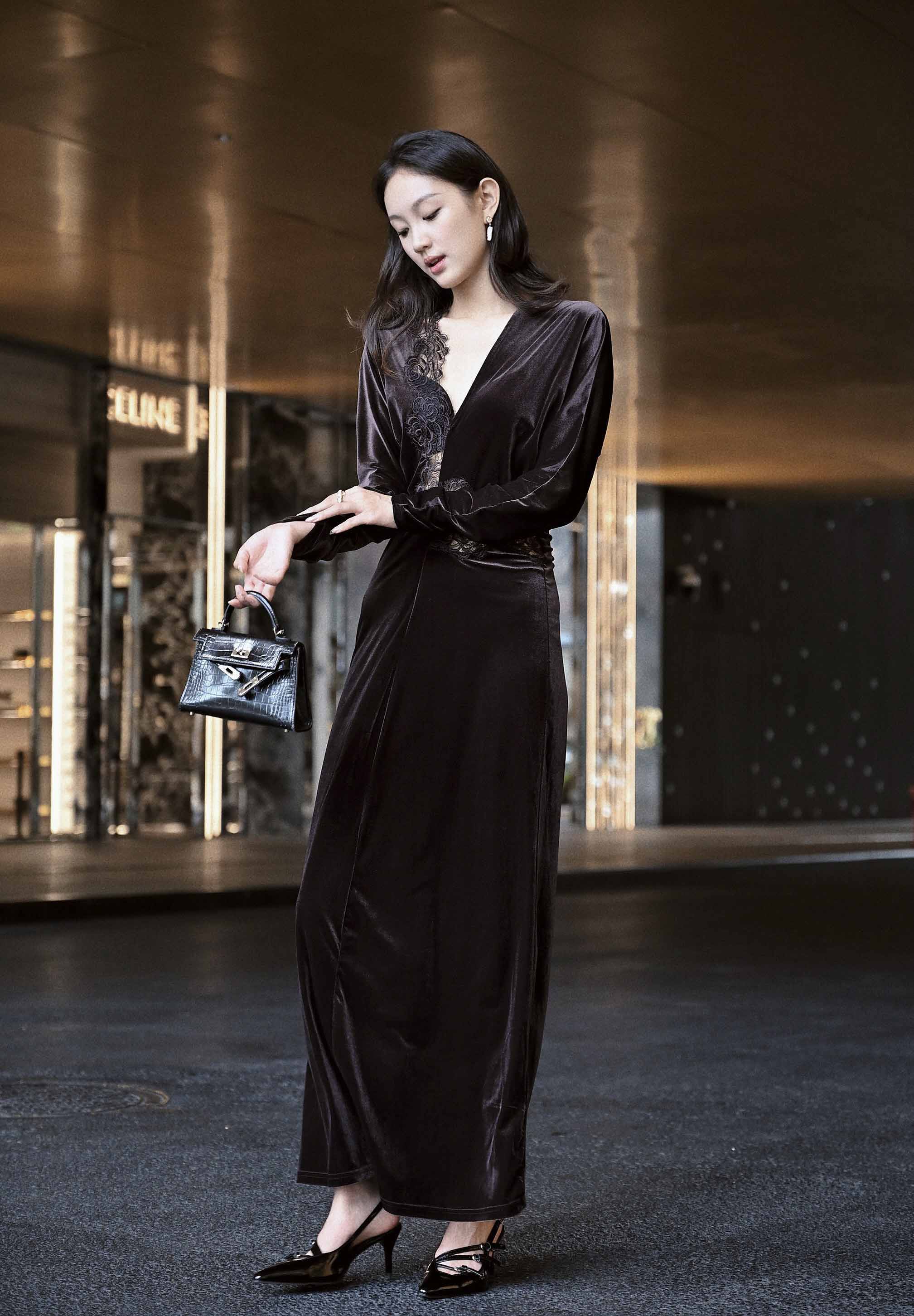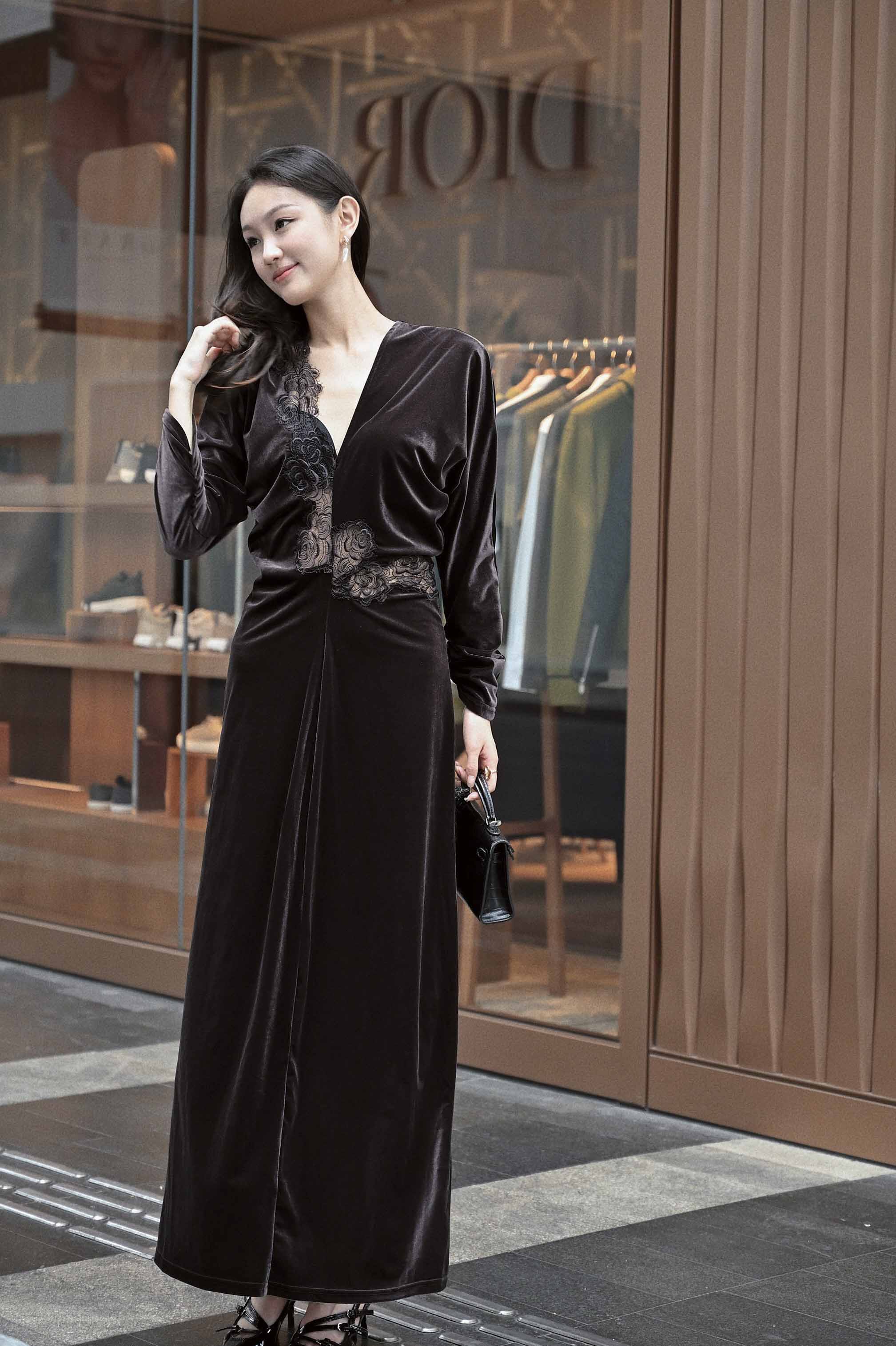 玫瑰花镂空丝绒连衣裙,法式复古浪漫风情