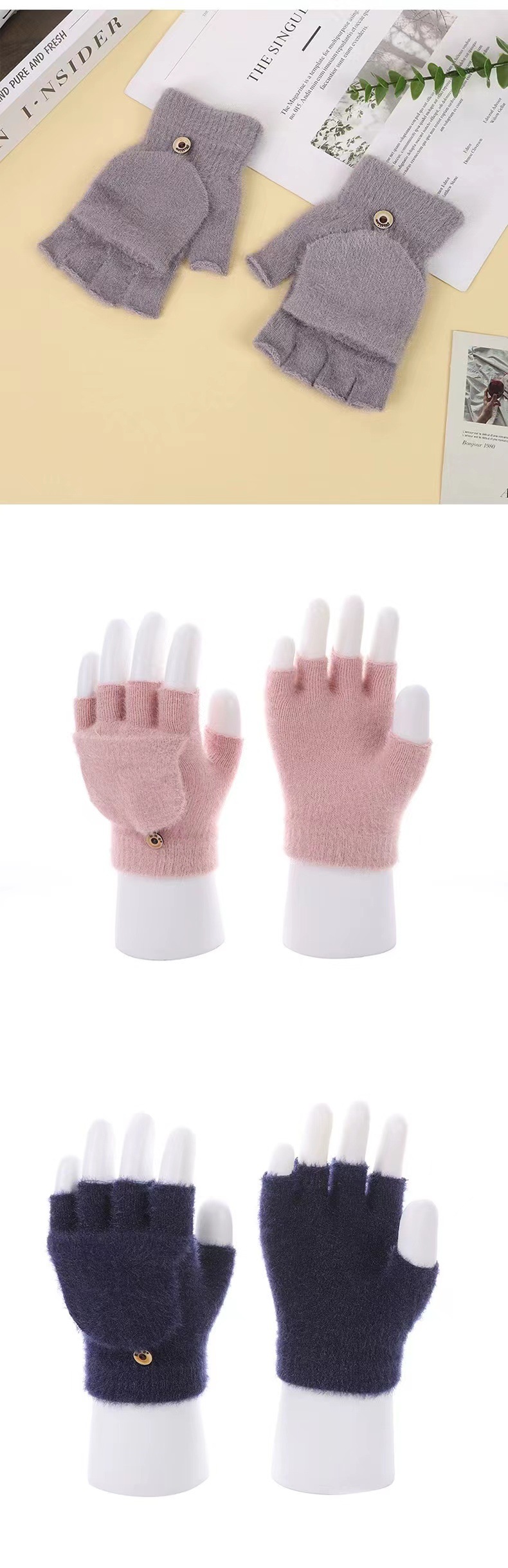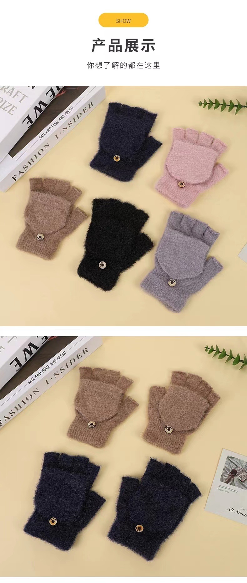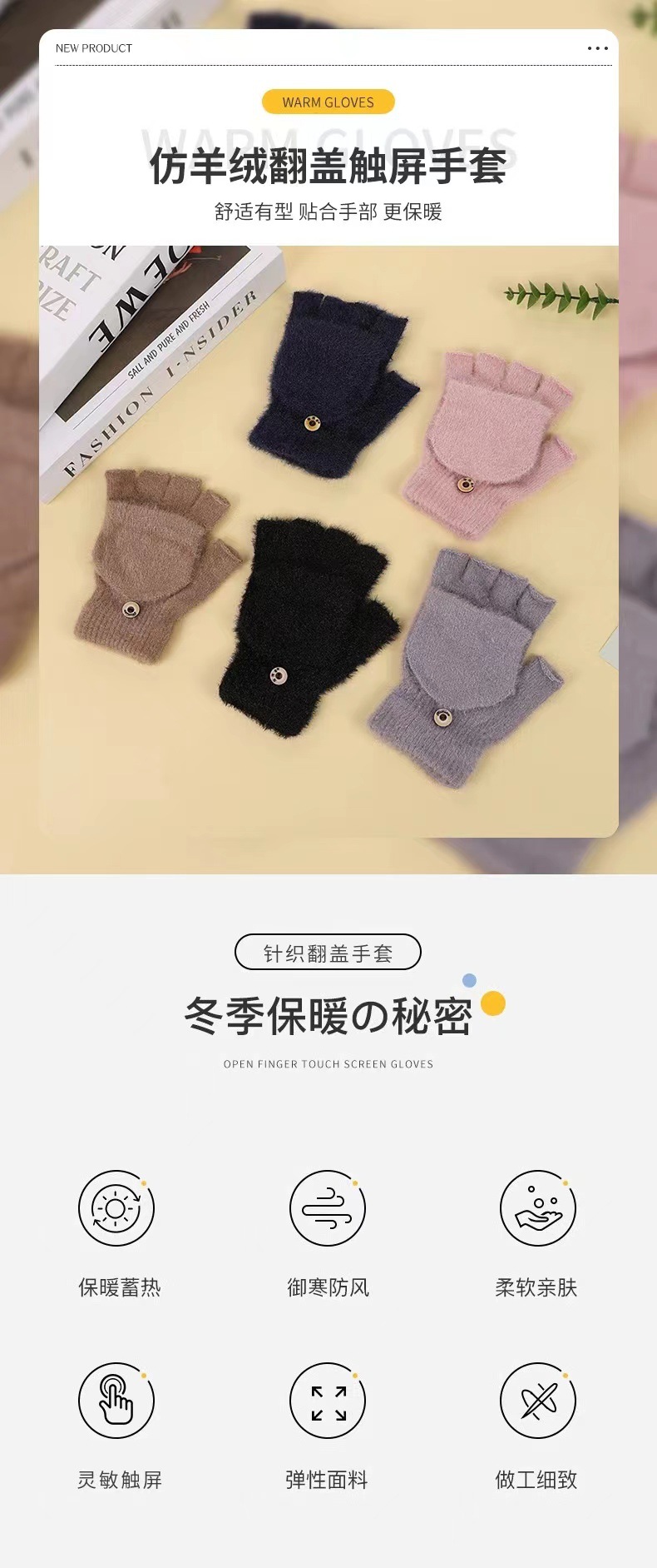 【仿羊绒面料!又萌又保暖】2025可爱新款秋冬针织防寒保暖漏指百搭毛线手套休闲时尚半指翻盖手套。ha