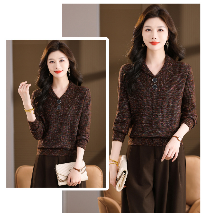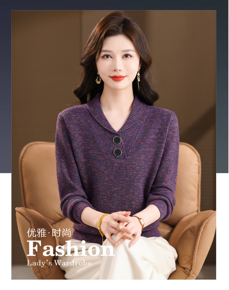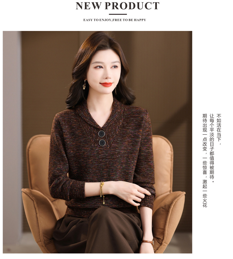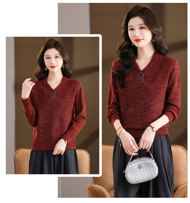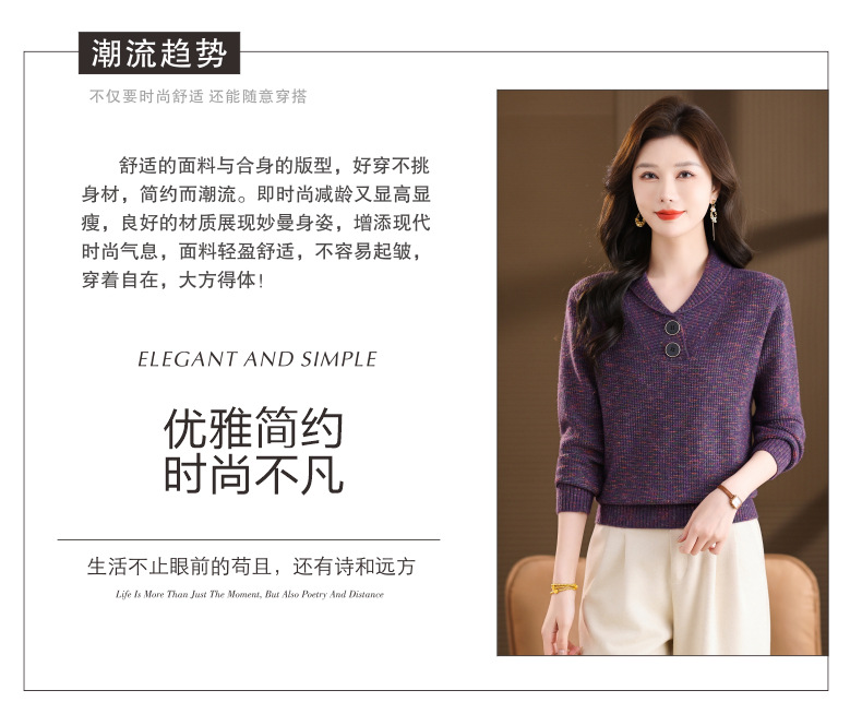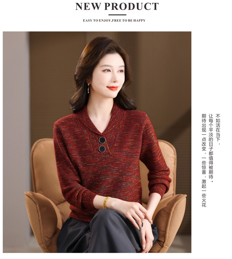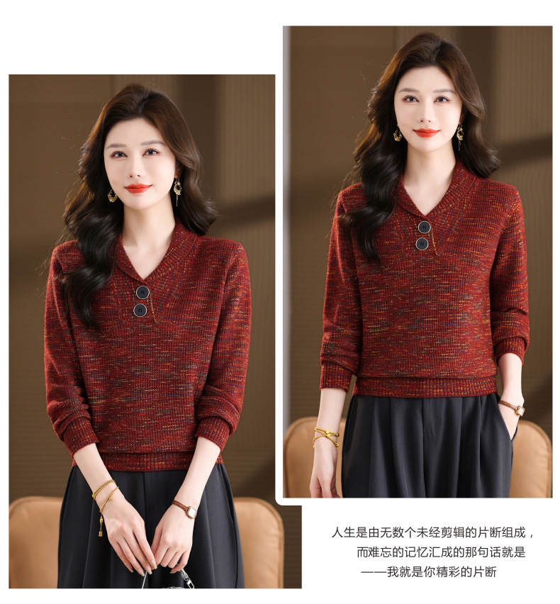 CC复古小香风V领双扣亮丝针织衫女秋冬酒红色气质内搭外穿宽松毛衣