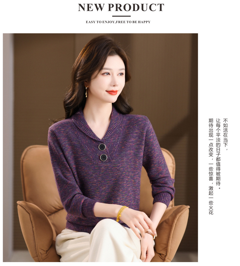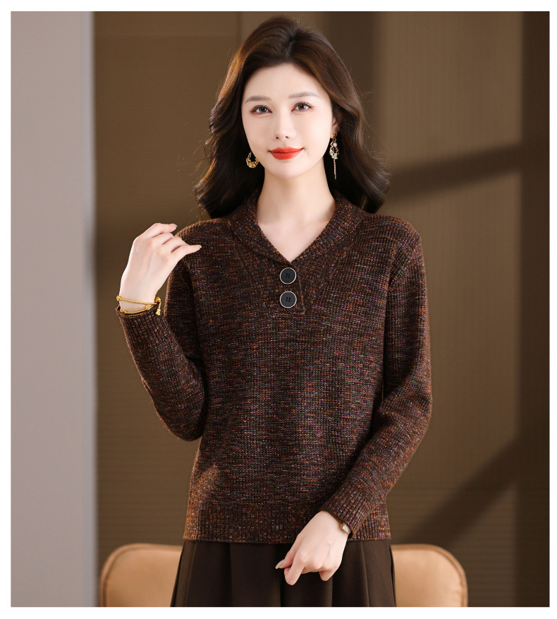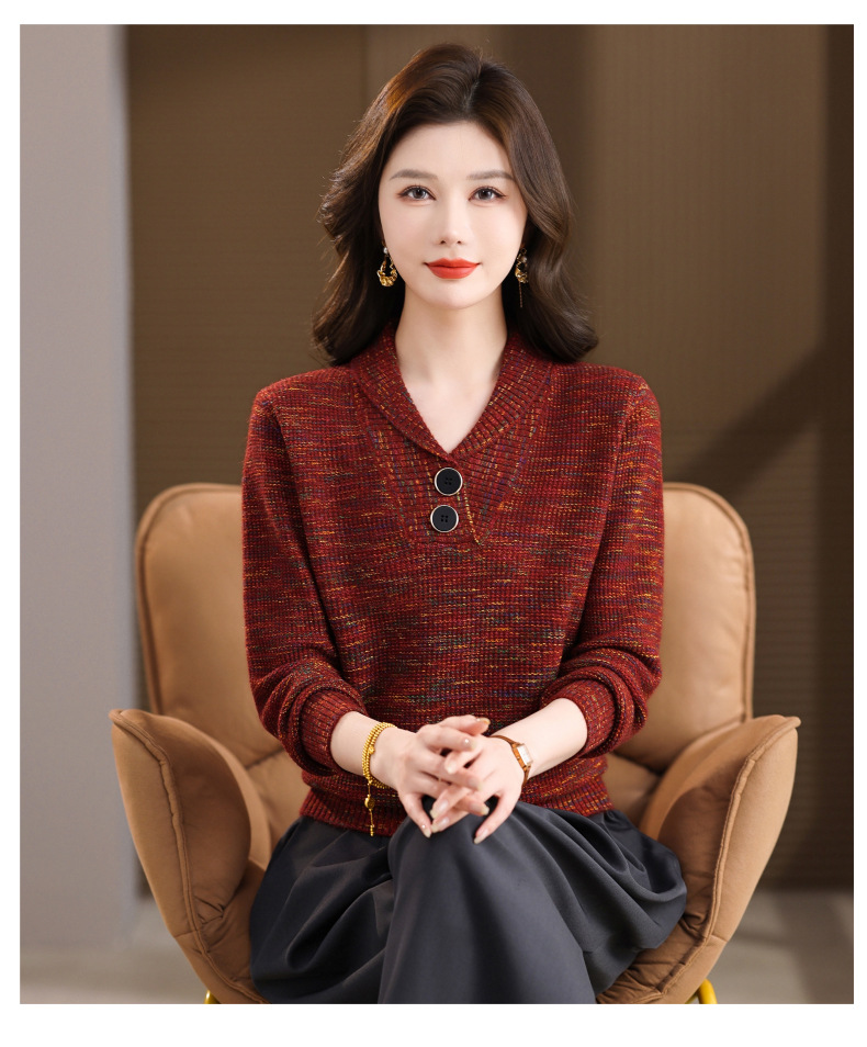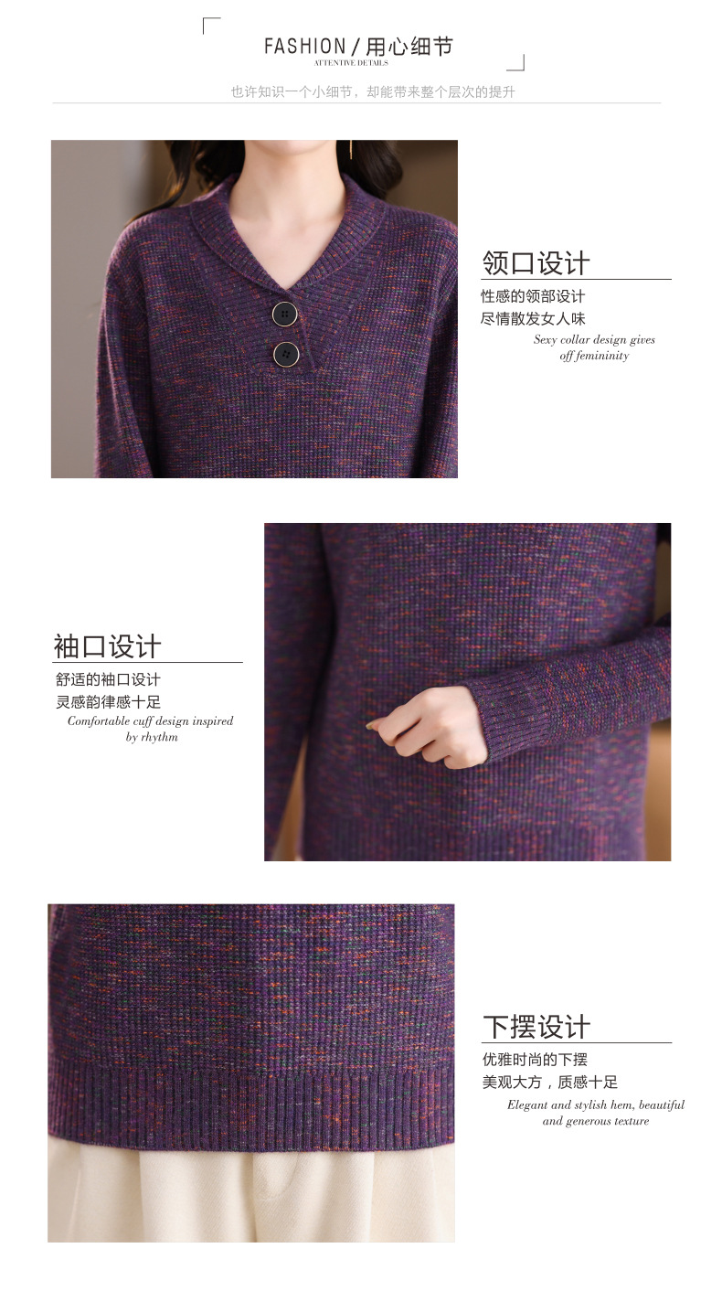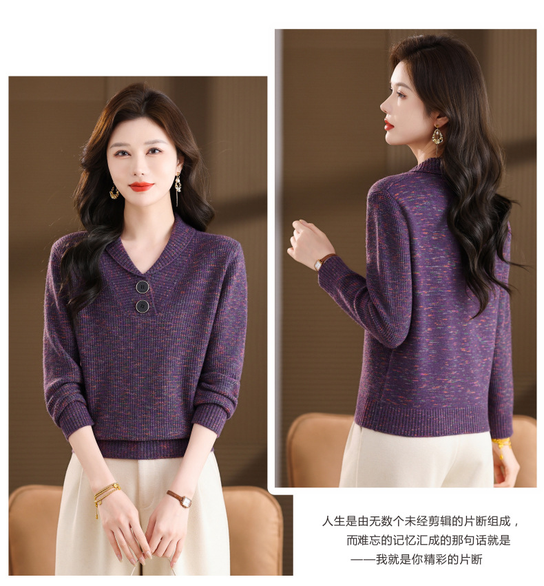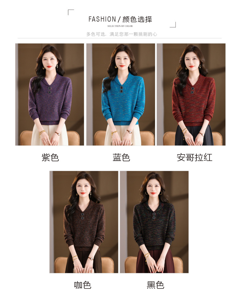 CC复古小香风V领双扣亮丝针织衫女秋冬酒红色气质内搭外穿宽松毛衣