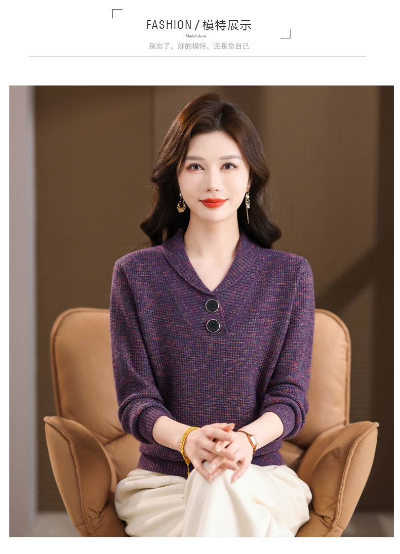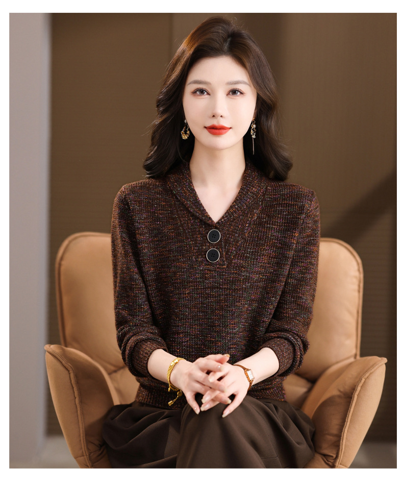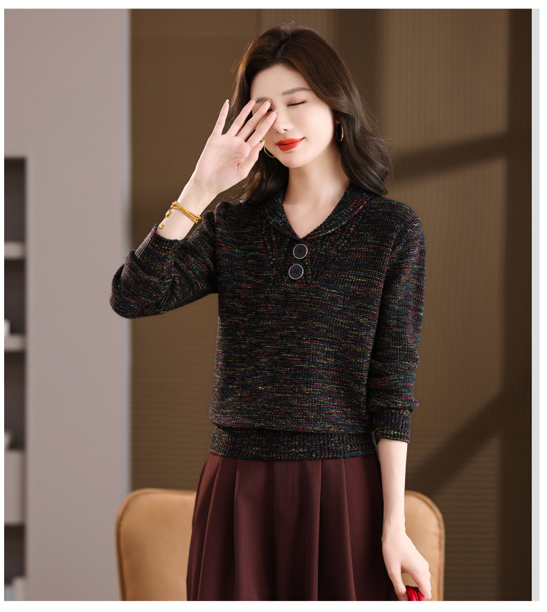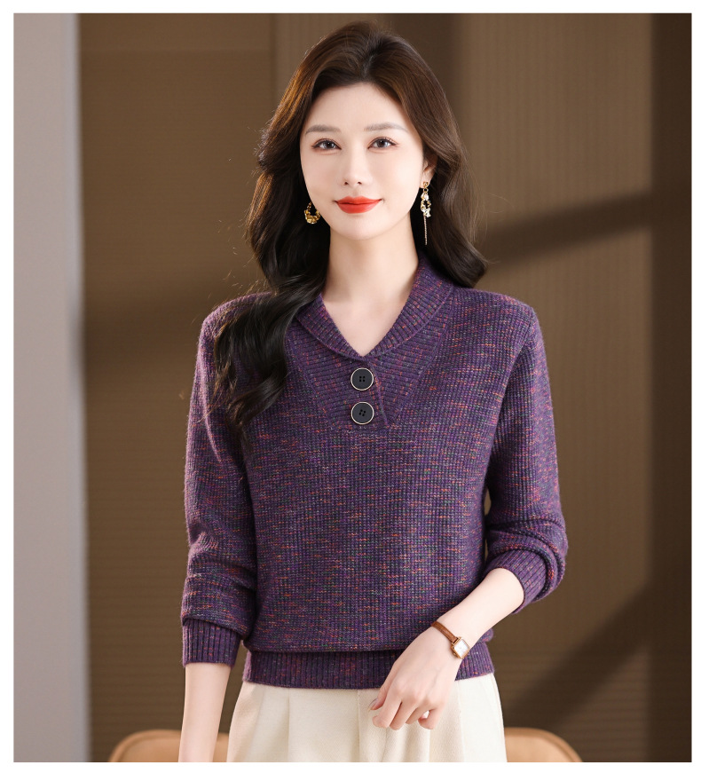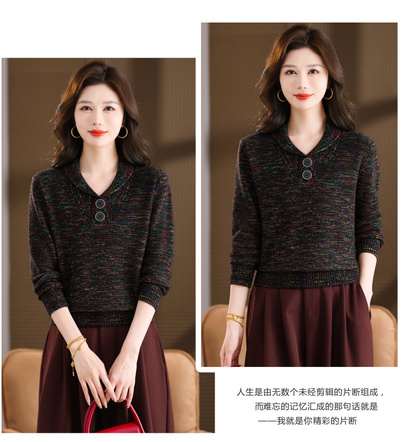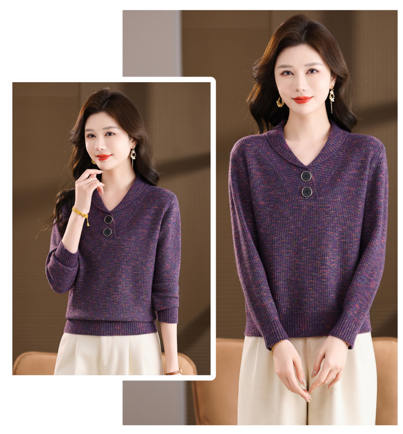 CC复古小香风V领双扣亮丝针织衫女秋冬酒红色气质内搭外穿宽松毛衣