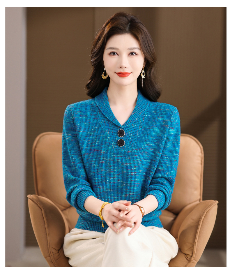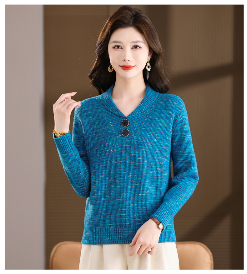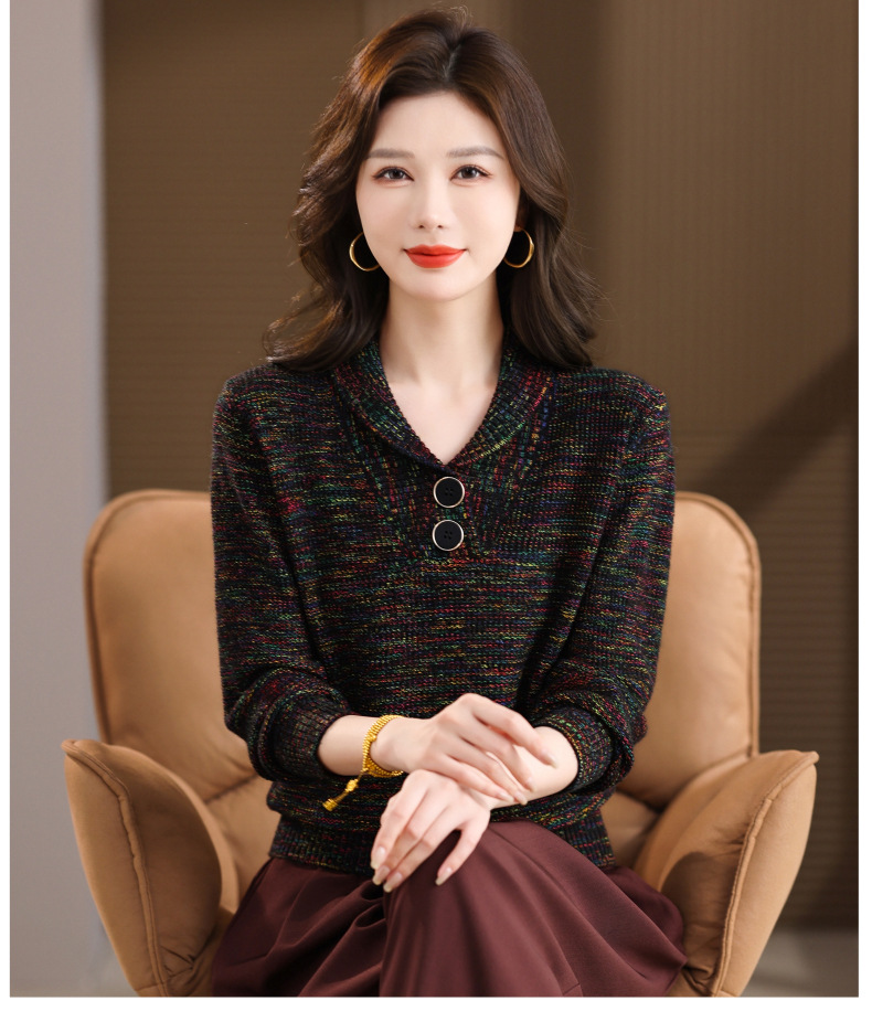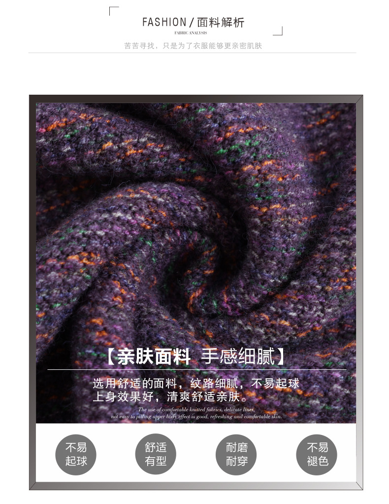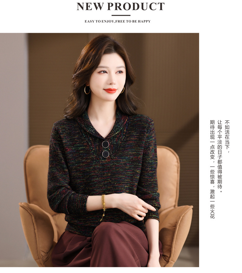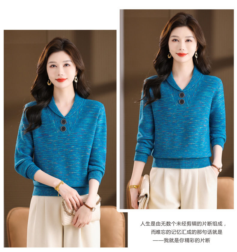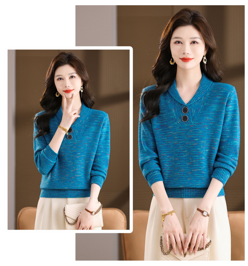 CC复古小香风V领双扣亮丝针织衫女秋冬酒红色气质内搭外穿宽松毛衣