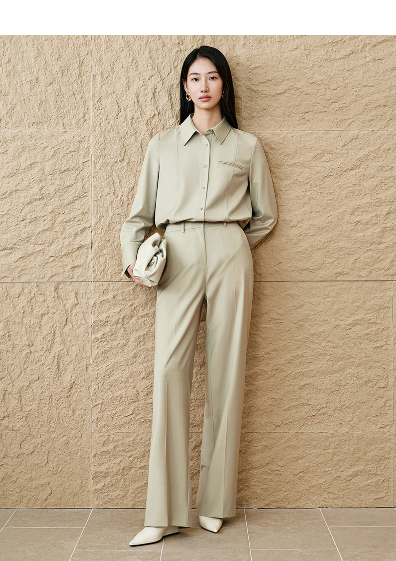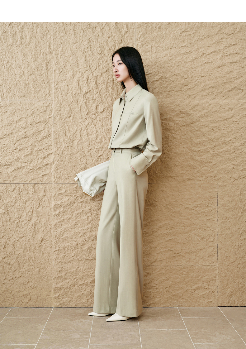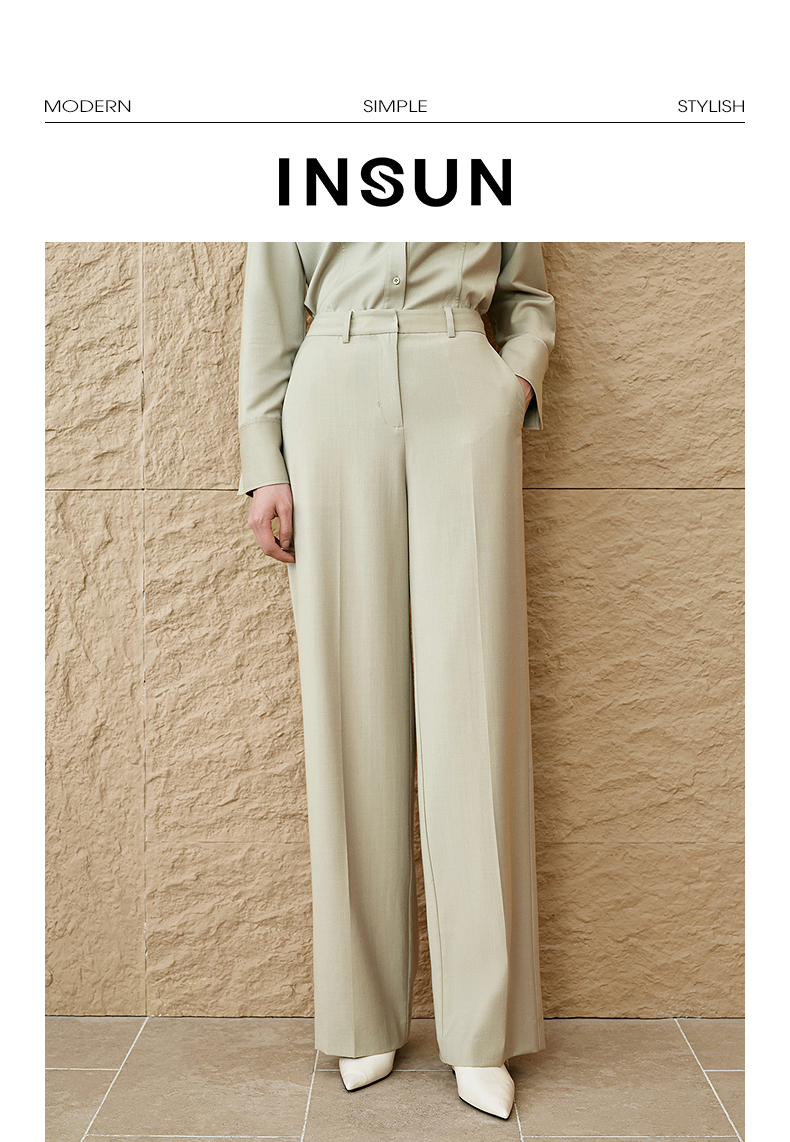 INSUN恩裳老钱风羊毛直筒休闲裤