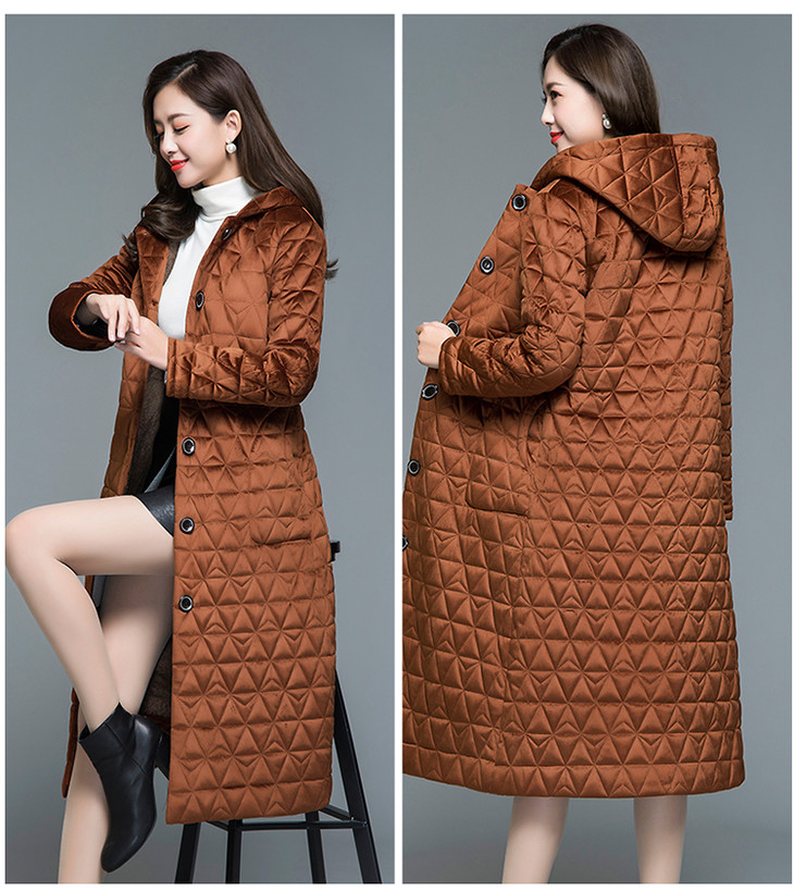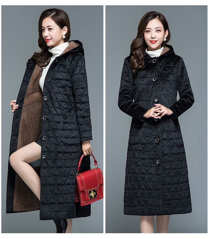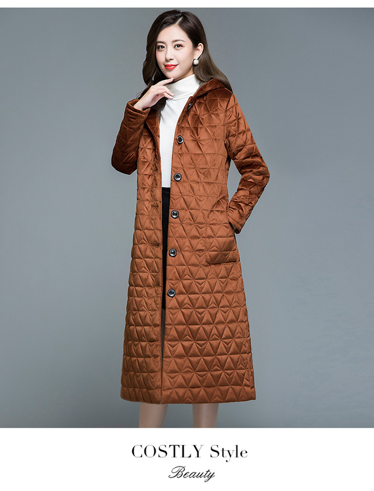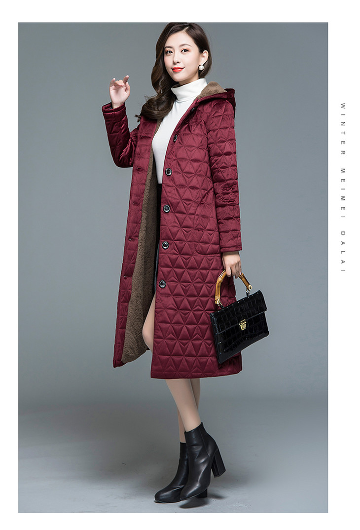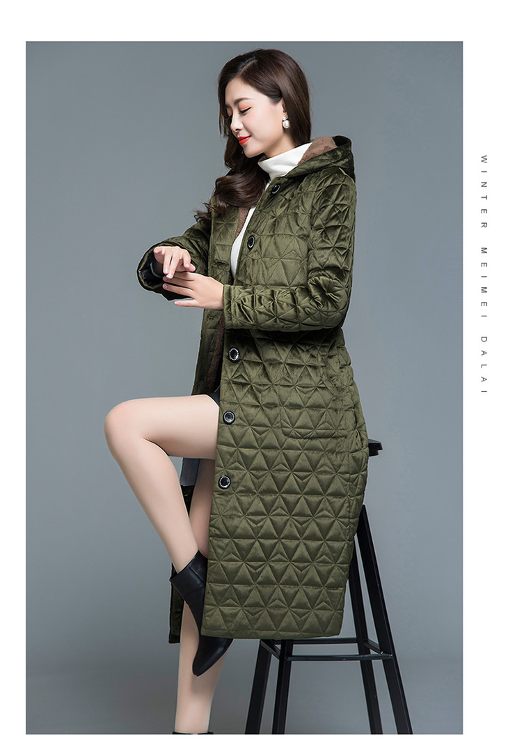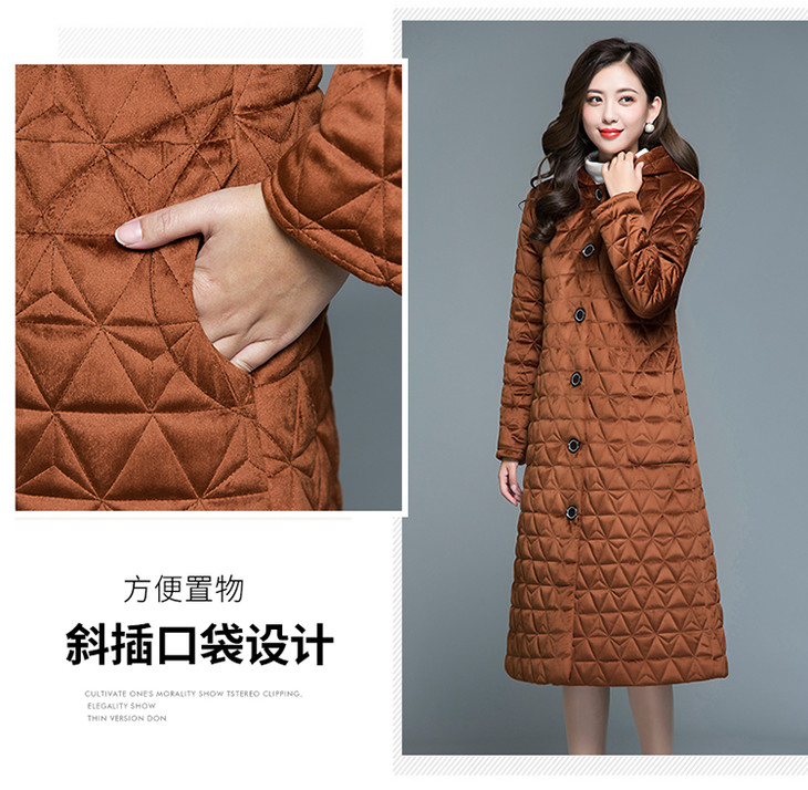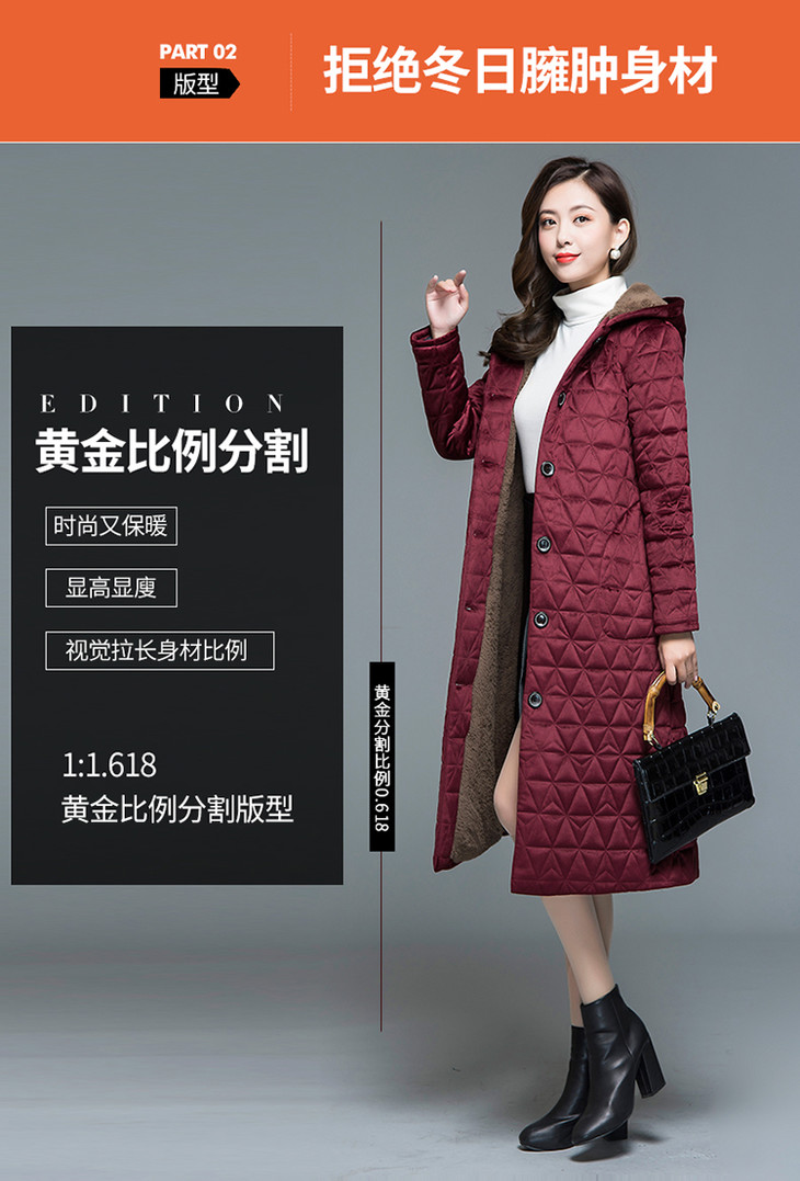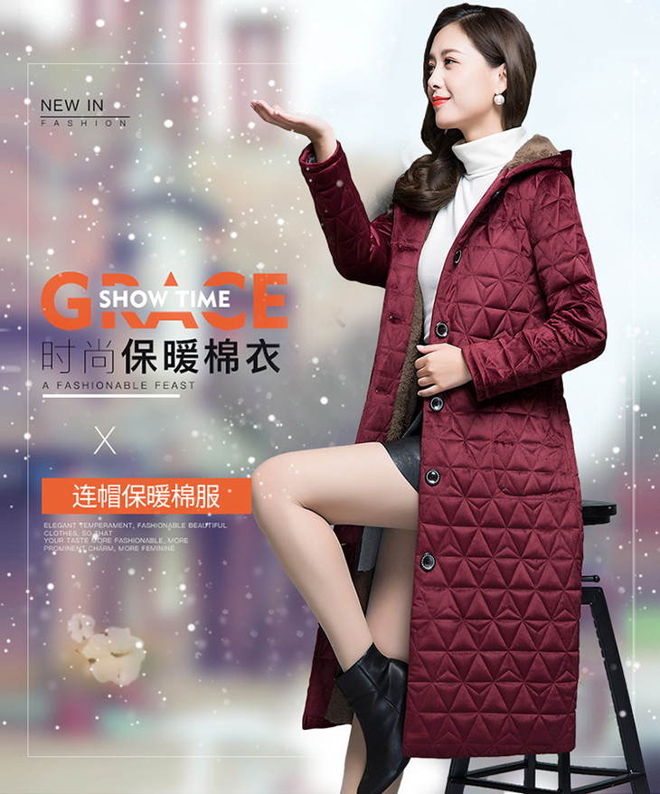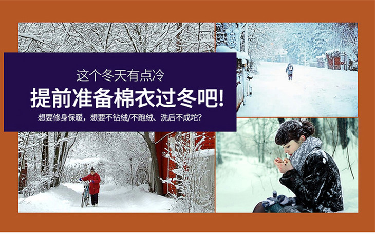 妃子笑1808冬季简约加绒加厚连帽棉袄