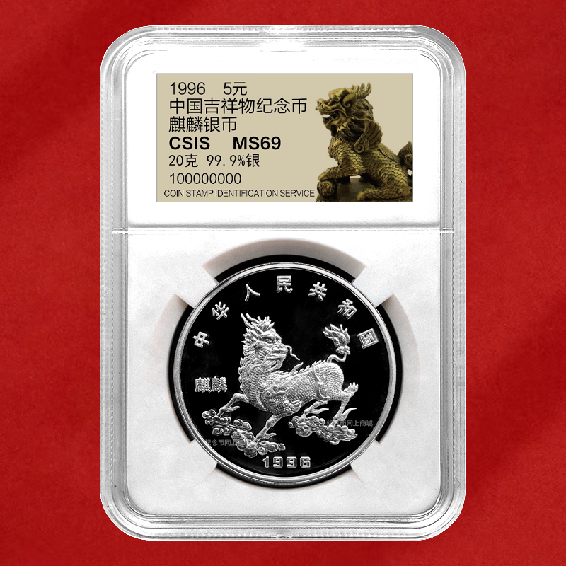 【老精稀】1996年麒麟银币 含纯银20克 封装评级
