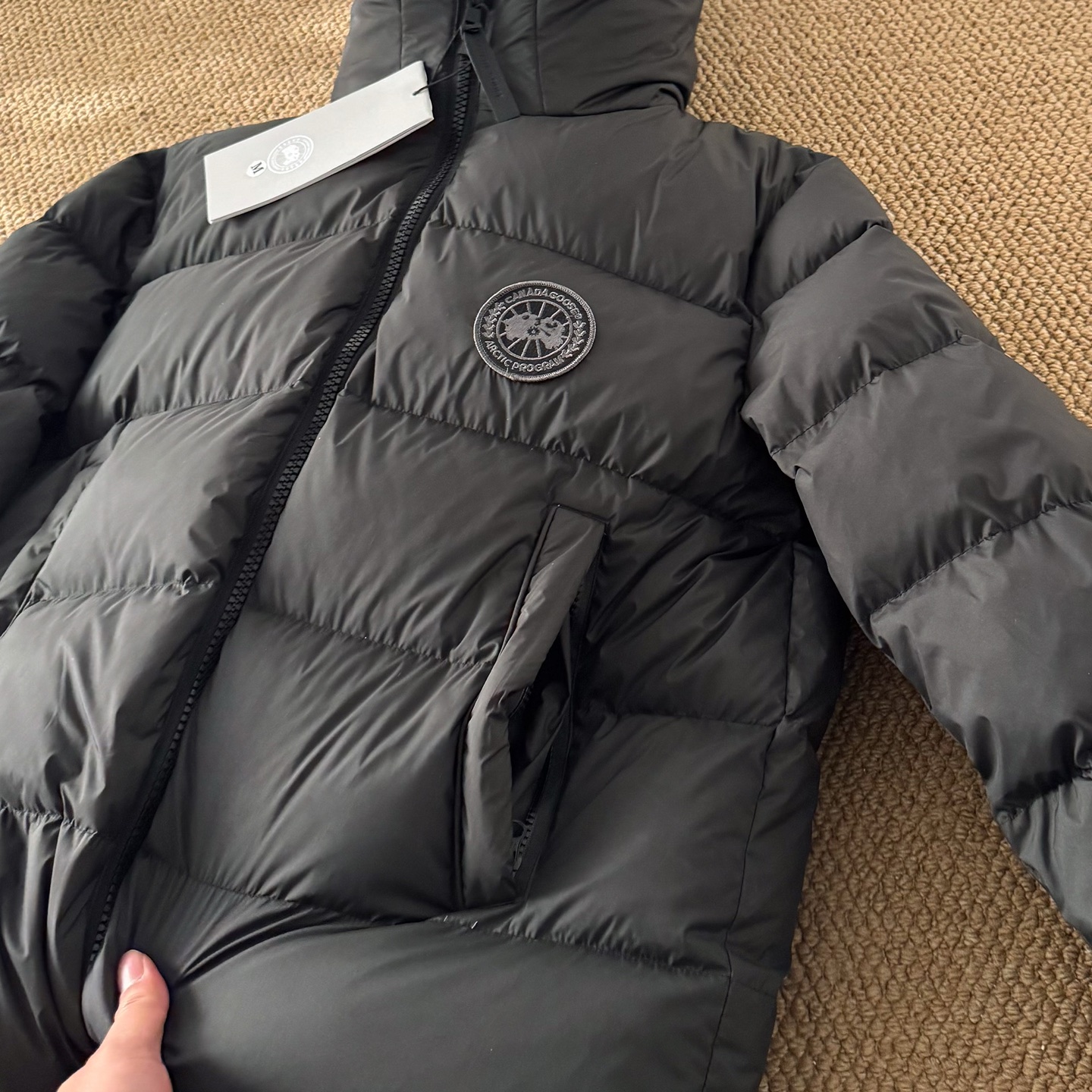 Canada Goose加拿大鹅 Grandview系列黑标情侣款连帽短款羽绒服,把极地暖度揣进日常,科考级御寒牌的“都市暖盾”,冷天里的体面与抗冻都占满,极地级锁温,625+高蓬绒+Arctic Tech防风防水面料,90%白鸭绒填充,-20℃通勤只穿它,面料防刮耐磨,硬实挺括,领口裹紧连寒风都钻不进,轻量不臃肿,短款绗缝版型,搭西装裤是通勤精致感,配牛仔裤就是街头松弛感,冬天也能穿得利落,细节是底气,可调节连帽+隐藏拉链袋,标志性Logo低调显质感,喜欢的不要错过!