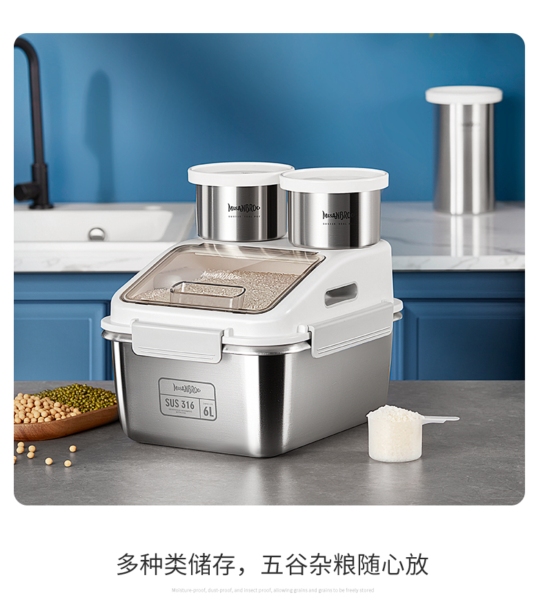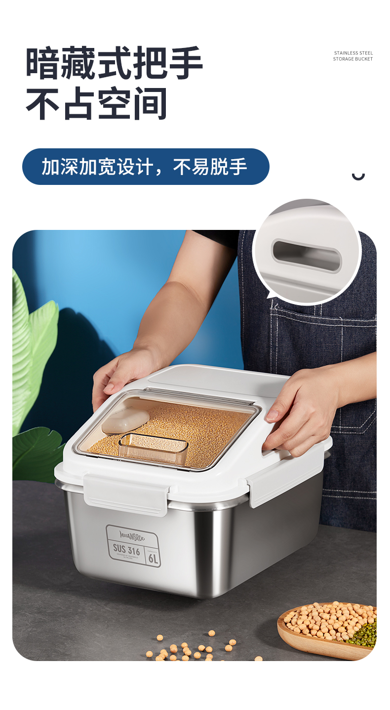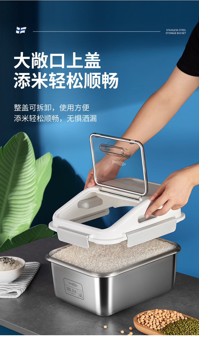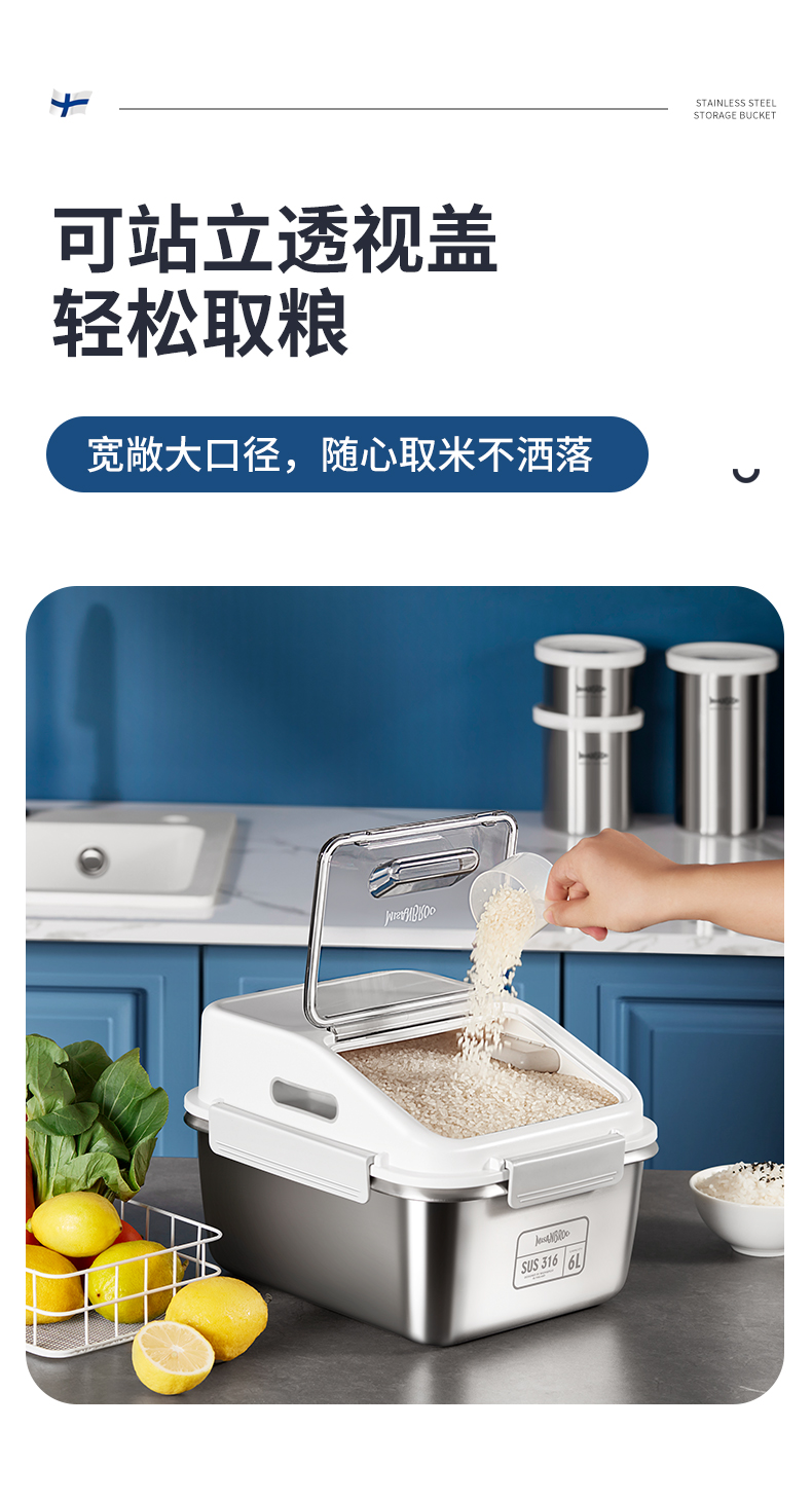芬兰MISANBROO米膳葆不锈钢米桶316食品级米缸家用密封防虫防潮面粉桶