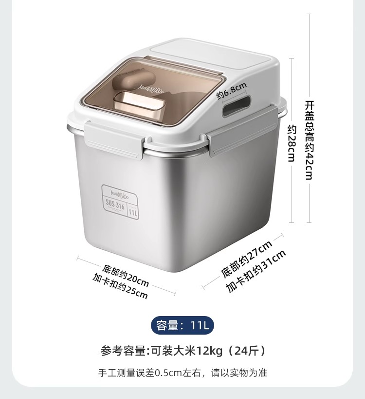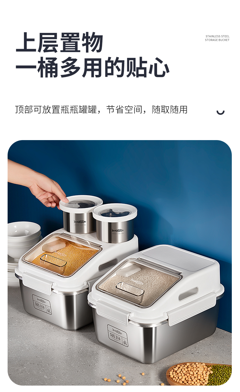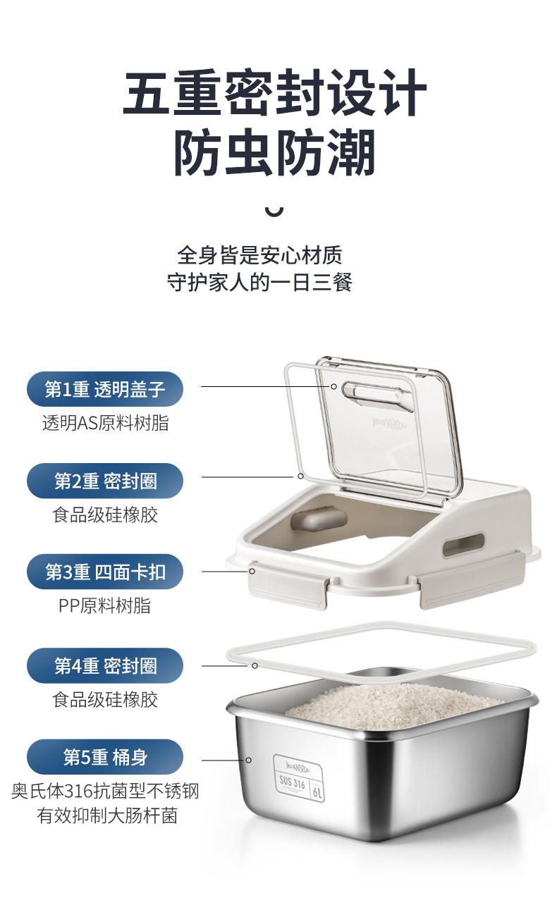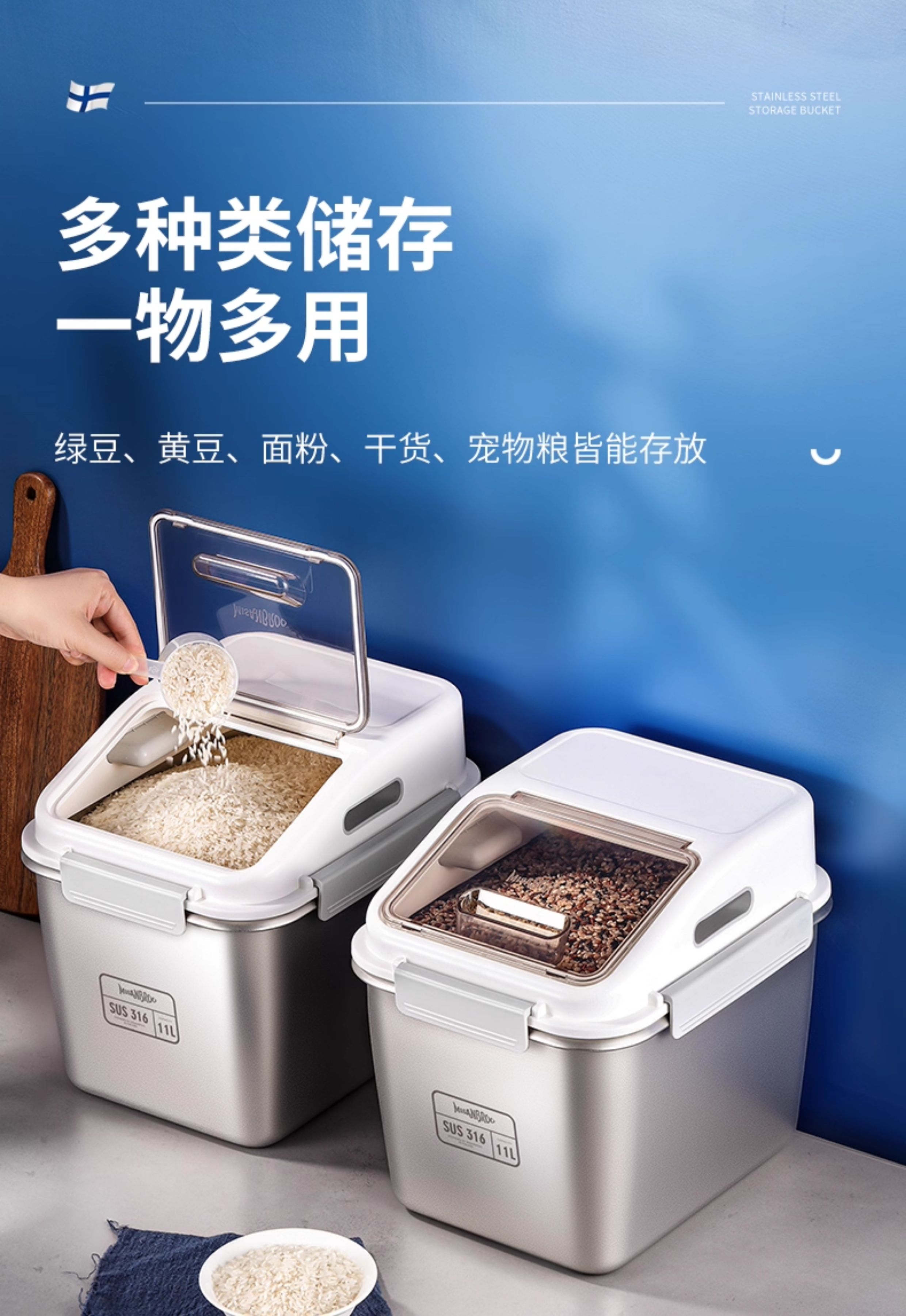 芬兰MISANBROO米膳葆不锈钢米桶316食品级米缸家用密封防虫防潮面粉桶