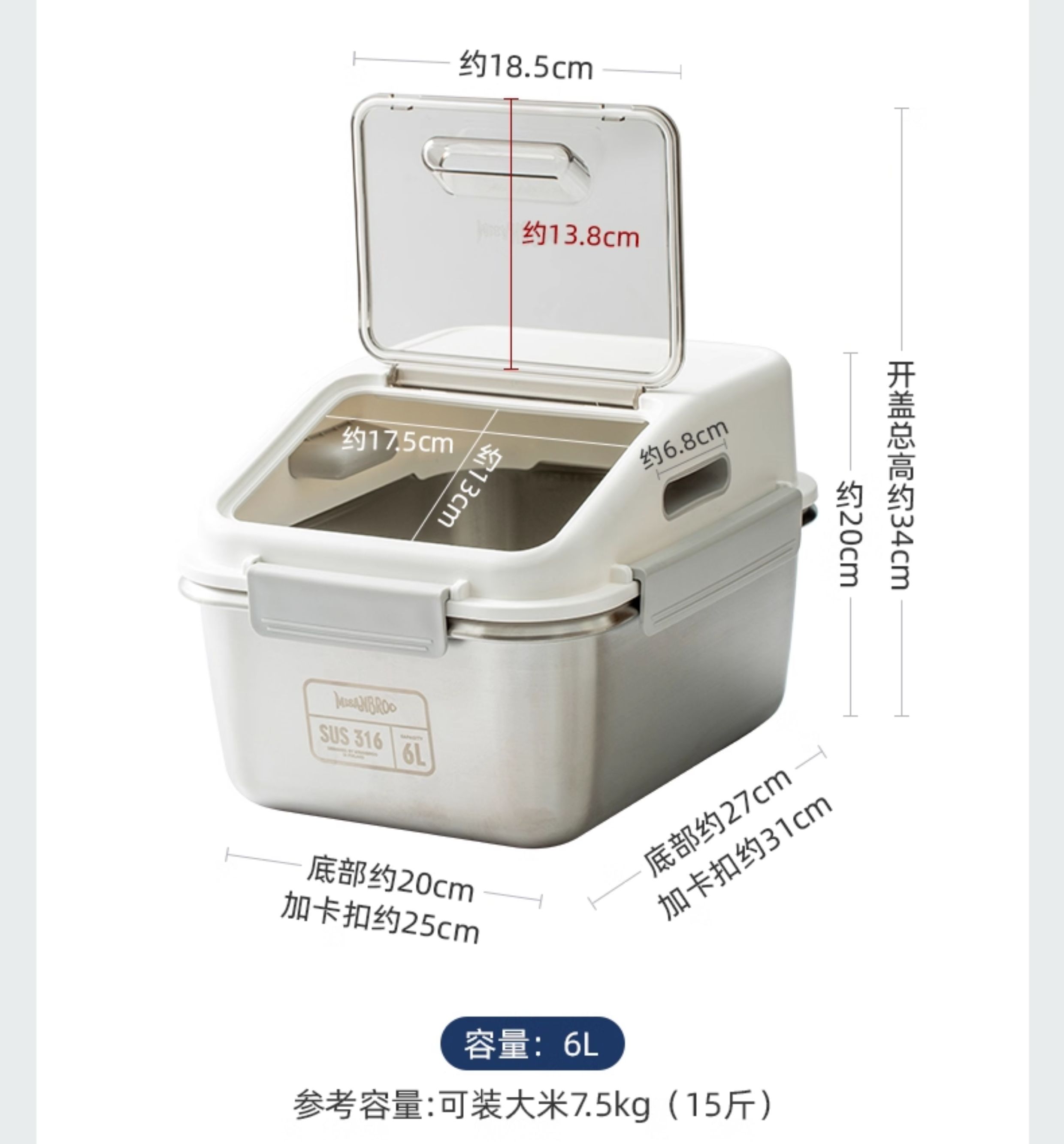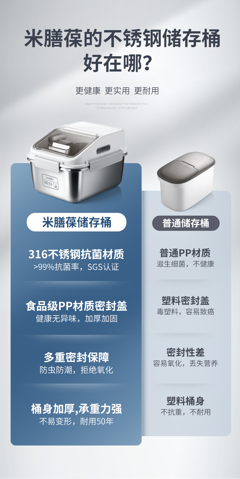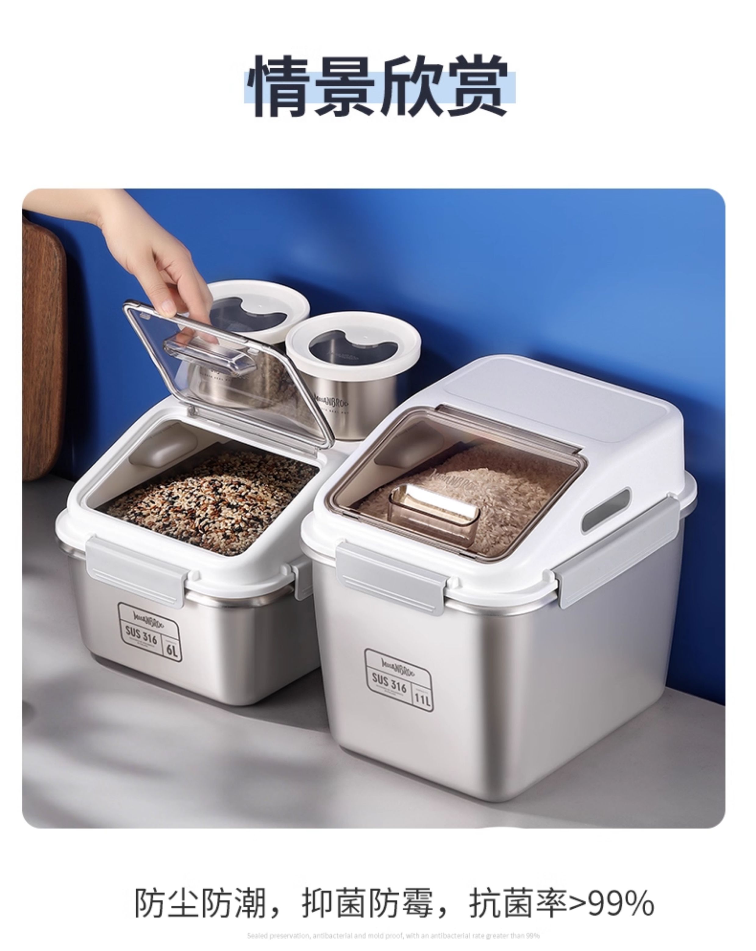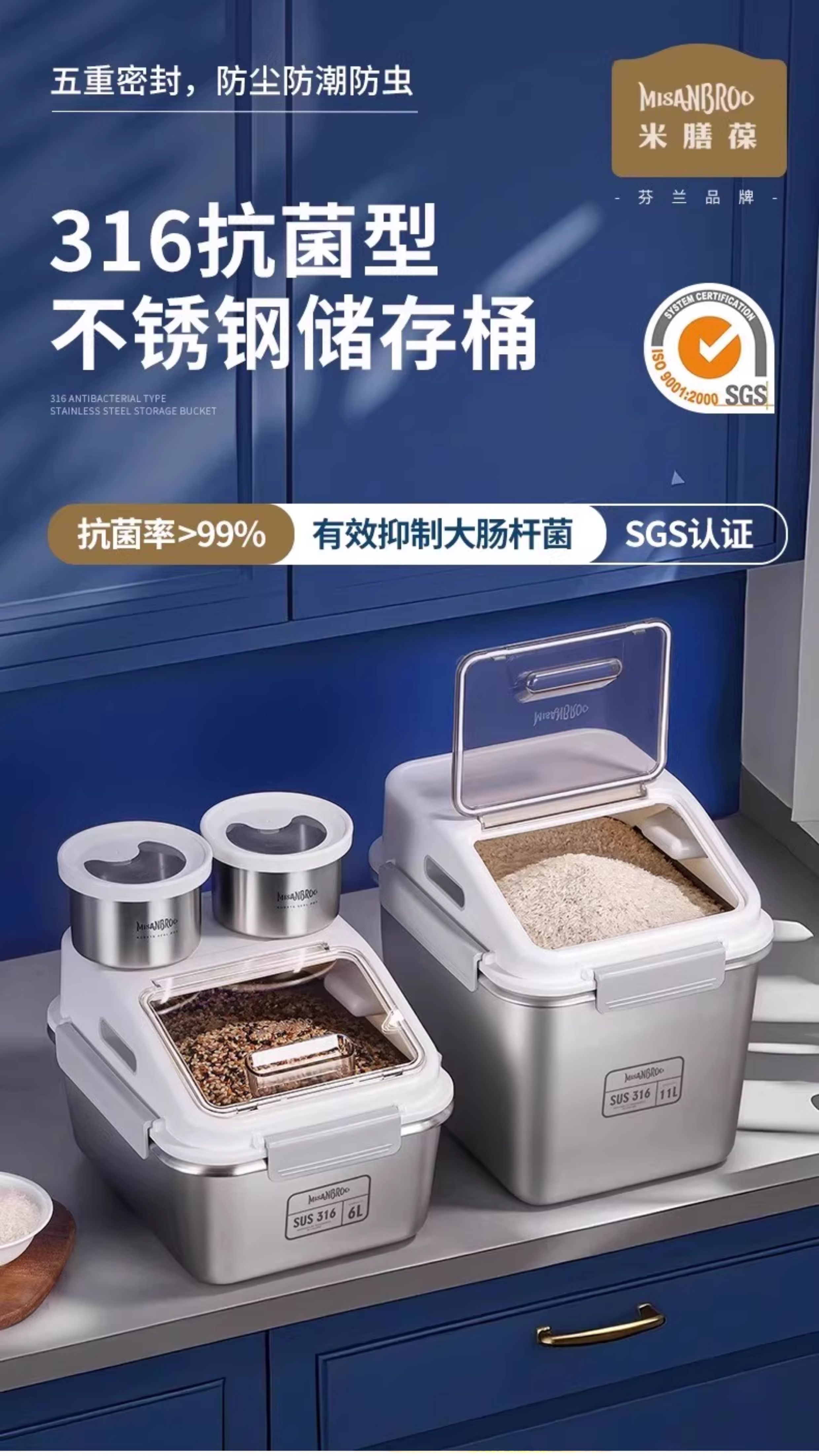 芬兰MISANBROO米膳葆不锈钢米桶316食品级米缸家用密封防虫防潮面粉桶