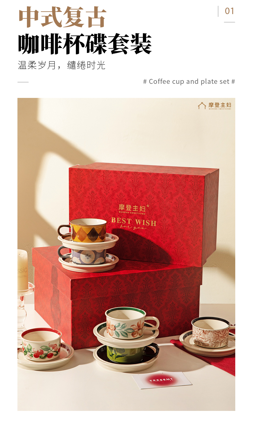 摩登主妇芬兰中古陶瓷咖啡杯套装礼盒乔迁新居新婚生日搬家礼物杯子马克杯