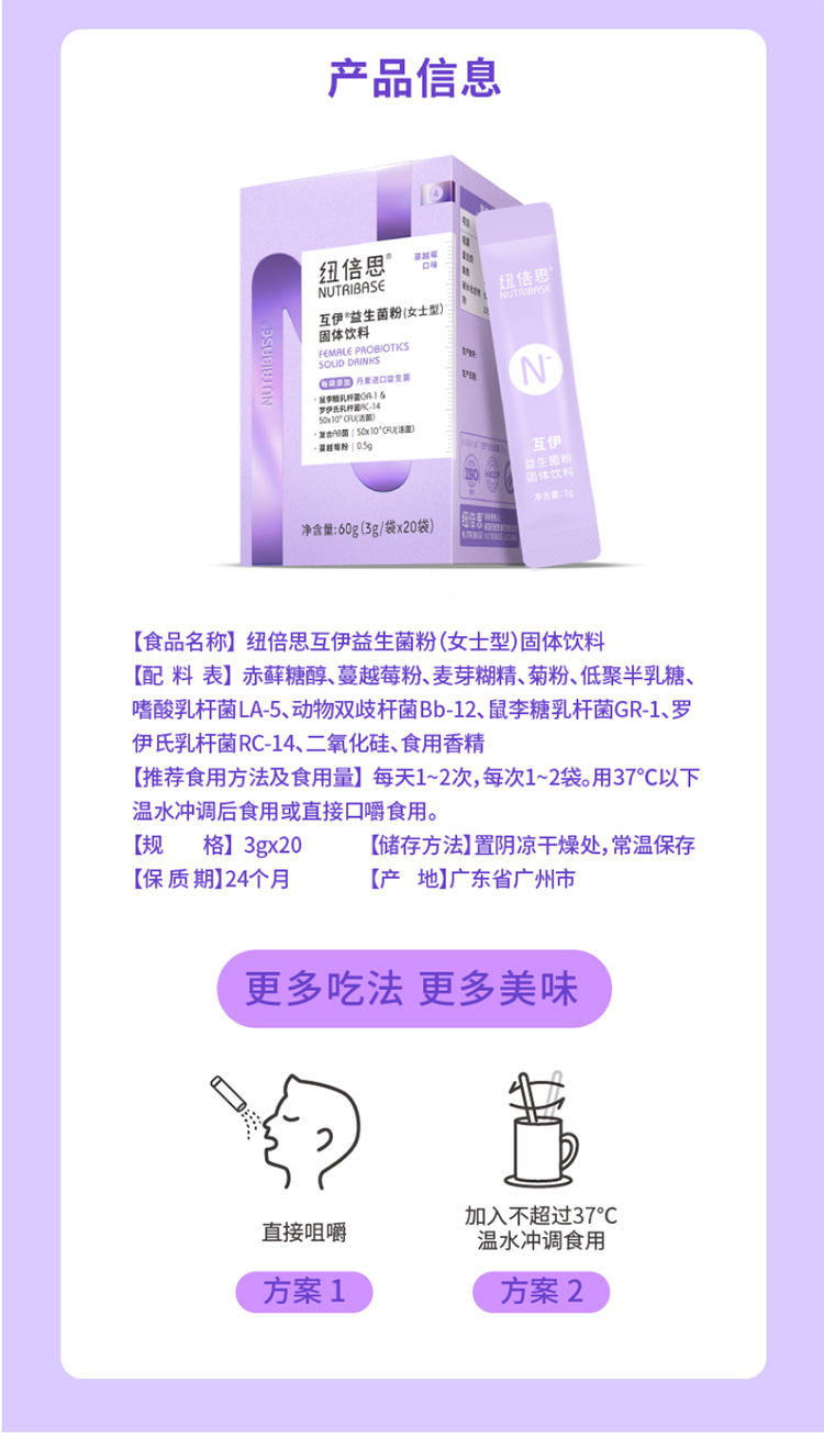 纽倍思互伊女性益生菌蔓越莓经期哺乳期私密健康(3g*20袋)