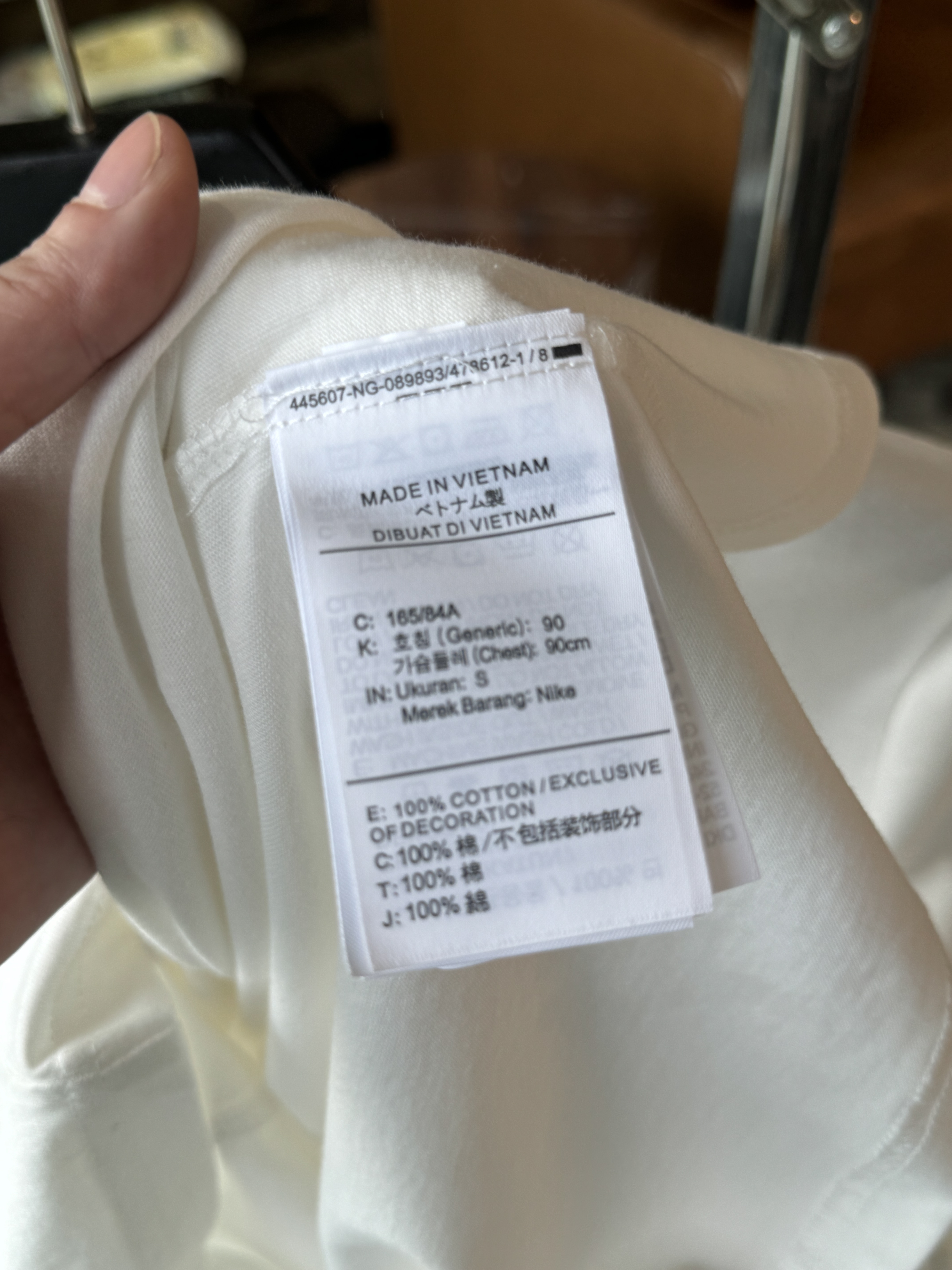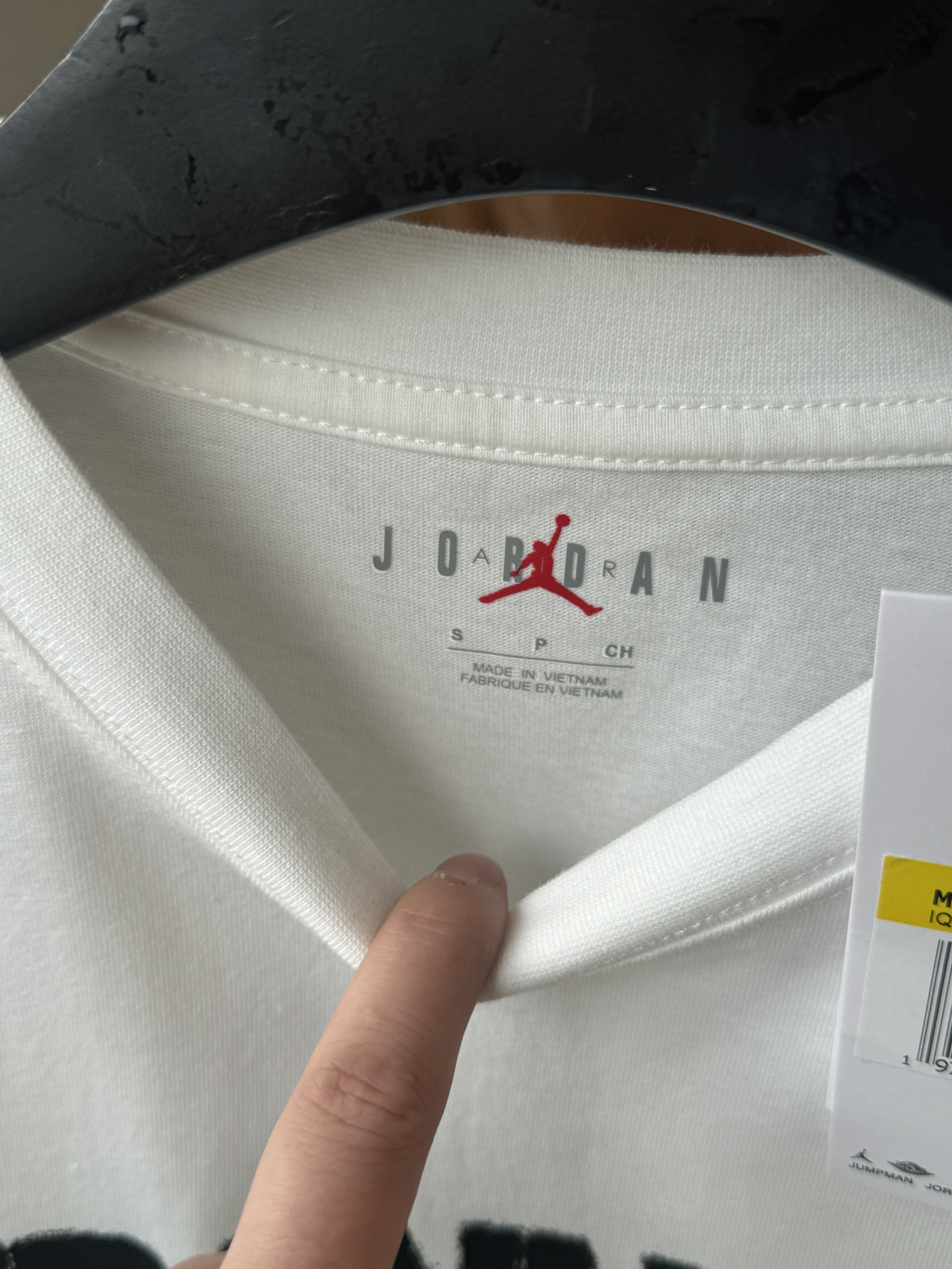 • 100%棉材质(图4/8标签实测),透气软糯不留褶,洗后依旧挺括;• 领口内侧Jumpman标签多国语言洗涤说明。越南制造工艺精细;。男女同款 码全覆盖,微宽松版型藏肉显瘦!