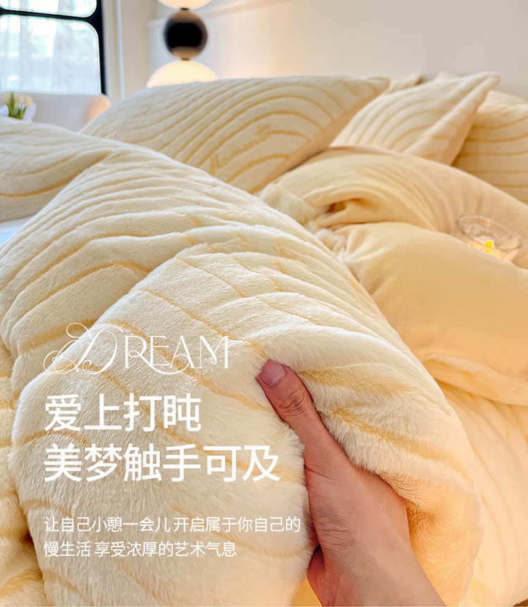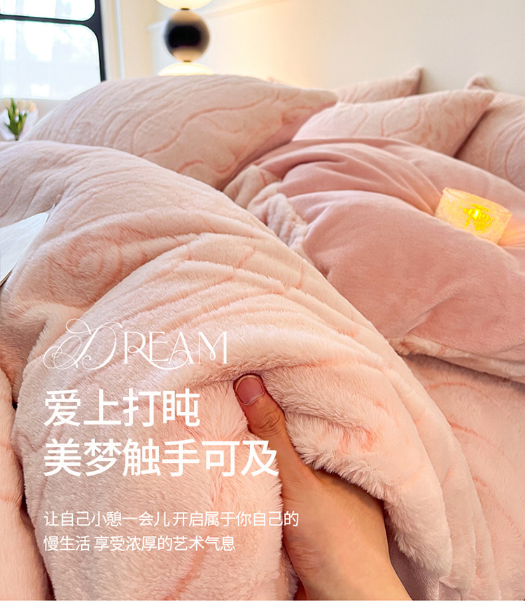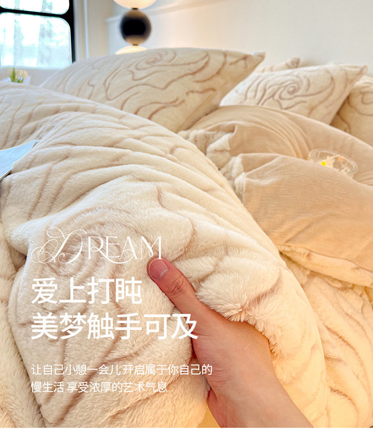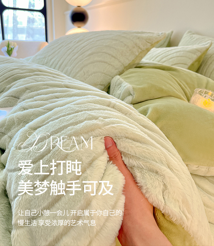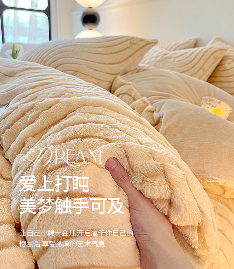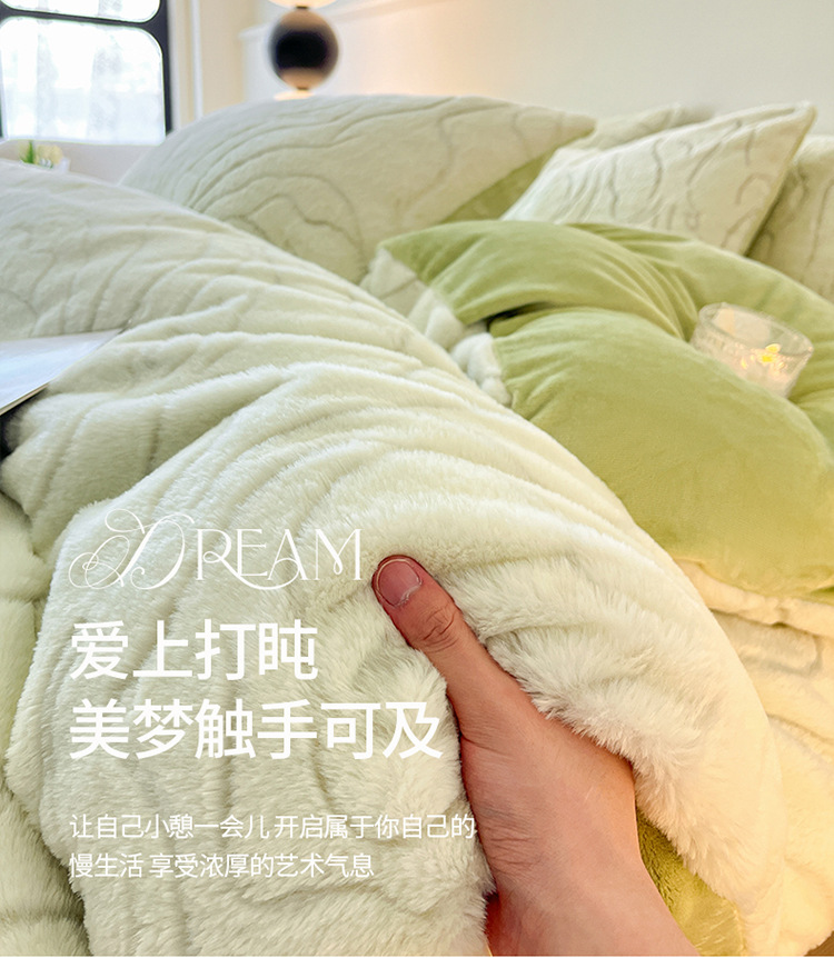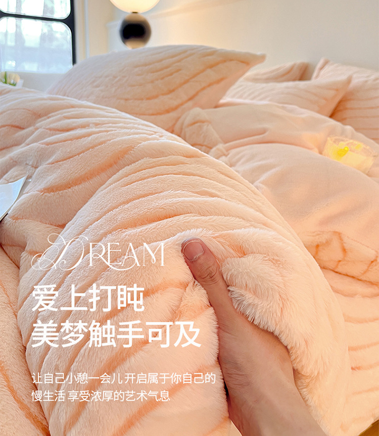 兔毛绒四件套冬天珊瑚绒,加厚牛奶绒被套法兰绒床单CJYJ-066