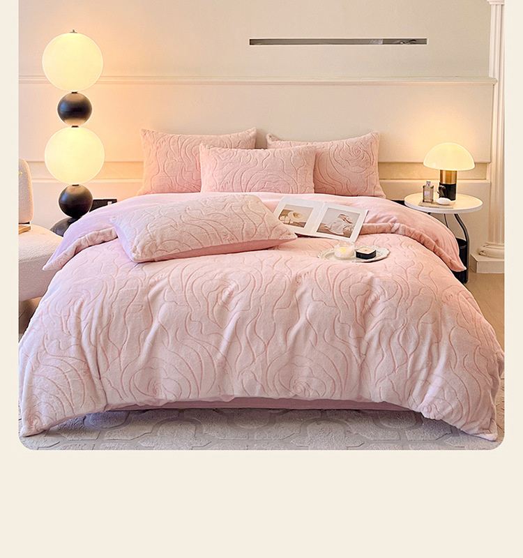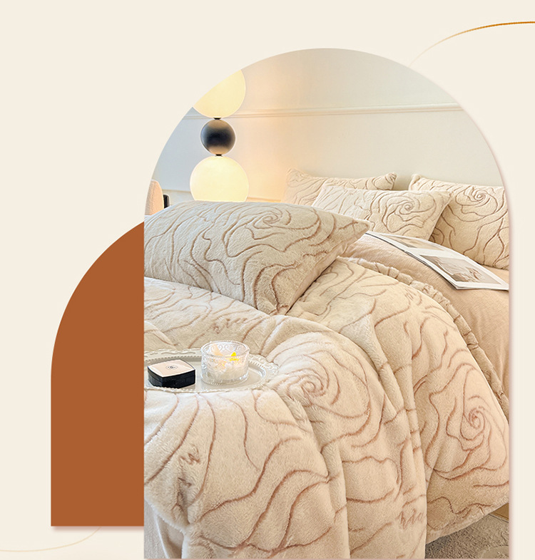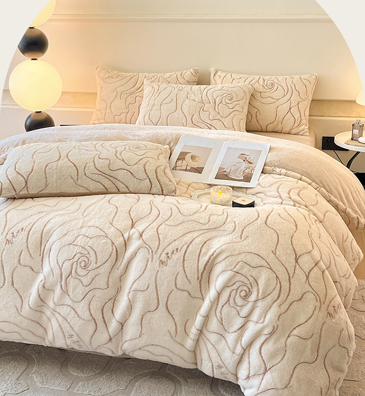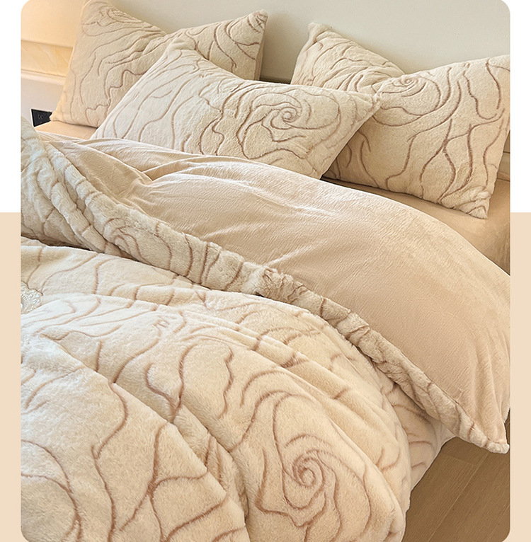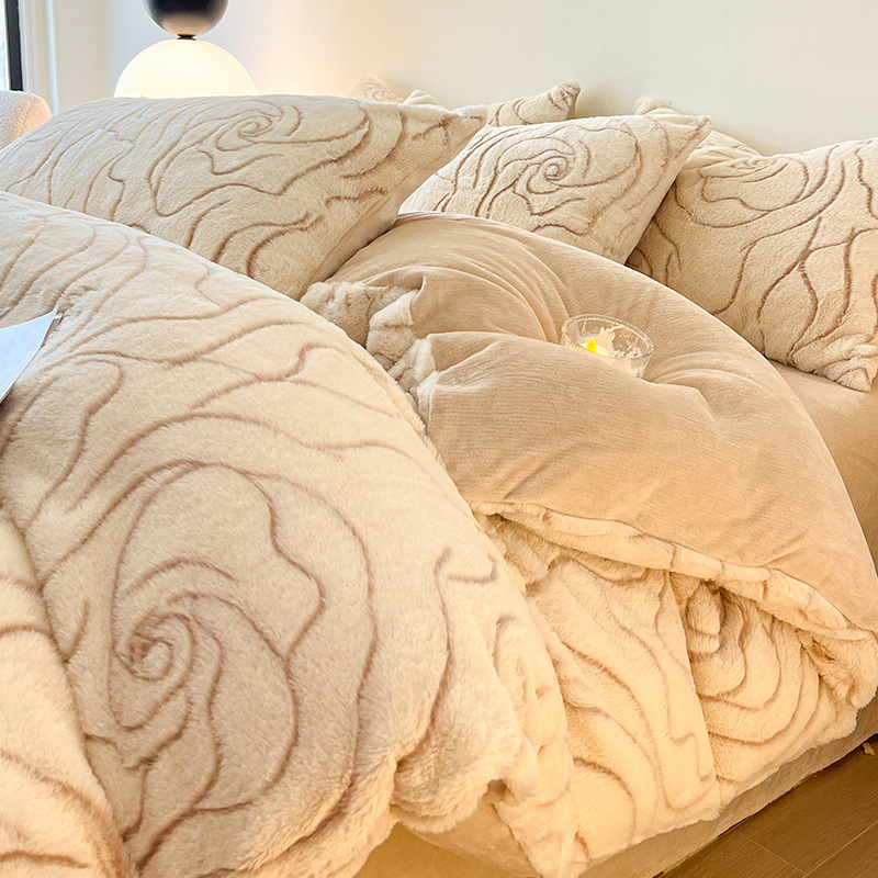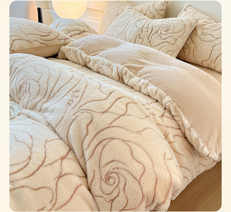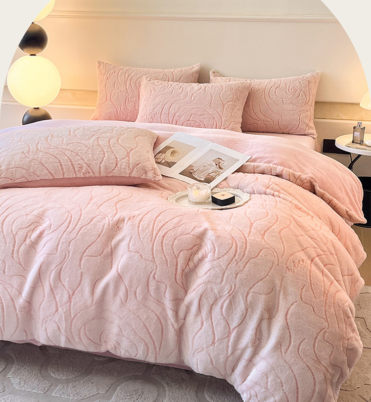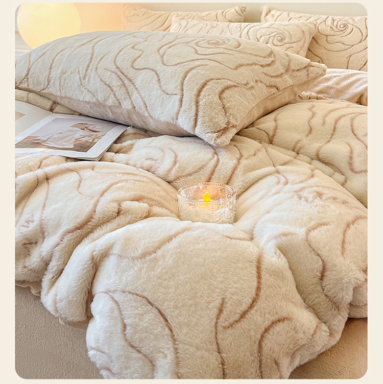 兔毛绒四件套冬天珊瑚绒,加厚牛奶绒被套法兰绒床单CJYJ-066