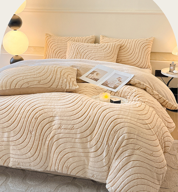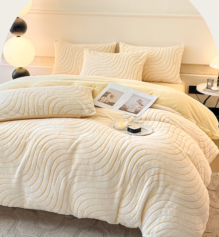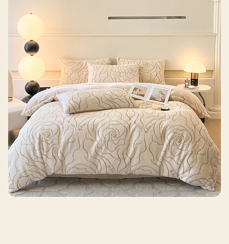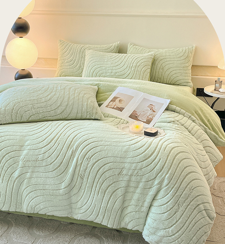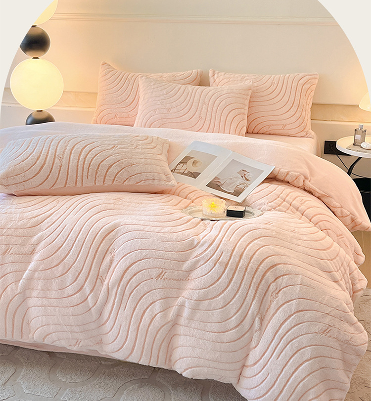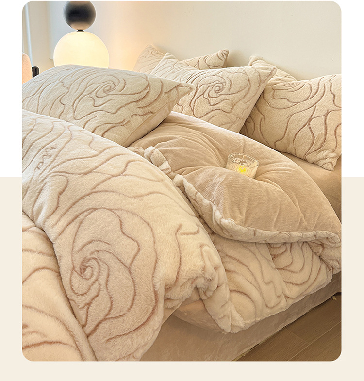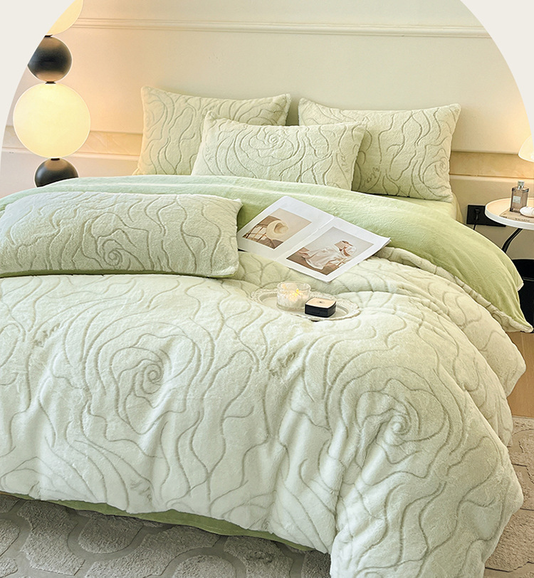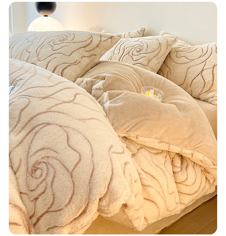 兔毛绒四件套冬天珊瑚绒,加厚牛奶绒被套法兰绒床单CJYJ-066