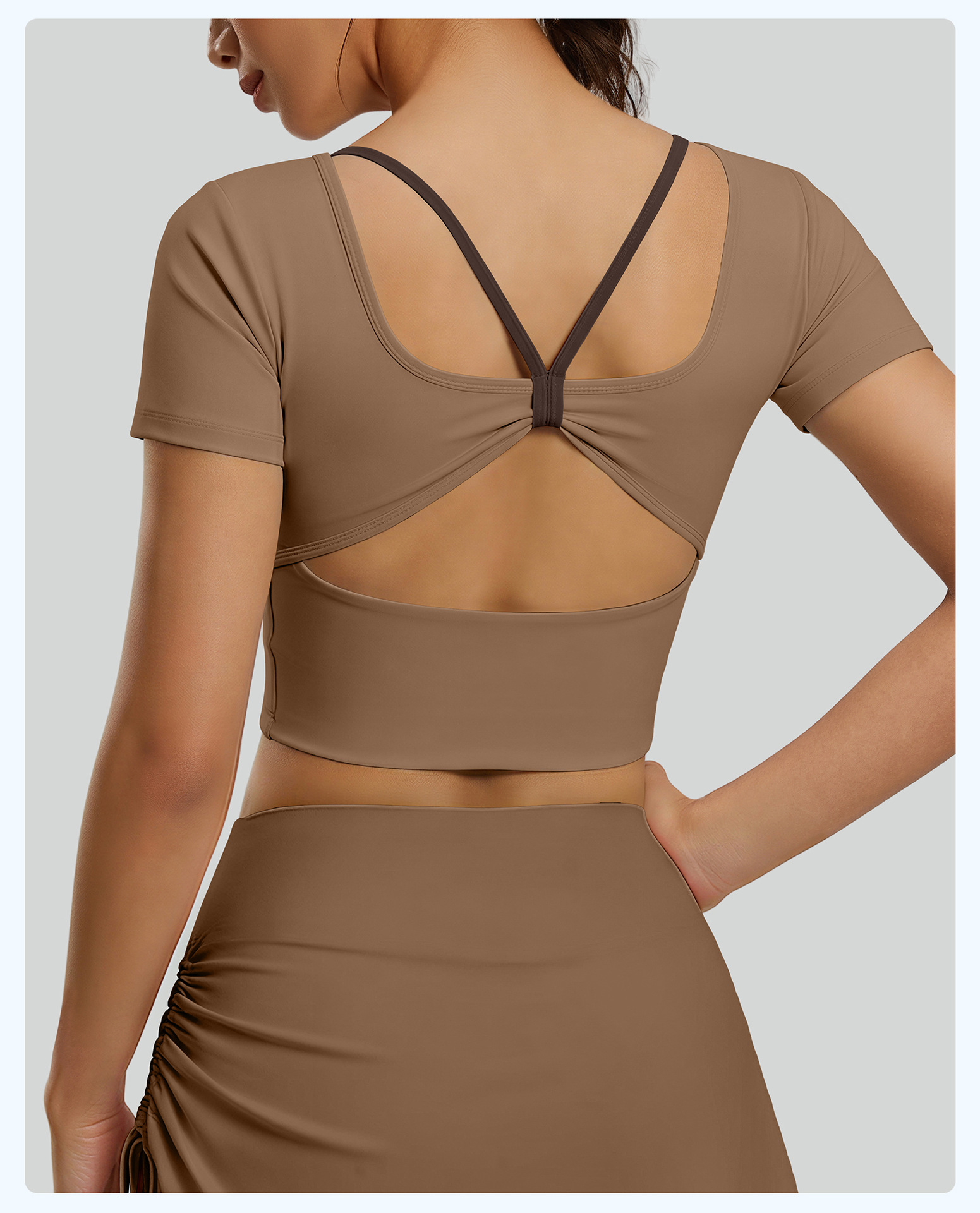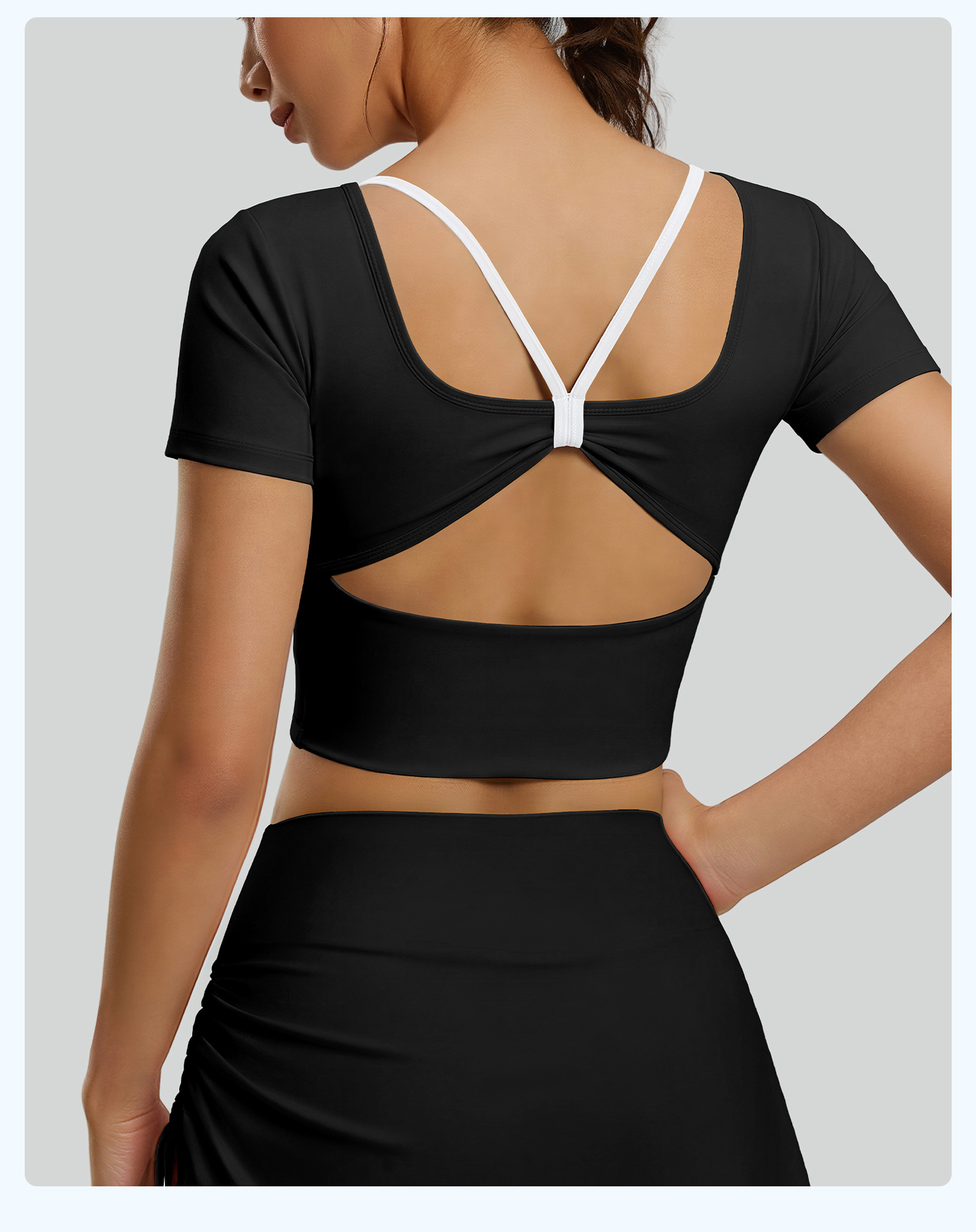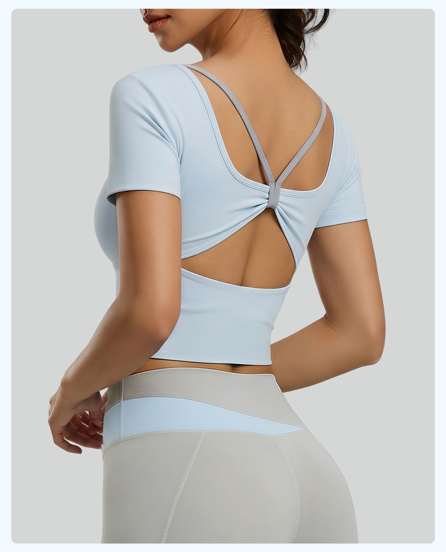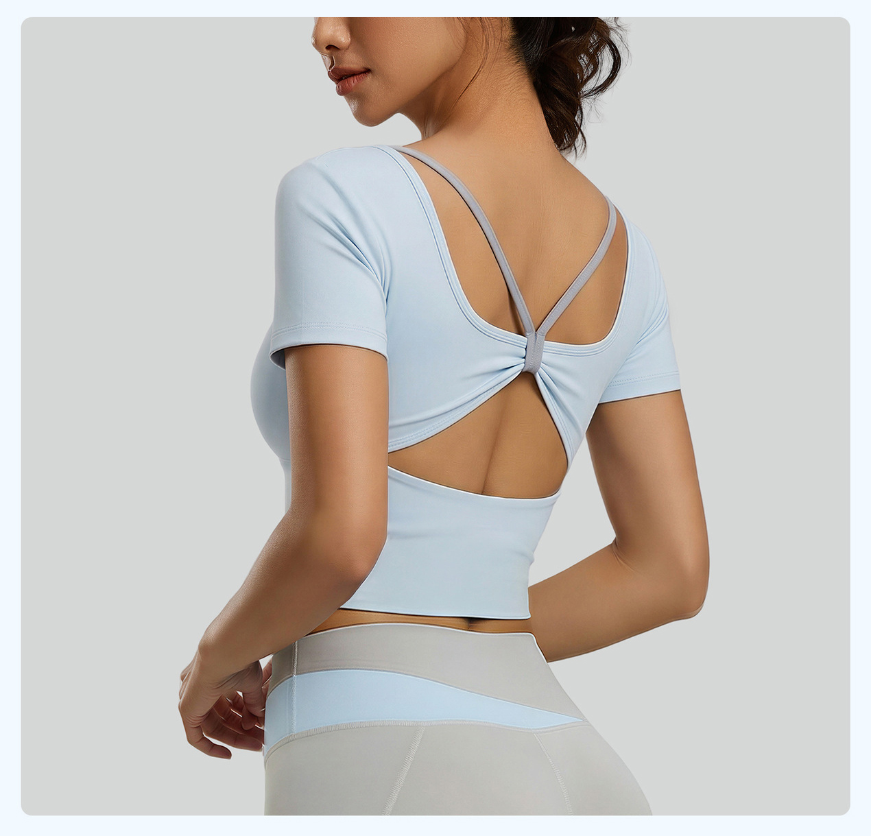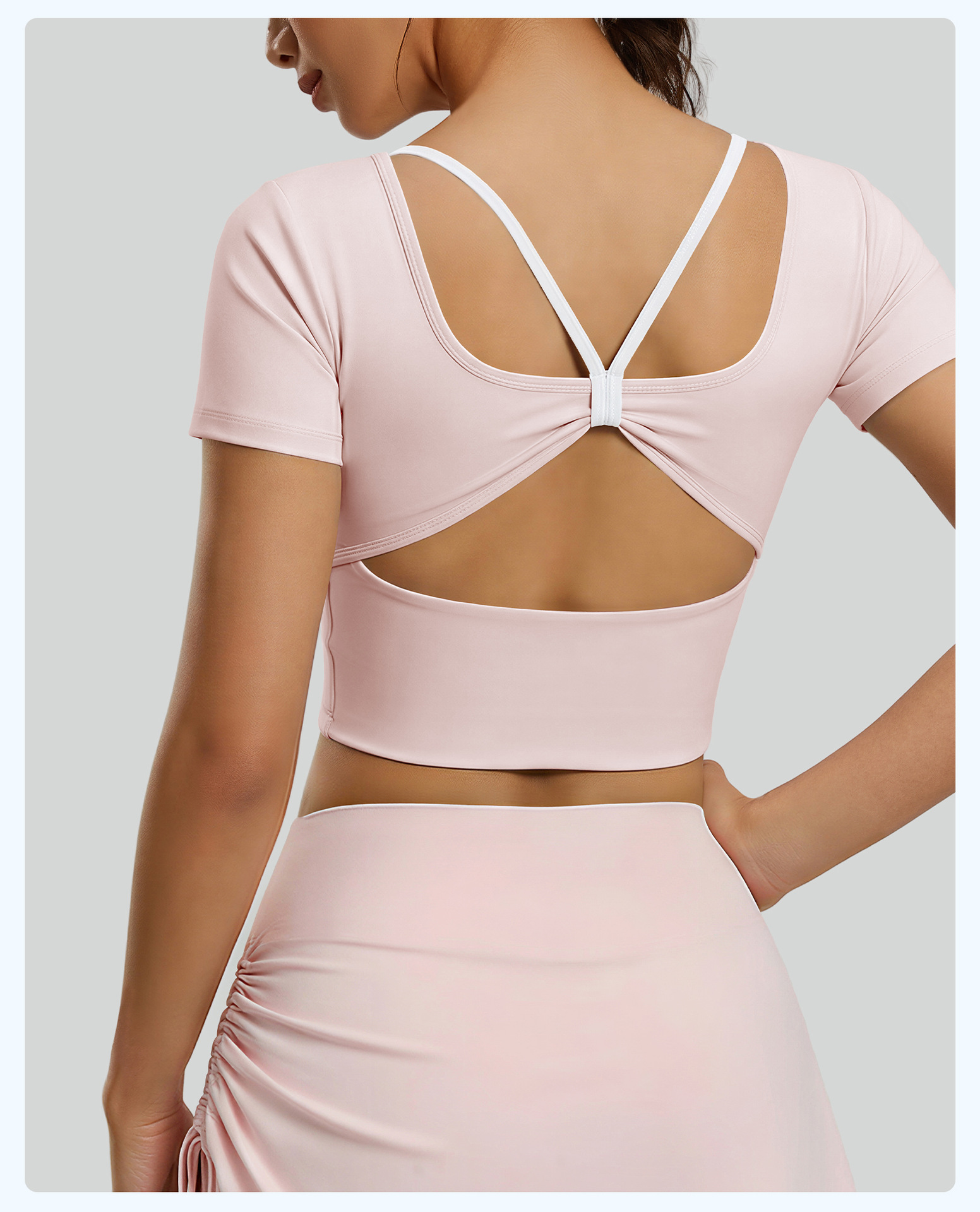 跃牌【瑜堂系列】新款蝴蝶美背瑜伽服上衣带胸垫短袖交叉运动透气健身服JYMD163