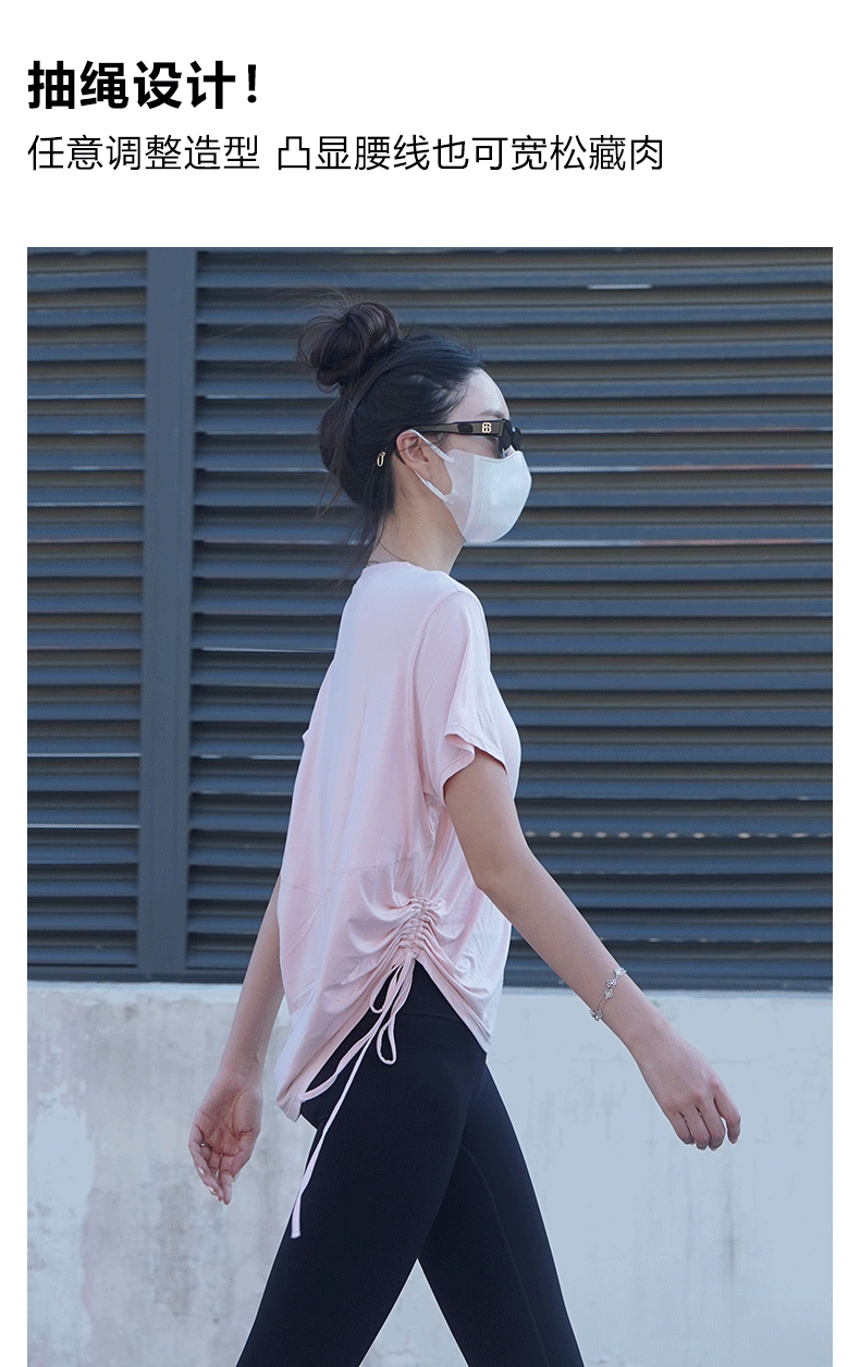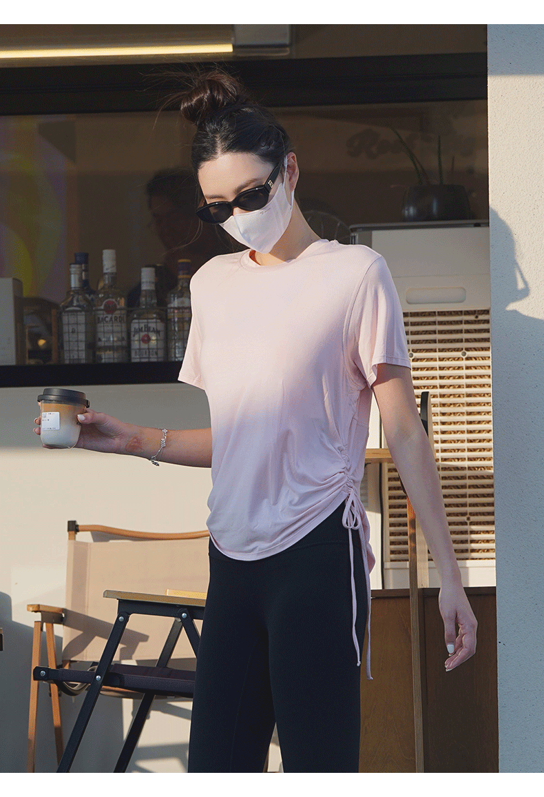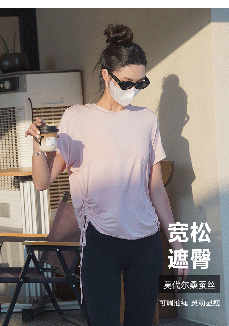 跃牌【周游世界系列】春夏新款瑜伽服女天丝桑蚕丝复古上衣弹力运动休闲短袖T恤TP0866