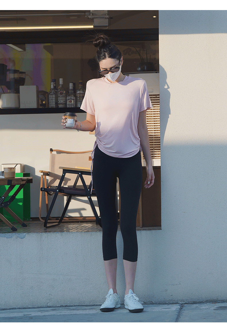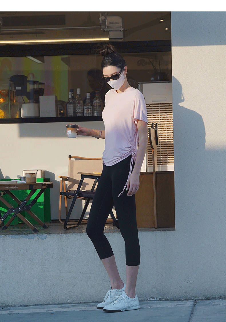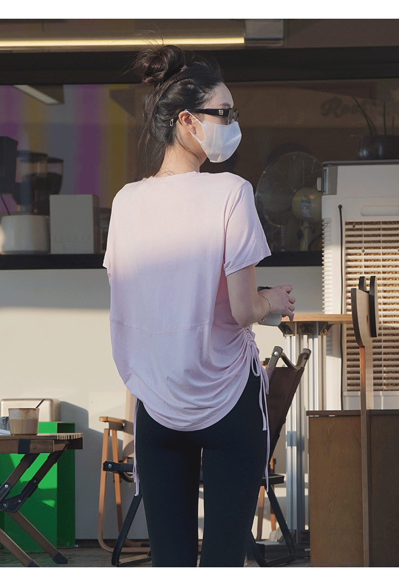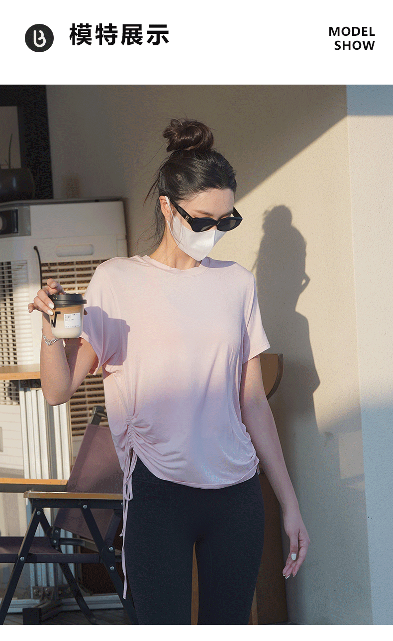 跃牌【周游世界系列】春夏新款瑜伽服女天丝桑蚕丝复古上衣弹力运动休闲短袖T恤TP0866