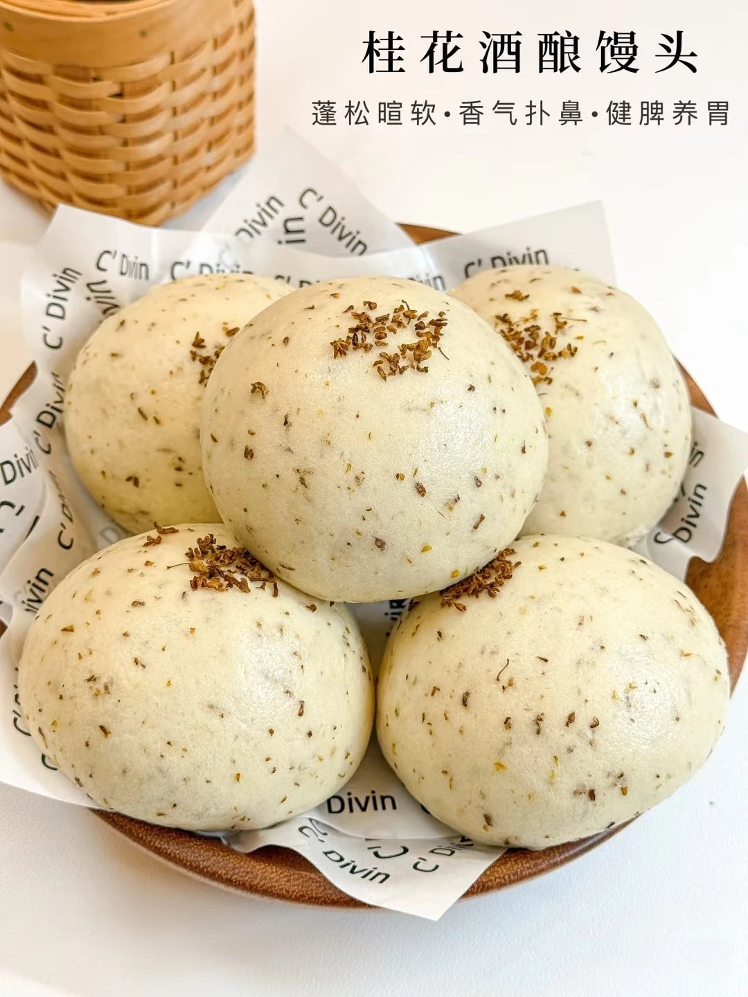 早餐团29.9到手15个桂花酒酿馒头️,老面发酵融入古法甜酒酿自带微醺香甜蓬松如云朵配料表干净基地直邮