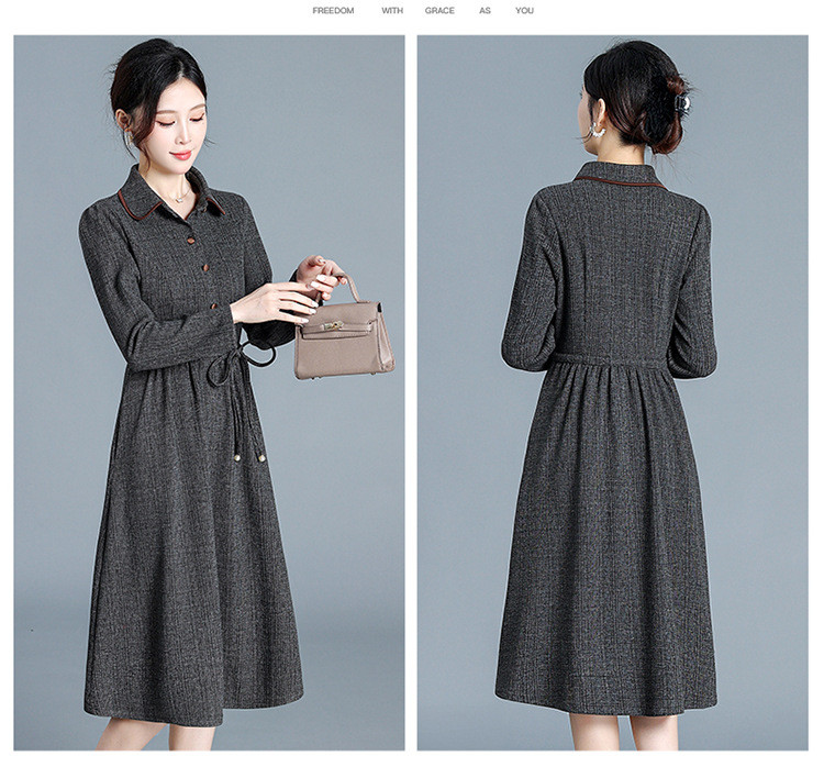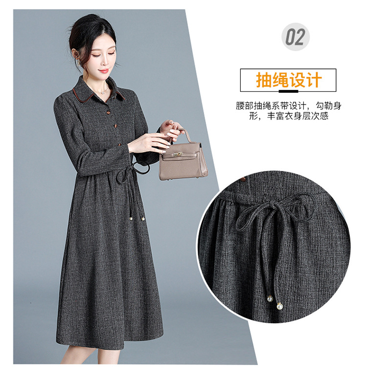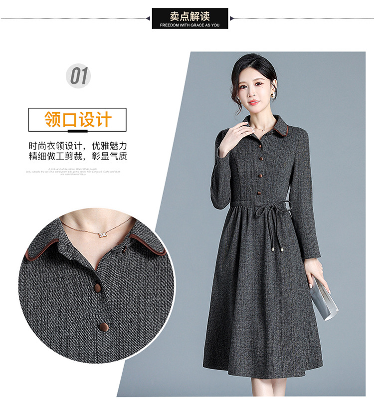 QYM 65096-Y简约时尚连衣裙系带收腰妈妈装百褶A字裙 商品图3