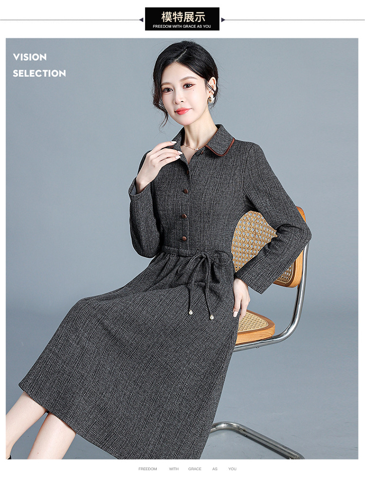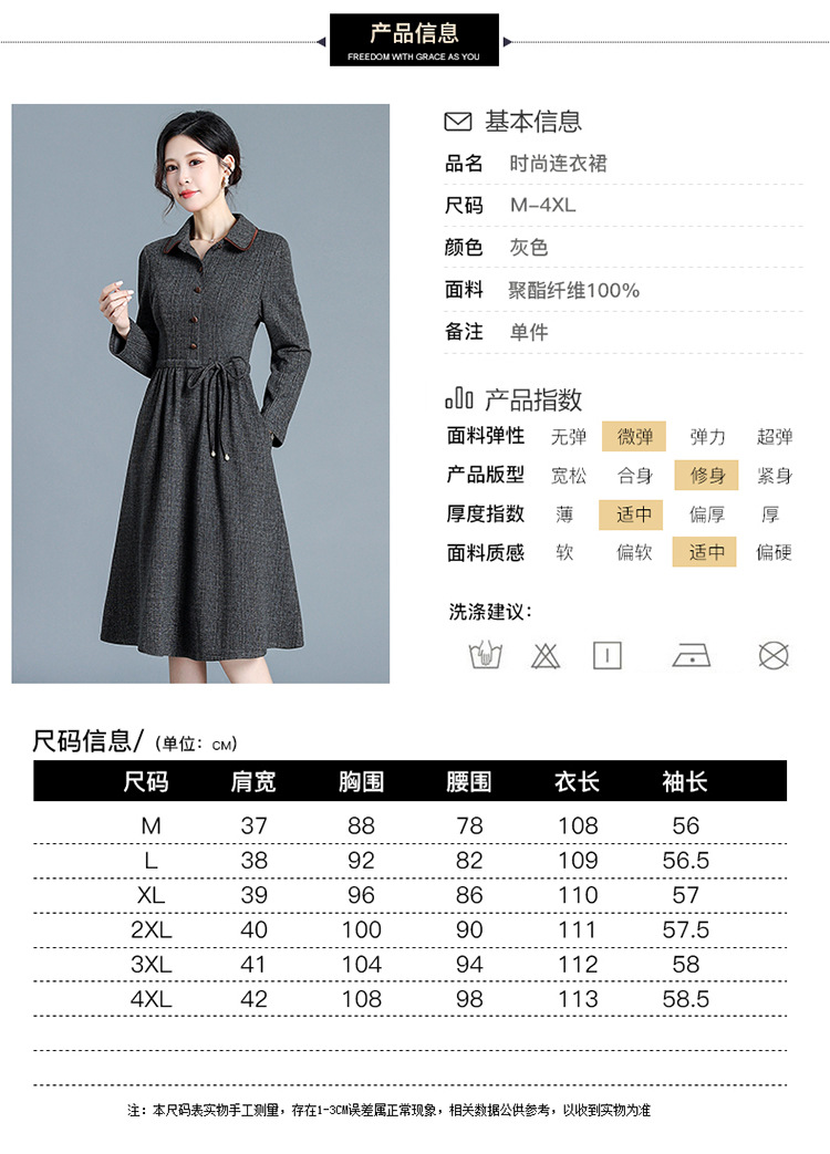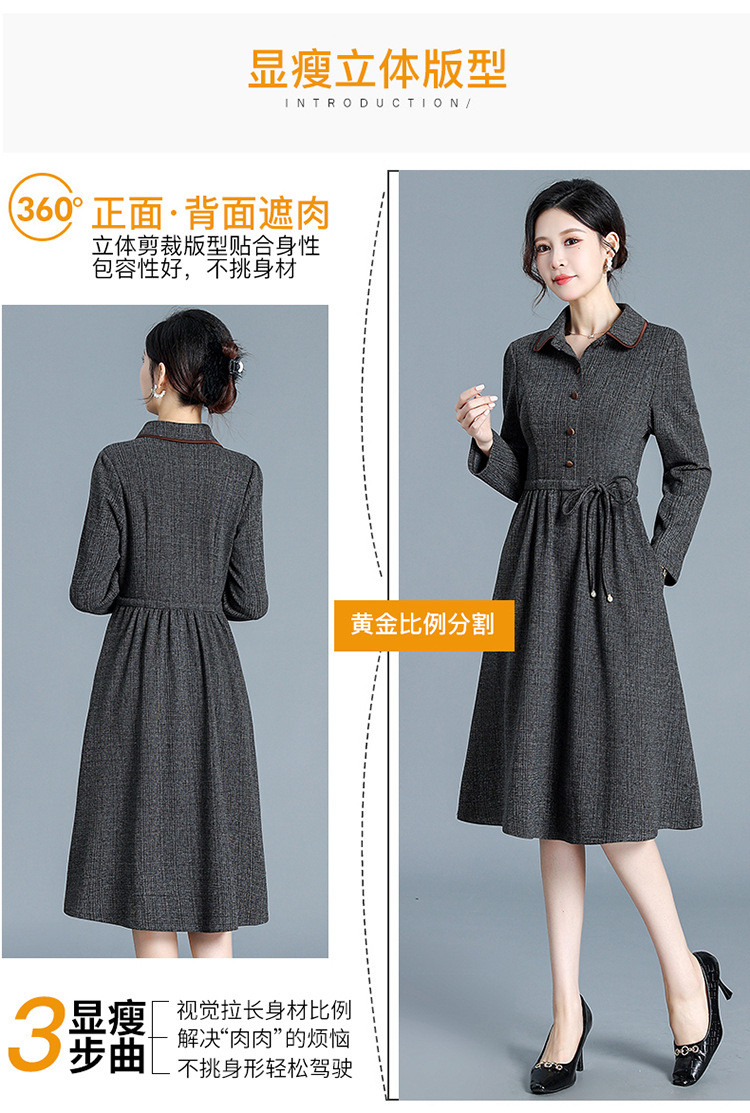 QYM 65096-Y简约时尚连衣裙系带收腰妈妈装百褶A字裙 商品图4