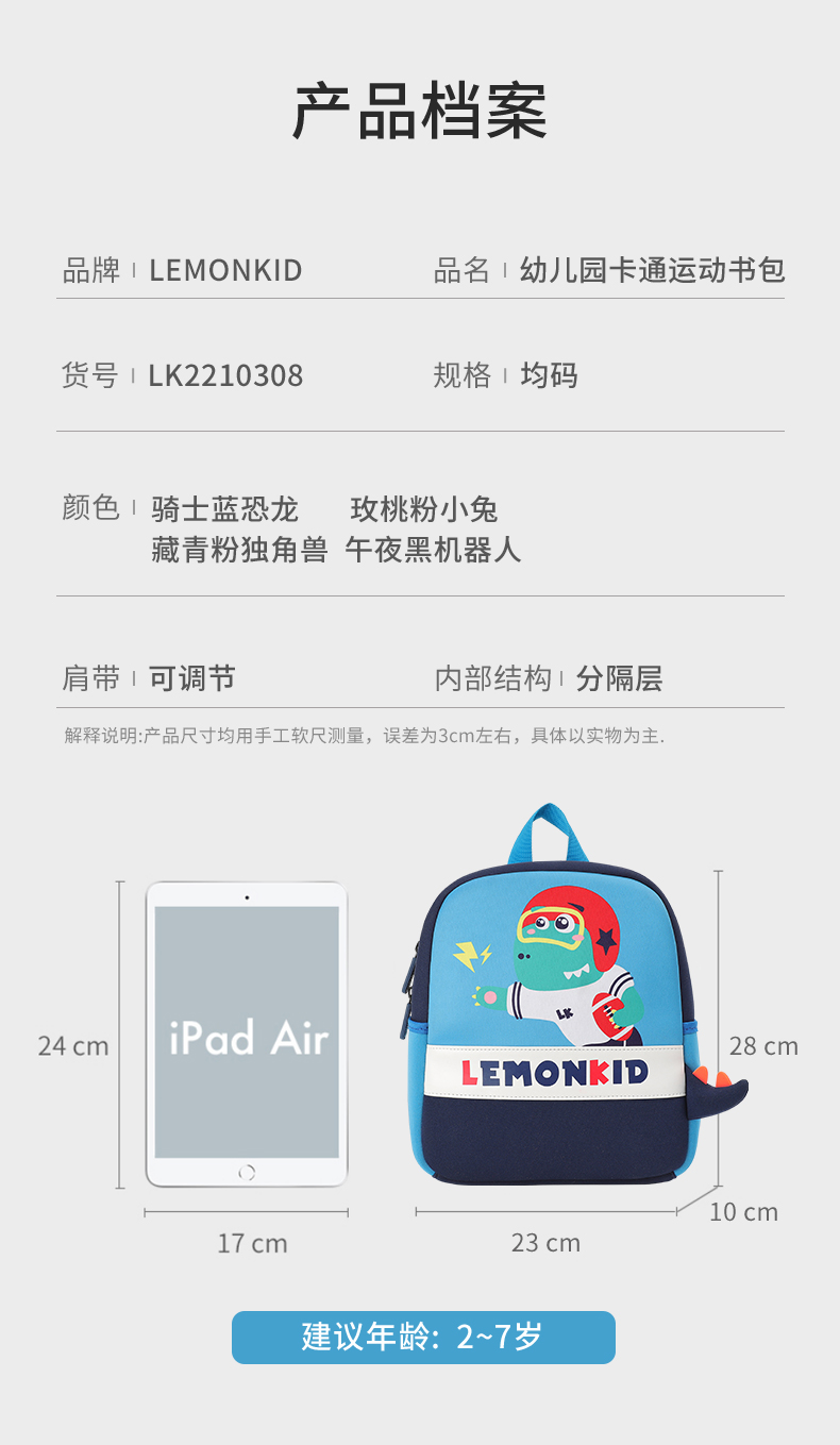lemonkid柠檬宝宝儿童书包幼儿园男童女孩宝宝双肩包1-3-6岁大班小班可爱