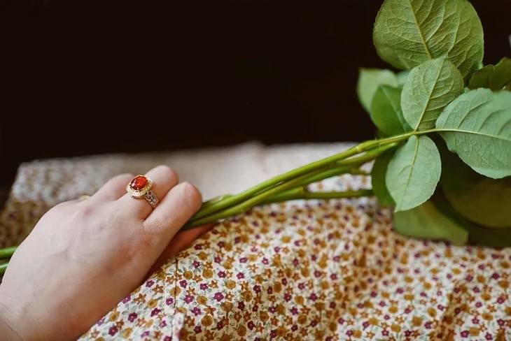 又为这一枚红色的宝石增加了一点贵气的气质。