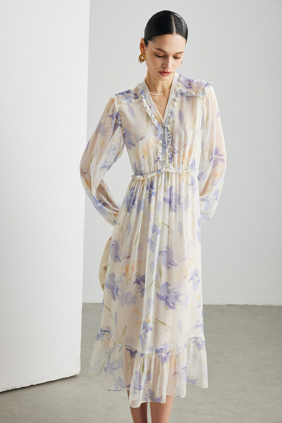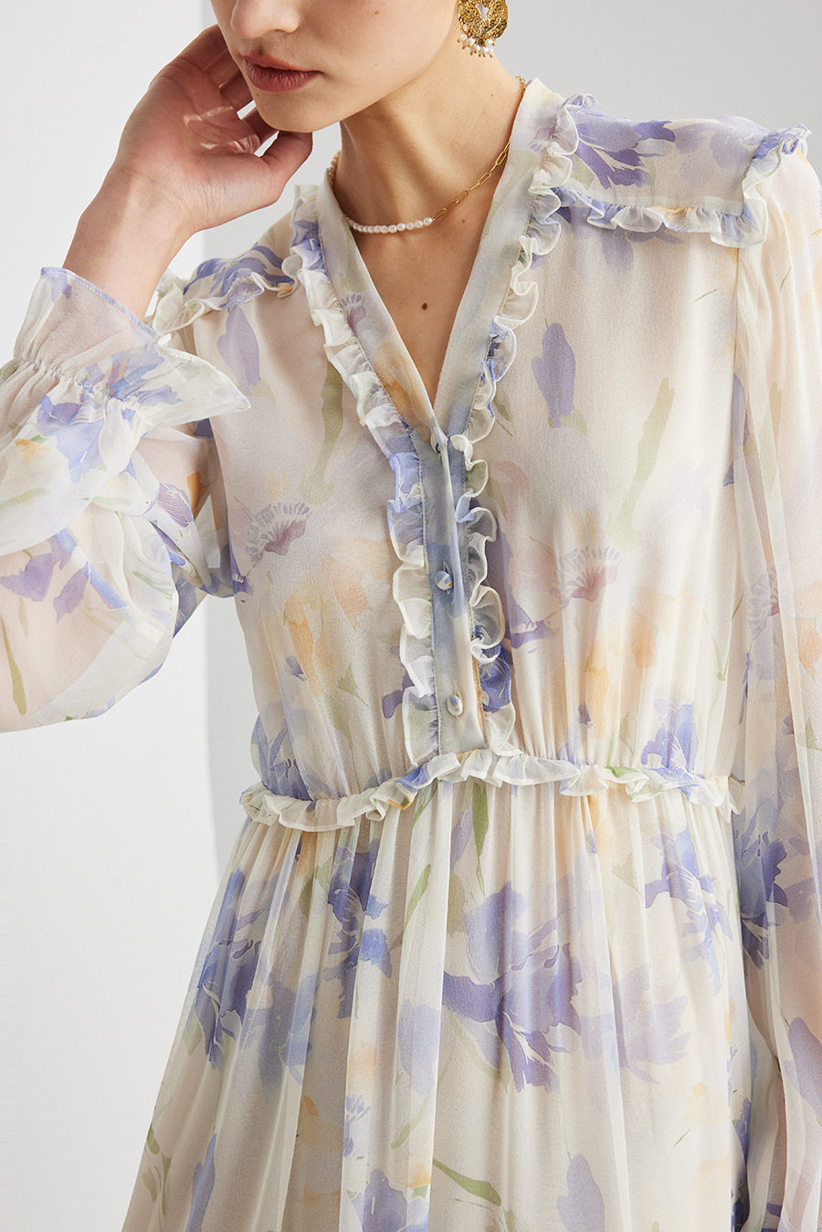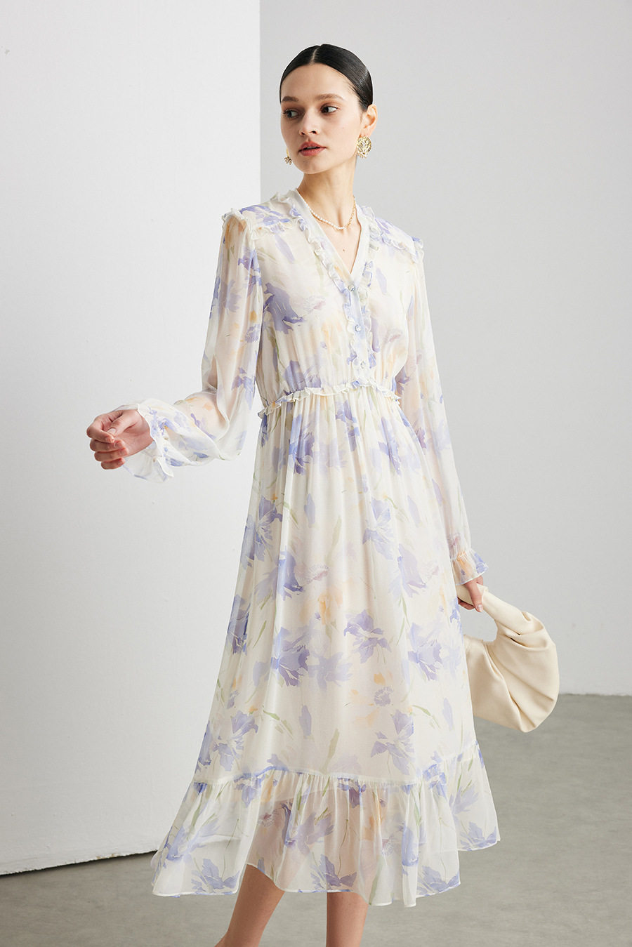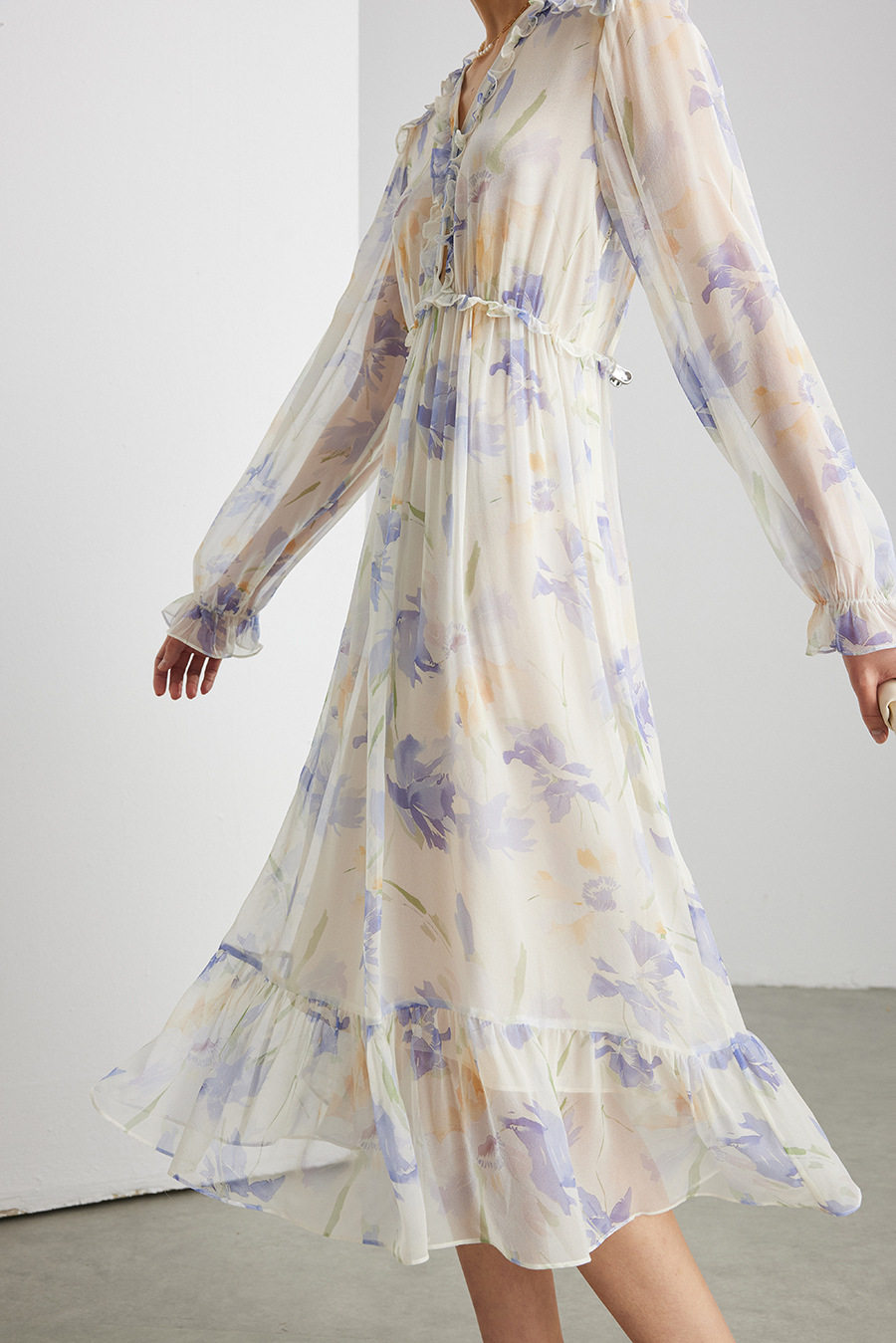「自」全新升级【铂金会员735/天猫989/差价254】(03129)洛诗琳法式真丝印花连衣裙女2026春夏新款木耳边收腰裙子