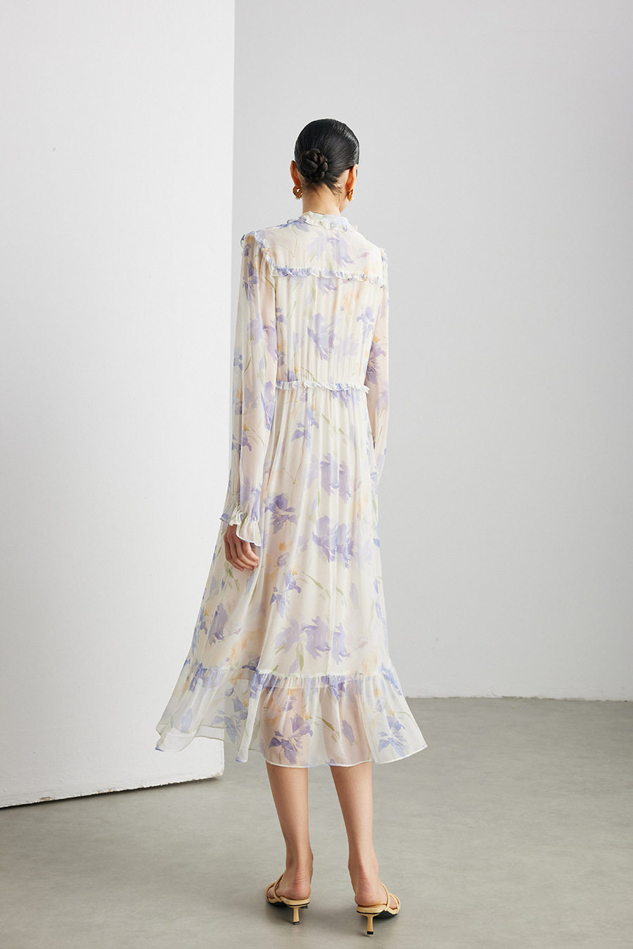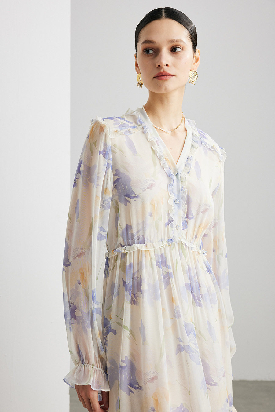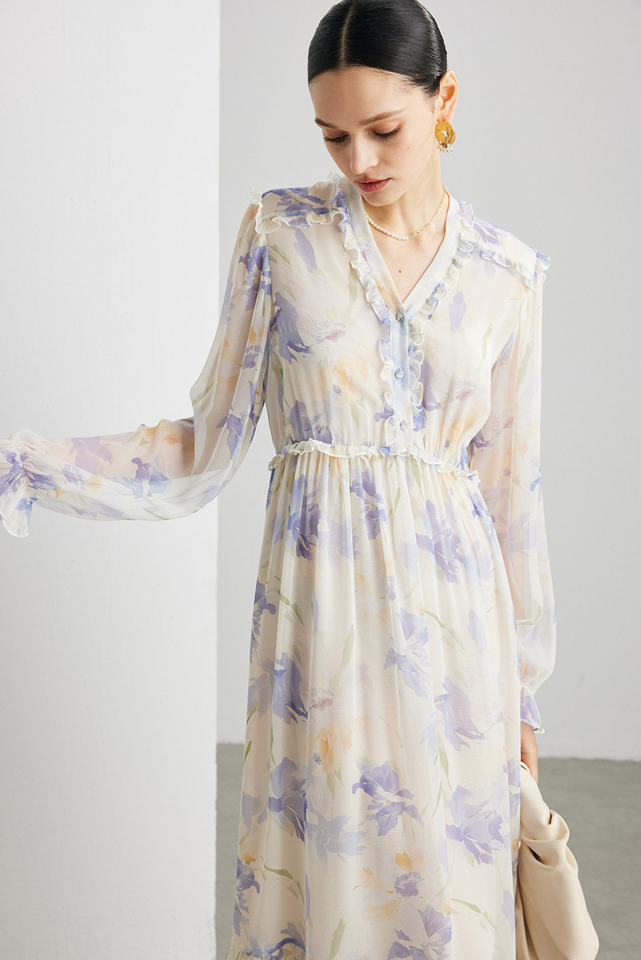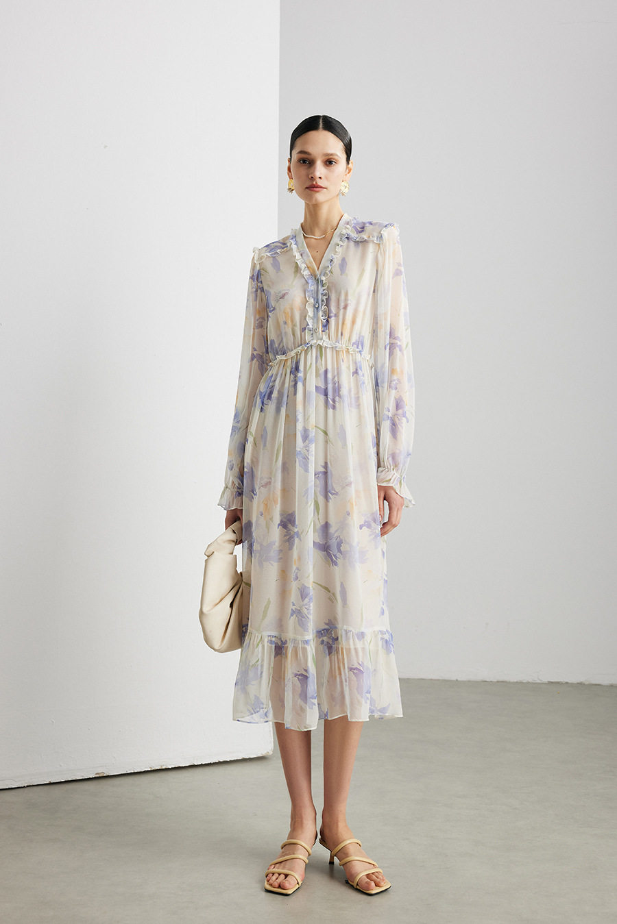 「自」全新升级【铂金会员735/天猫989/差价254】(03129)洛诗琳法式真丝印花连衣裙女2026春夏新款木耳边收腰裙子