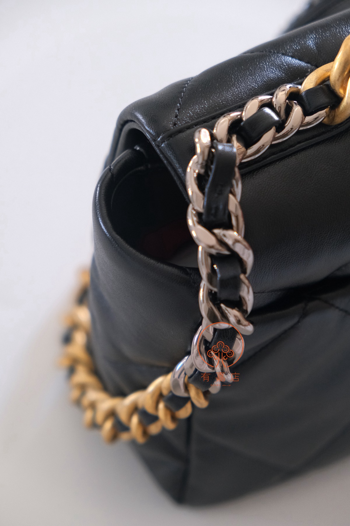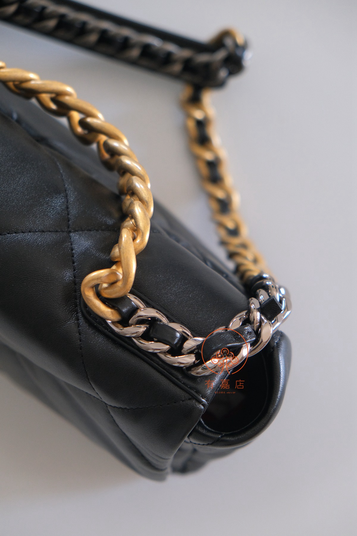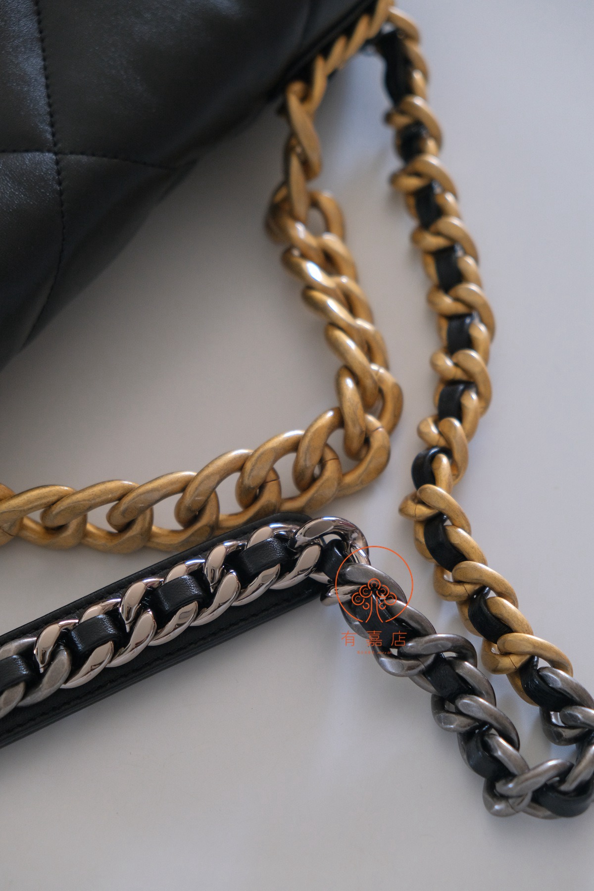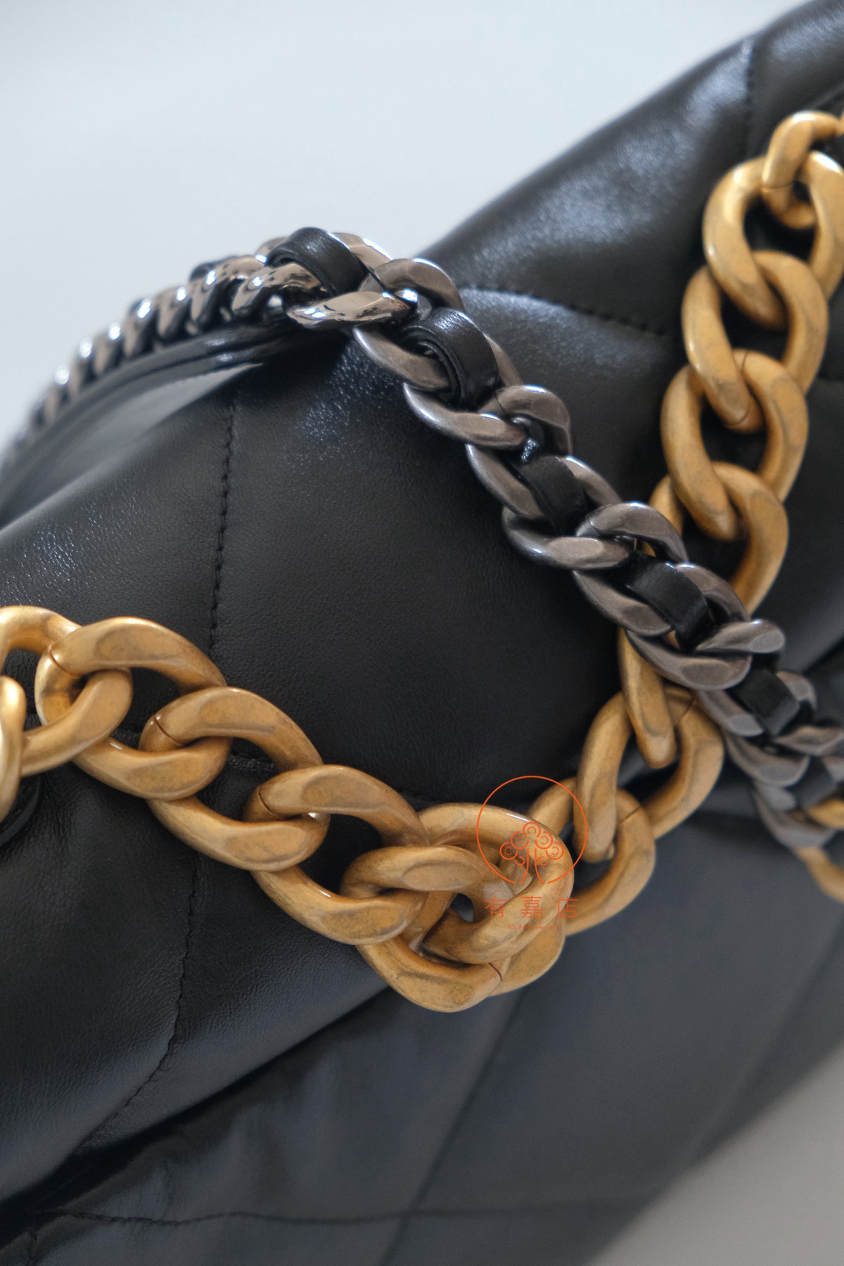19这款的皮穿扣比较特殊,是独家定制验货级别的五金扣,真空厚金电镀24K金+做旧工艺。