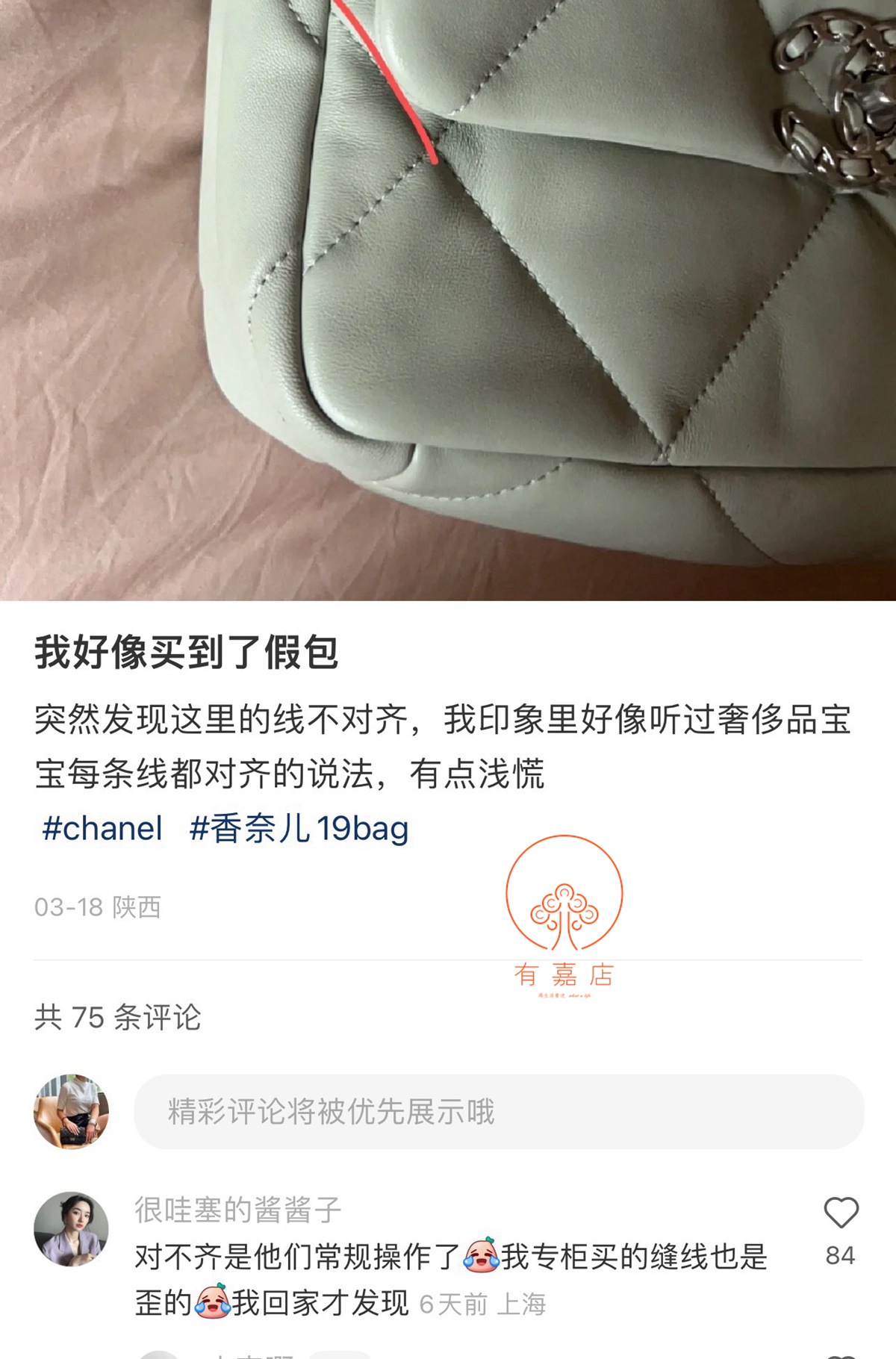 另外需要说明一下的是,ZP并没有菱格对格这种说法,尤其是19bag这款(经典款比如cf、leboy这些对格严谨一些是因为美观需要),但是香家所有的菱格包对不对格这点并不是鉴定点,这个可以问问经验丰富的鉴定师。