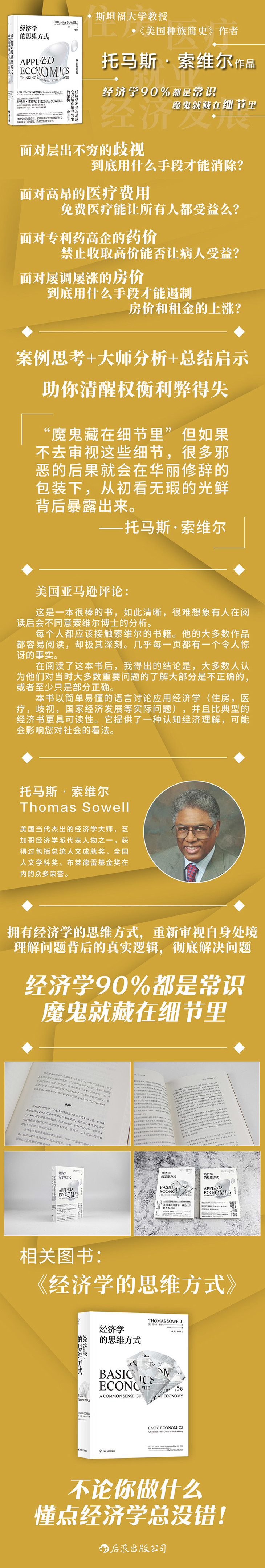 ◎自由主义经济学巨擘、《美国种族简史》作者托马斯•索维尔用经济学的思维架构,综合政治与社会思考,深度剖析住房、医疗、就业、移民等现实议题,帮你摆脱短视思维的桎梏,重新审视自身处境,清醒权衡利弊得失。
